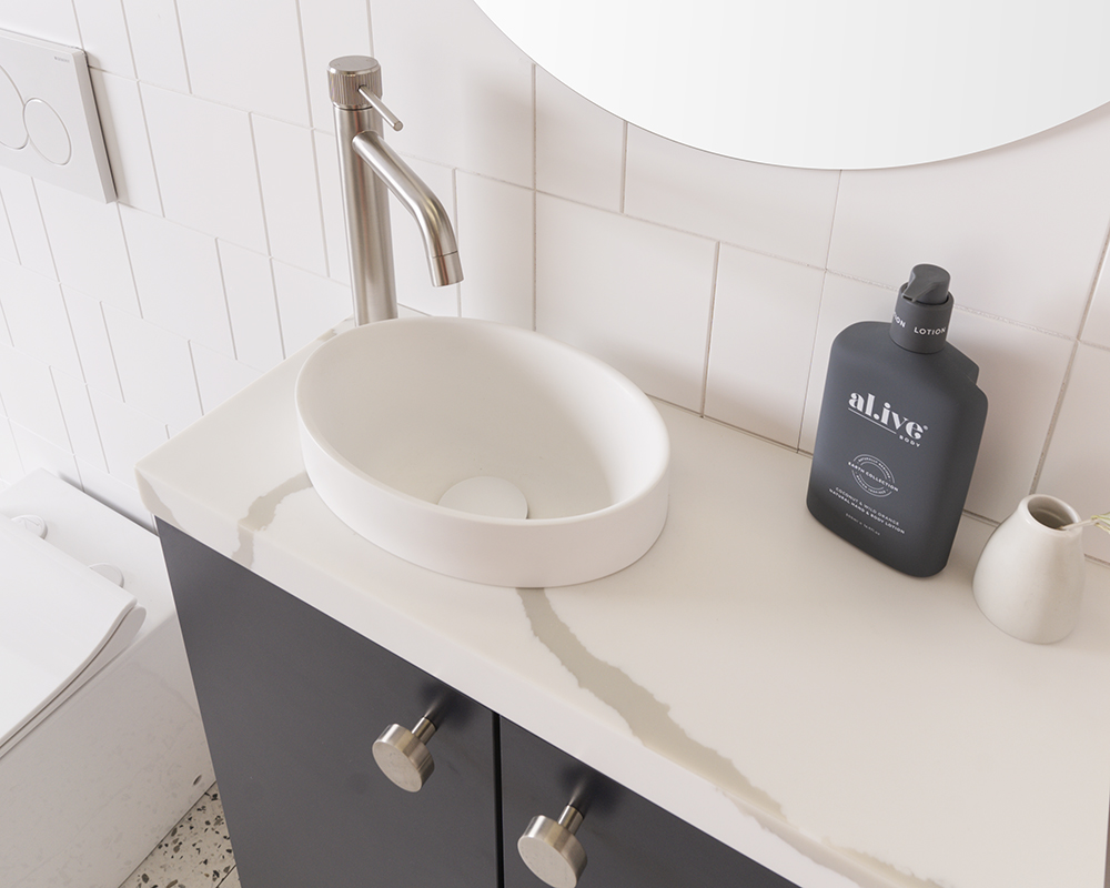 No extra charge for basin and tap hole cut-out (when purchased with an ADP vanity and/or benchtop only).