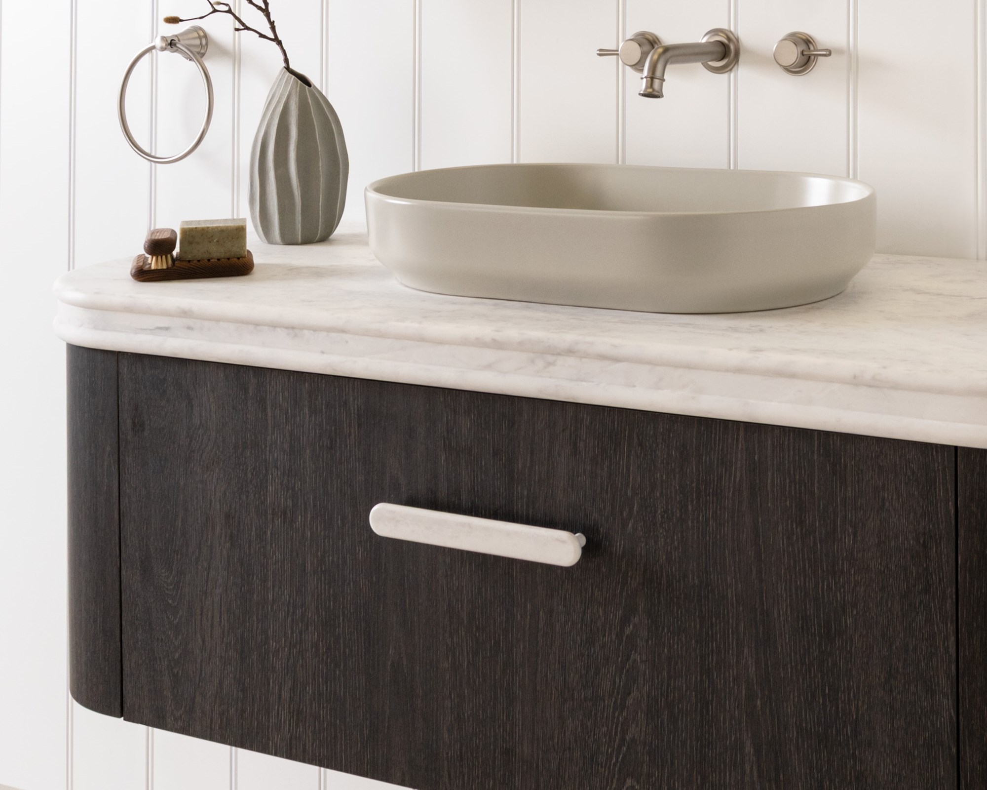 This handle is made from pure acrylic solid surface material. Please note slight variation in the handle finish may occur due to the nature of the material.