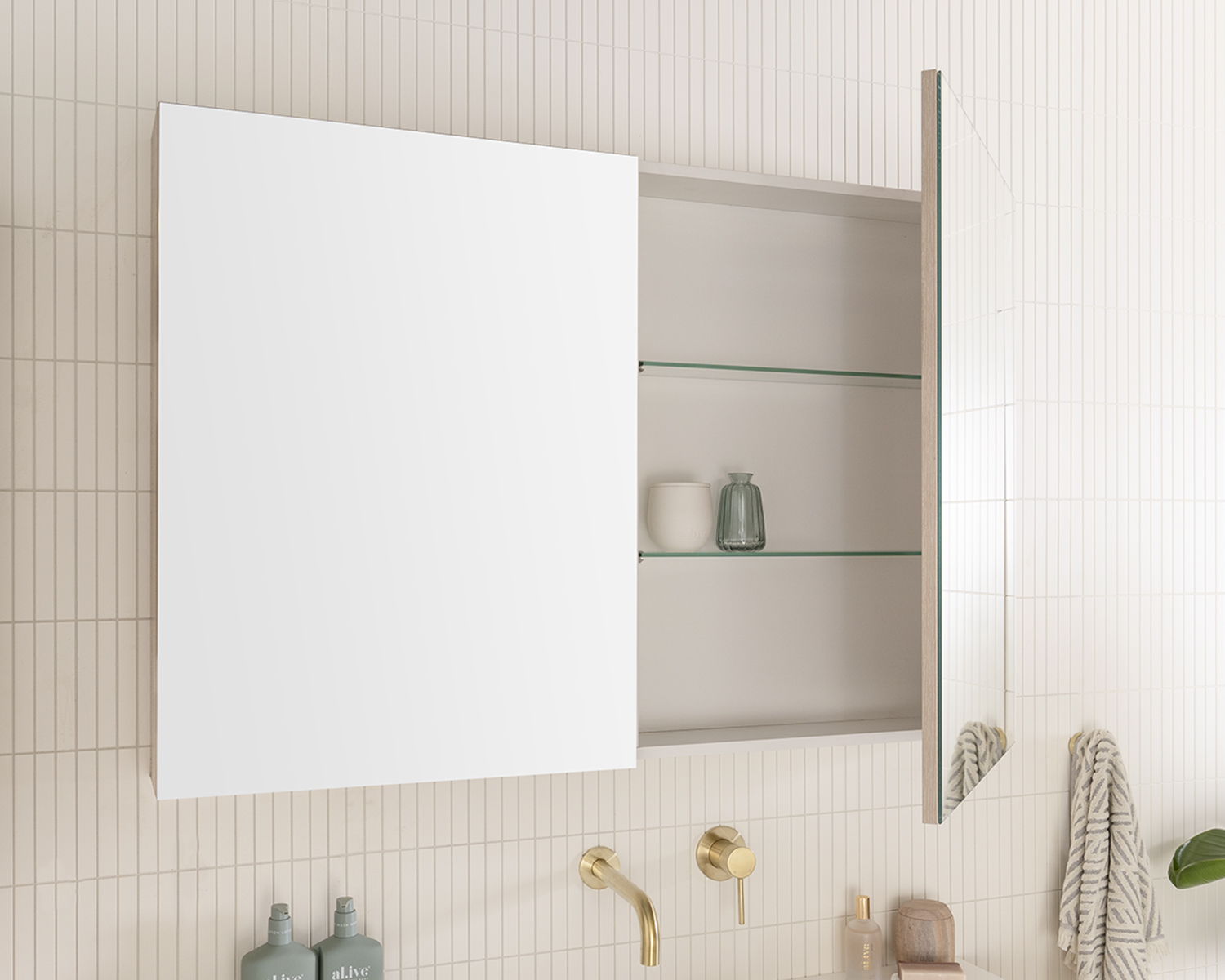 Adjustable glass shelves.