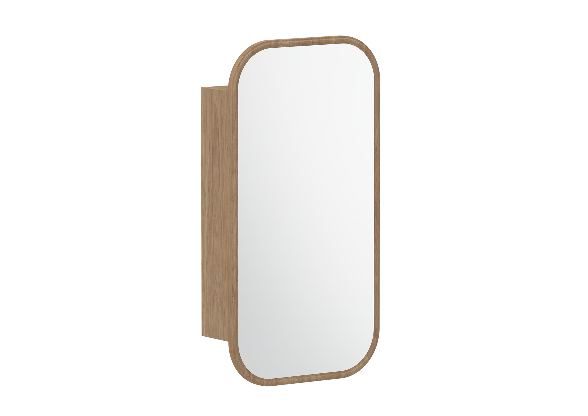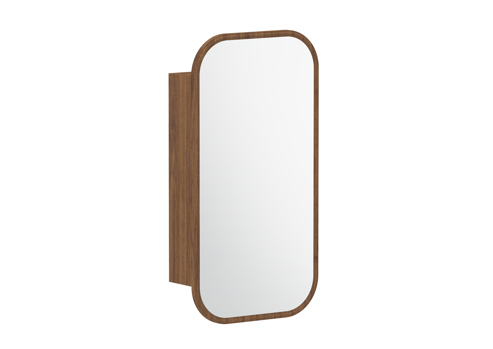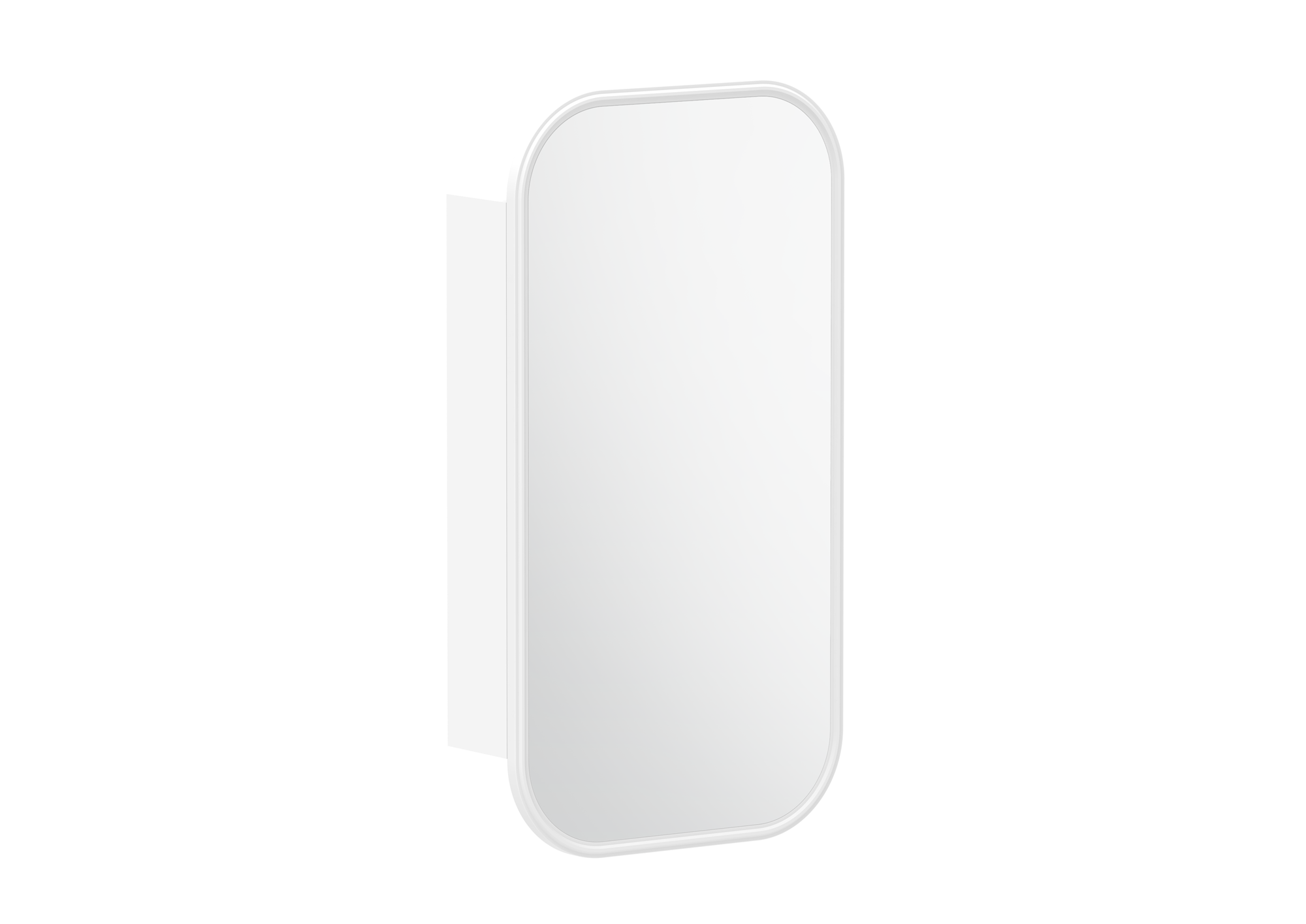 Curved thermolaminated mirror door with detailed frame.
