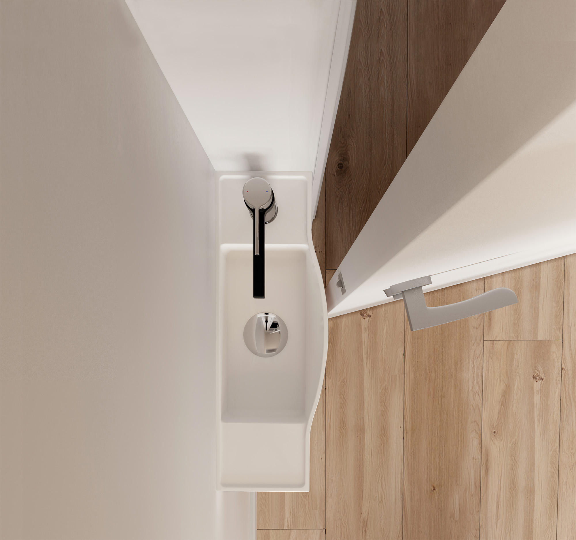 Perfectly contoured basin design to maximise usability and to clear swinging doors when space is minimal, with 1L basin capacity (excludes overflow).
