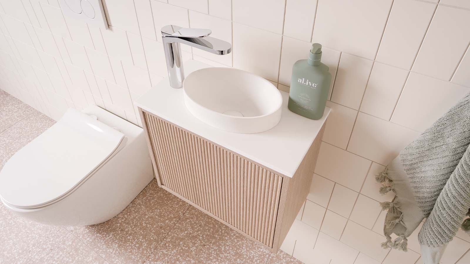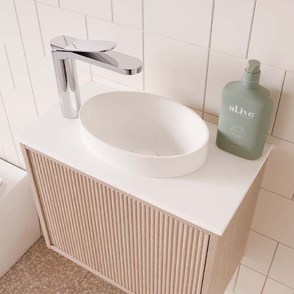 Includes Joy solid surface semi-inset basin, available in Gloss White or Matte White. 3L basin capacity.