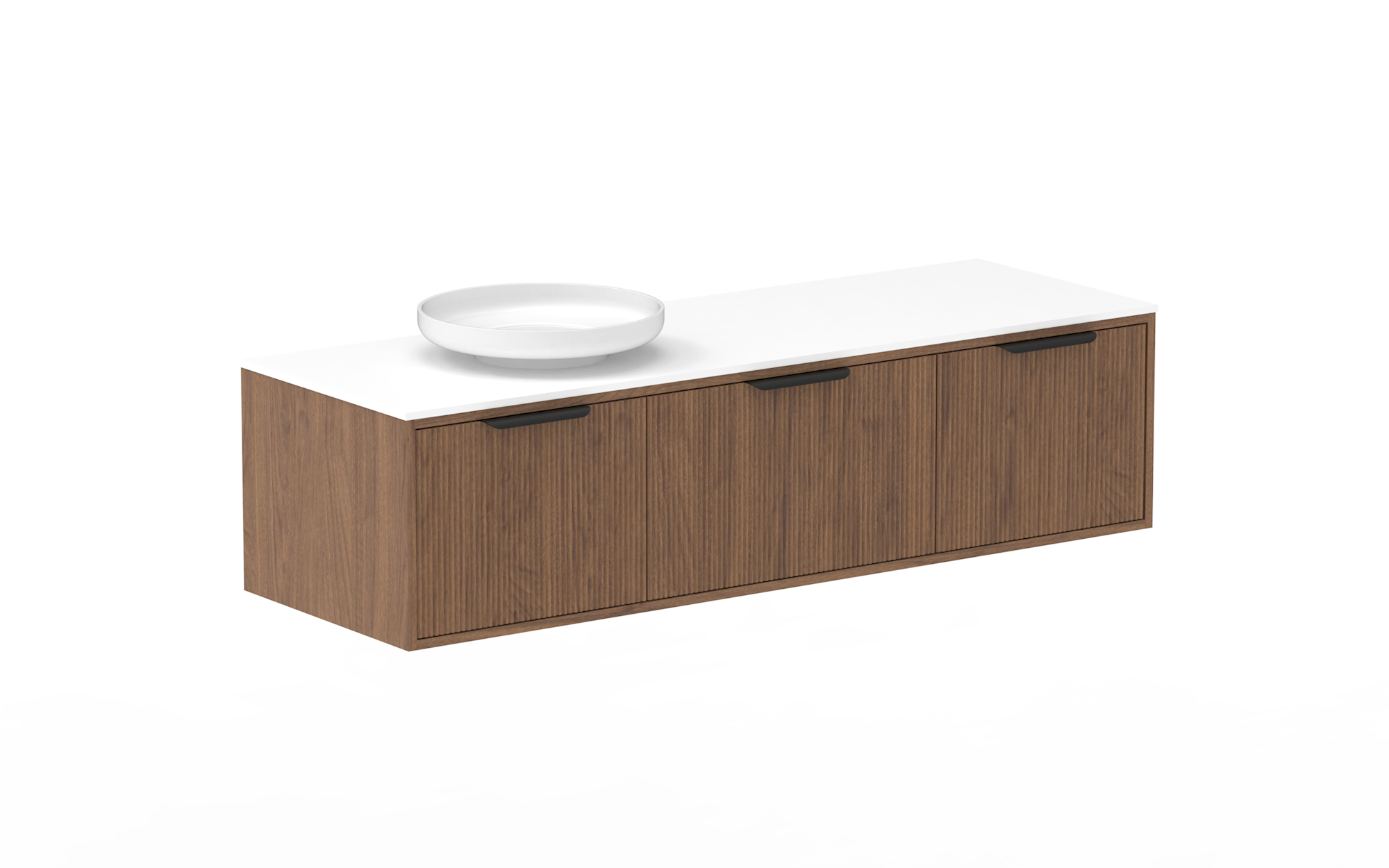 Choose from all benchtop options: 12mm Durasein, 20mm Cherry Pie & 20mm Caesarstone. Upgrade to Statement or Royale benchtop available, surcharge applies.