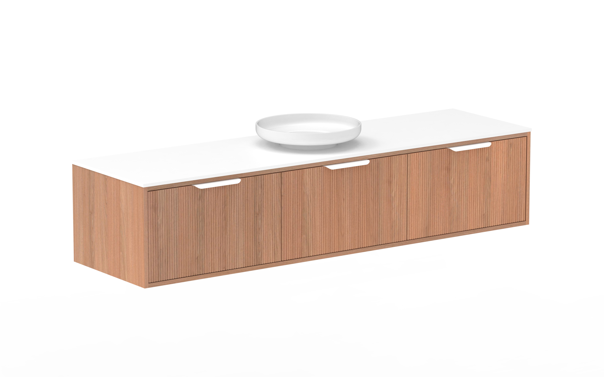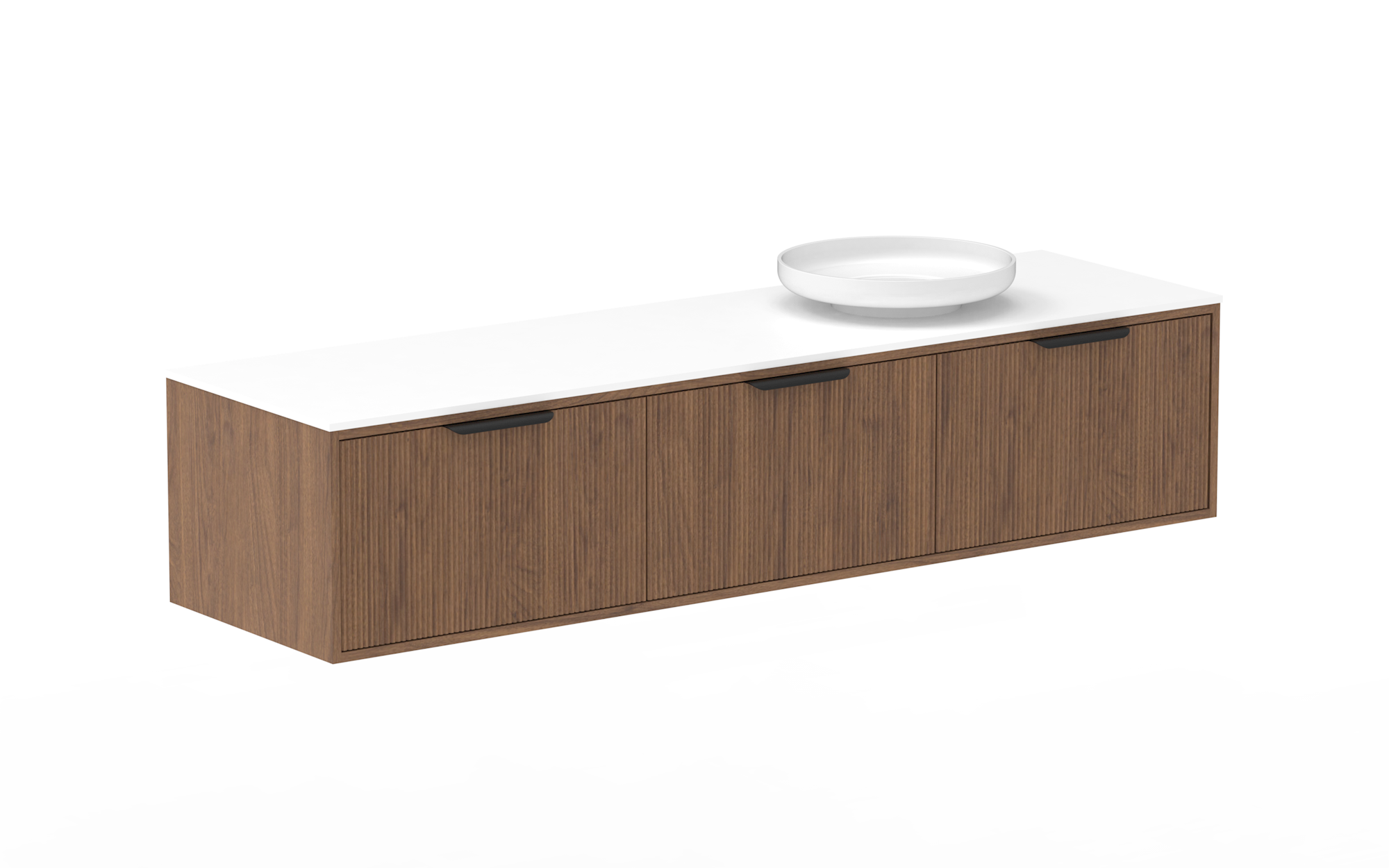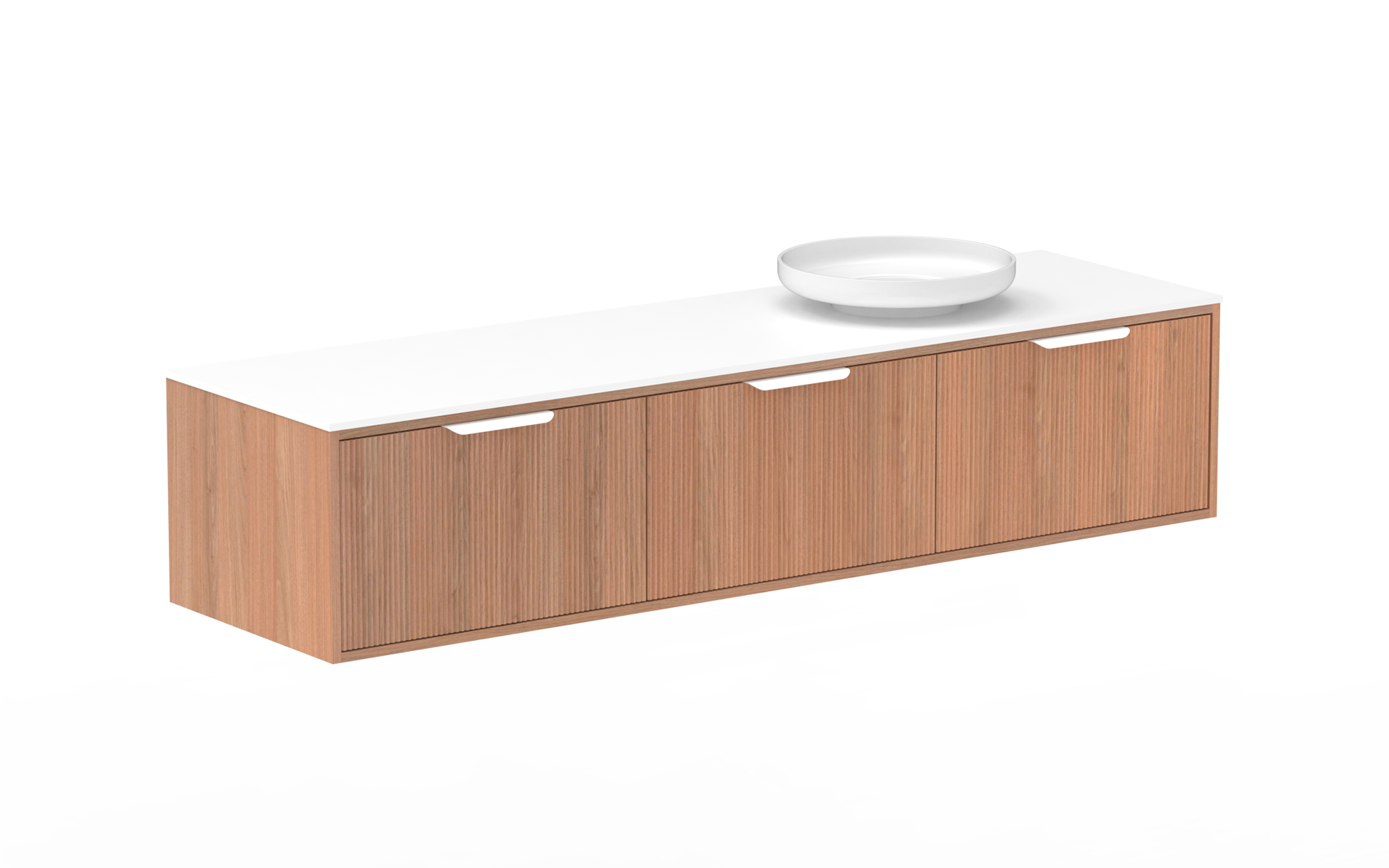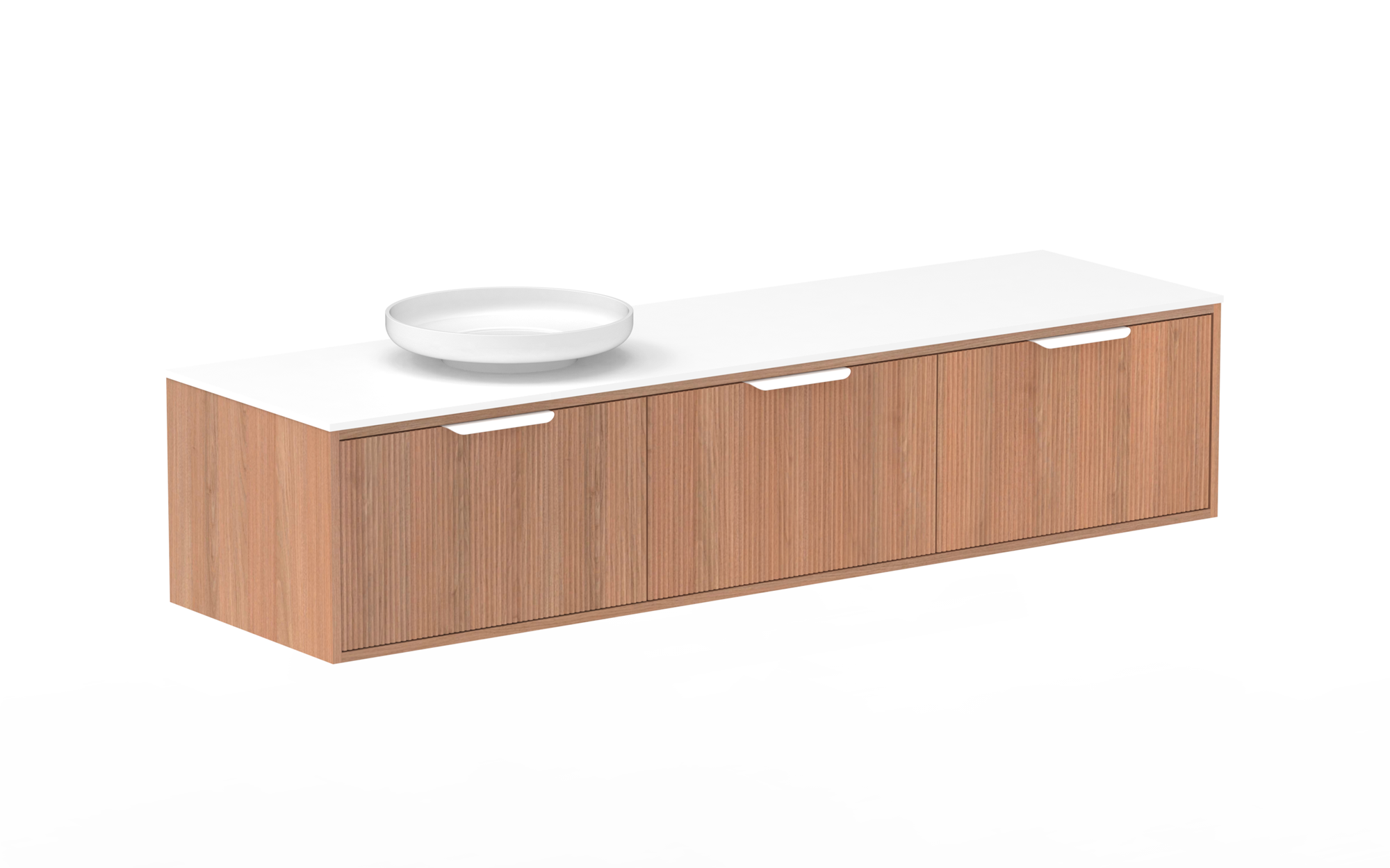 Choose from all benchtop options: 12mm Durasein, 20mm Cherry Pie & 20mm Caesarstone. Upgrade to Statement or Royale benchtop available, surcharge applies.