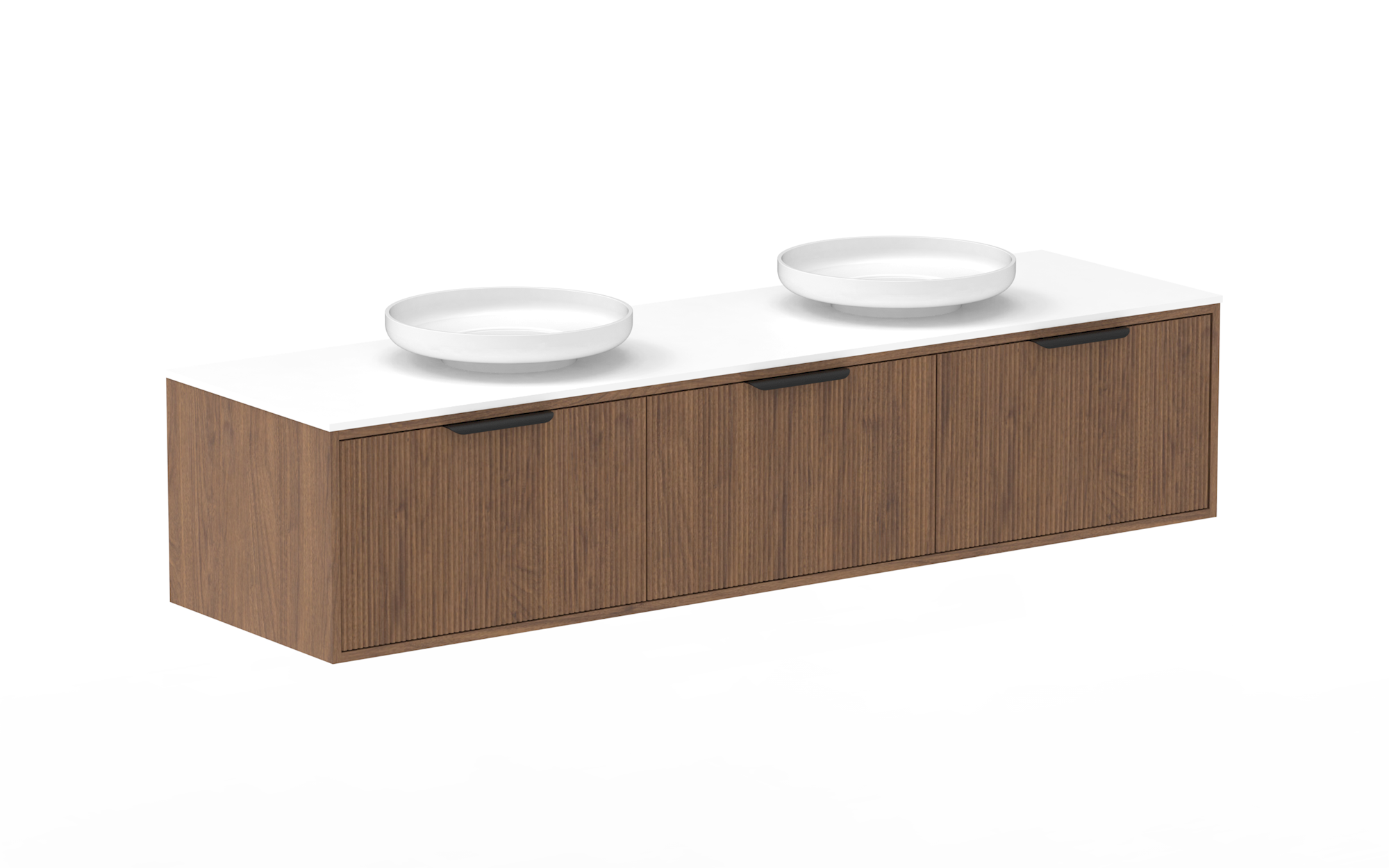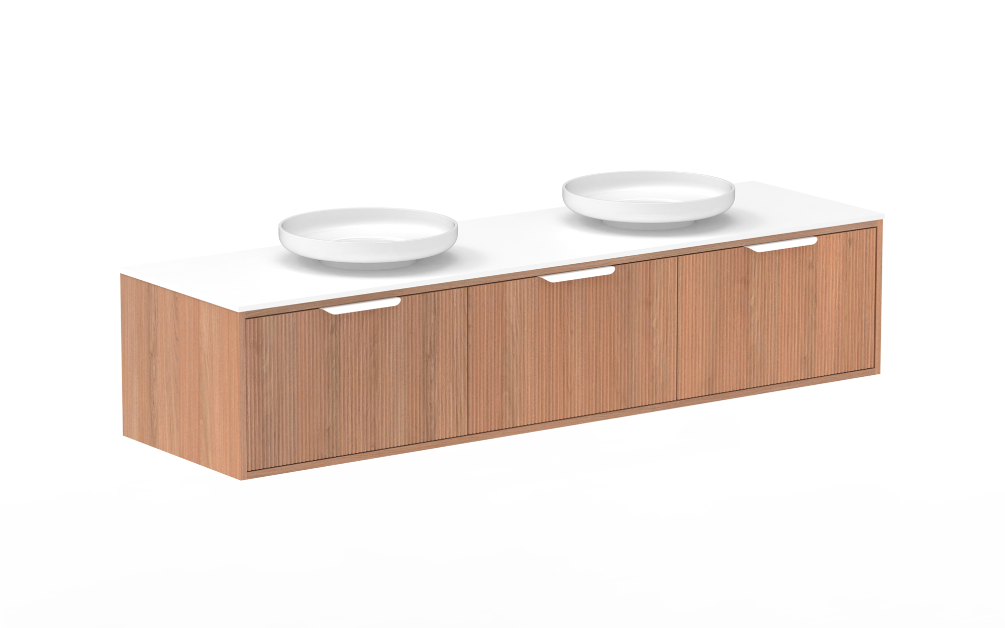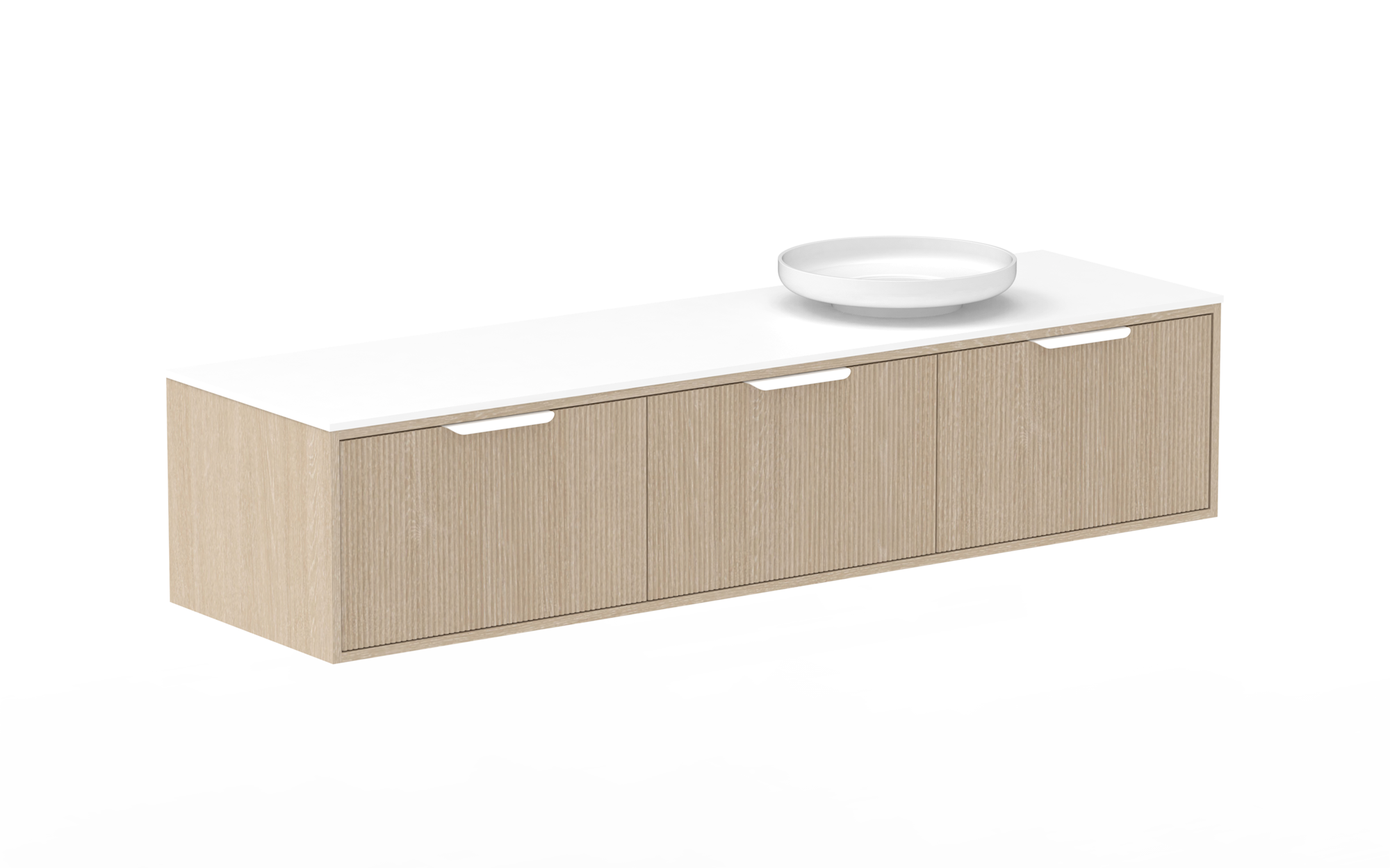 Choose from all benchtop options: 12mm Durasein, 20mm Cherry Pie & 20mm Caesarstone. Upgrade to Statement or Royale benchtop available, surcharge applies.