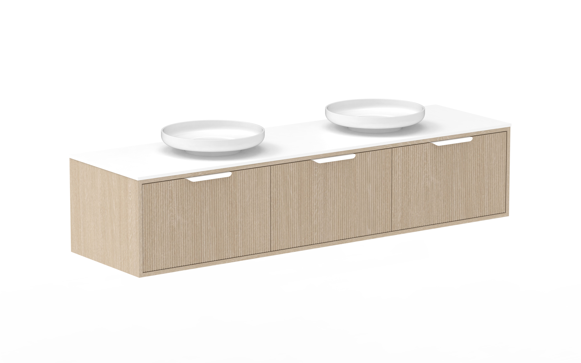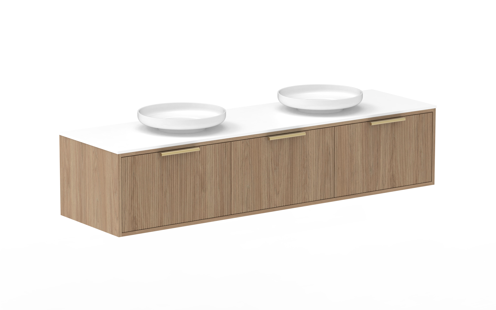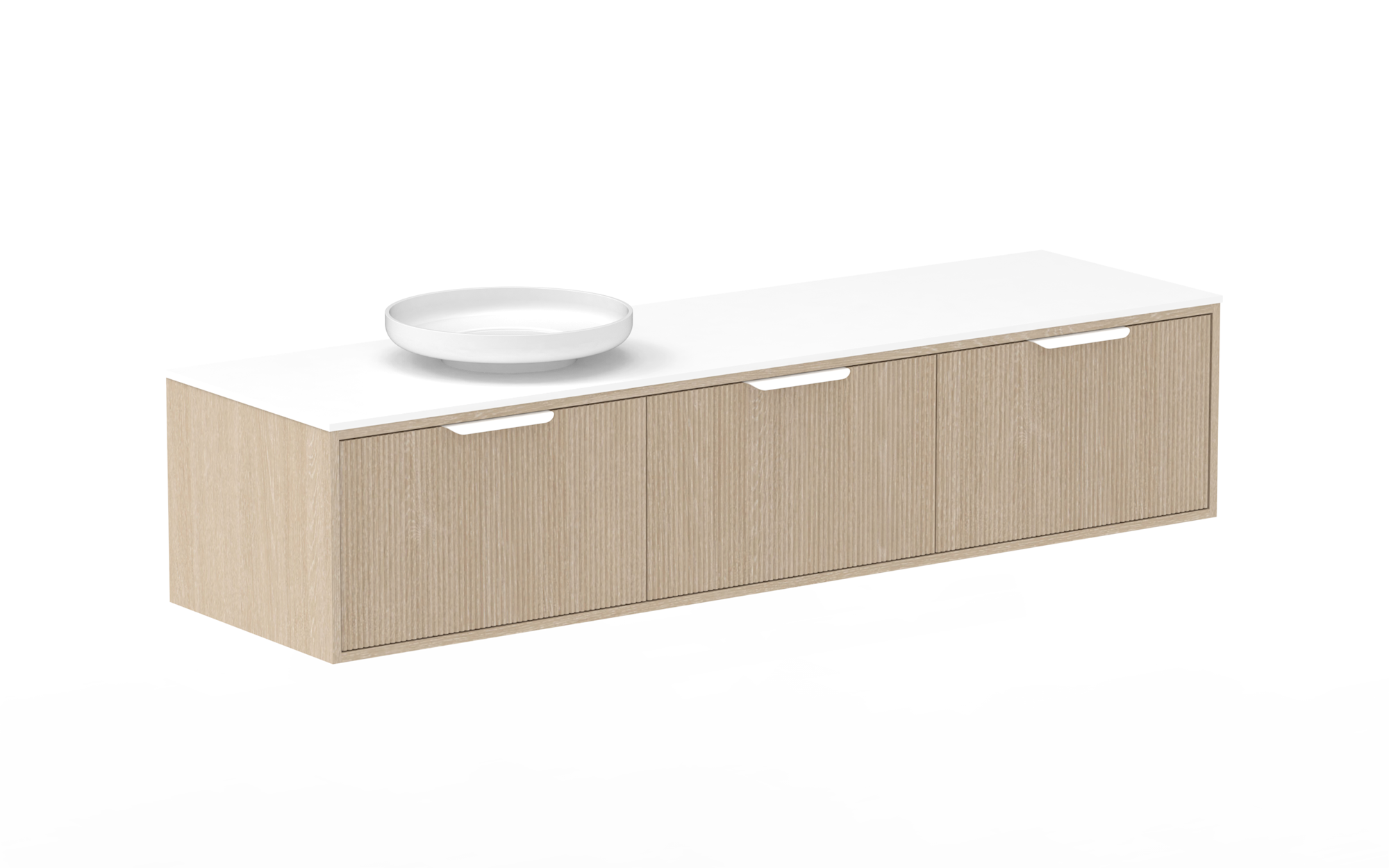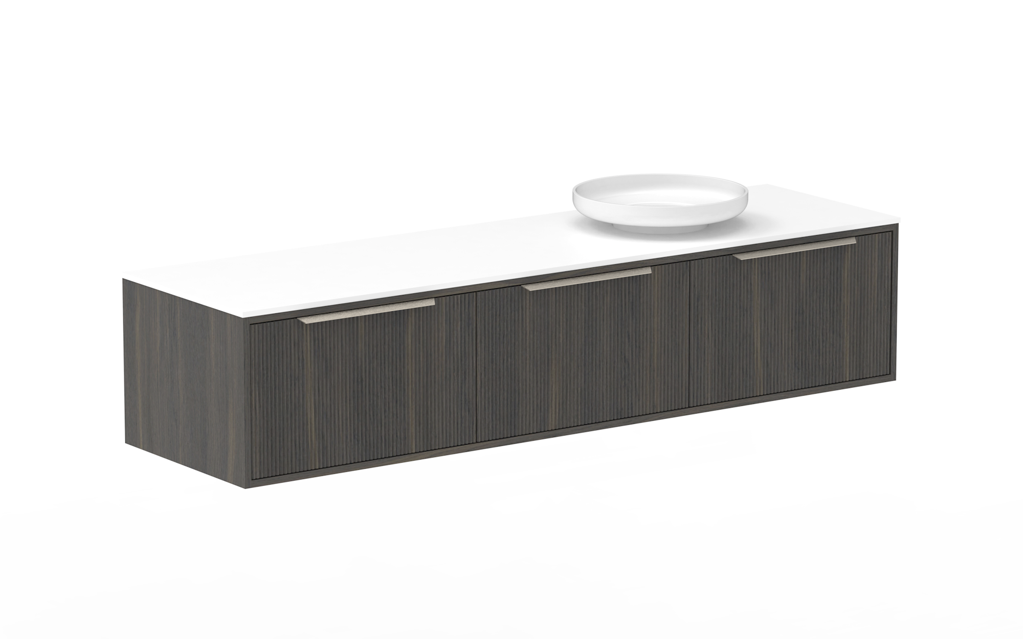 Choose from all benchtop options: 12mm Durasein, 20mm Cherry Pie & 20mm Caesarstone. Upgrade to Statement or Royale benchtop available, surcharge applies.