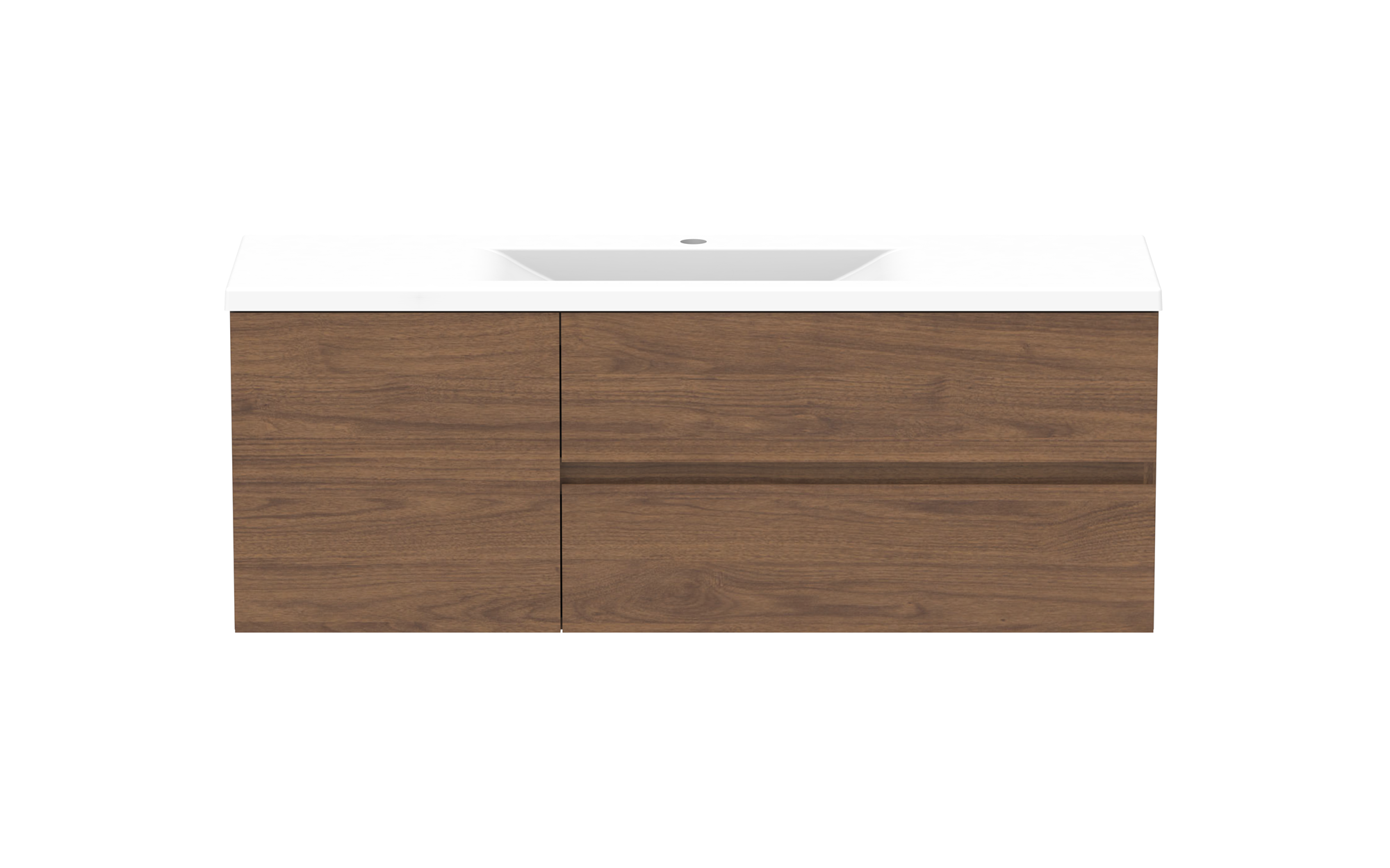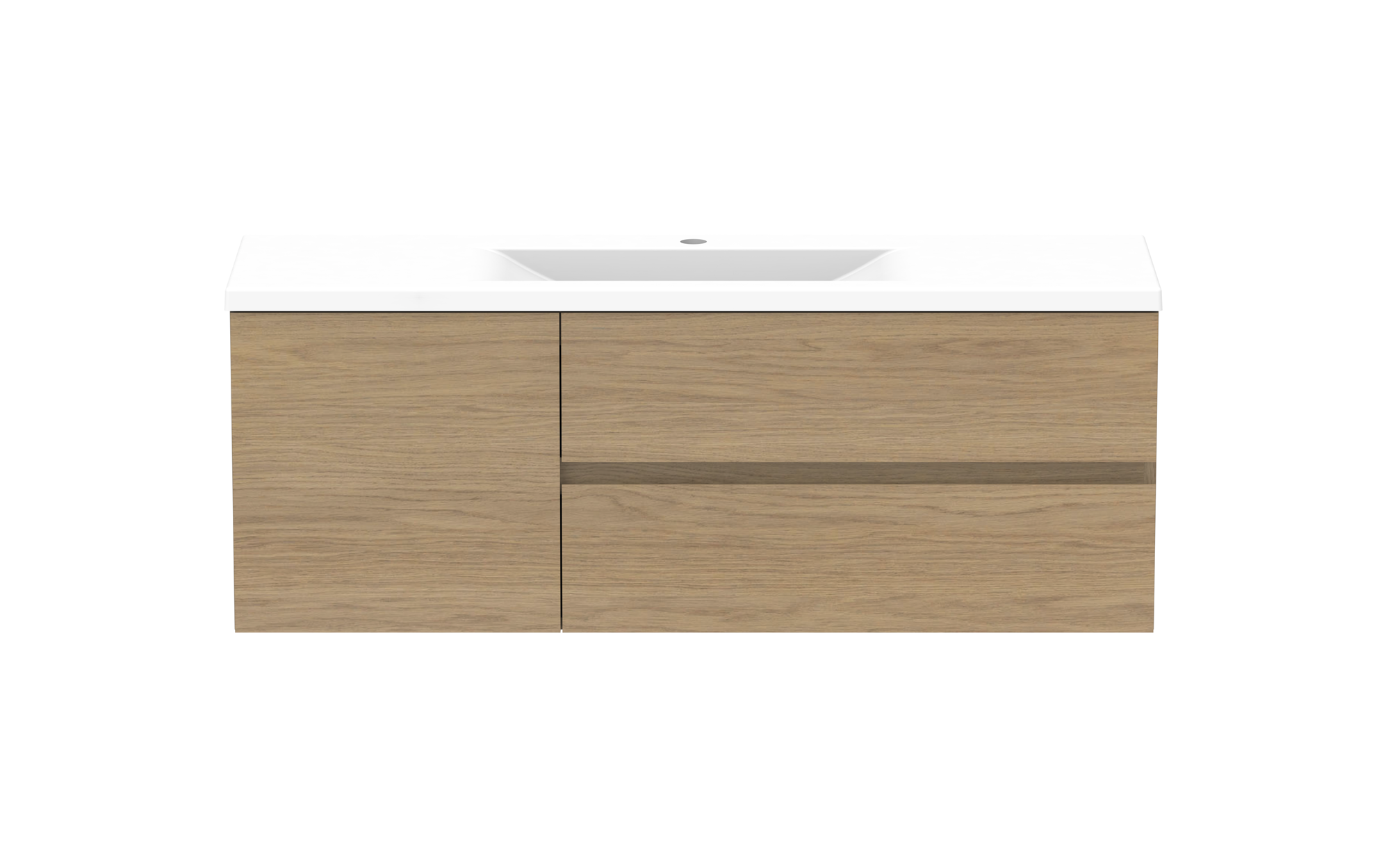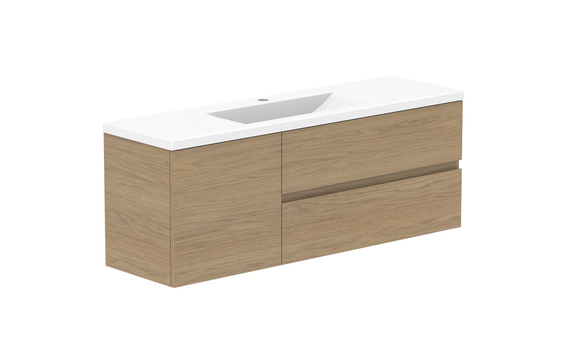 Solid surface top in matte white, with left or right hand bowl (1 tap hole).