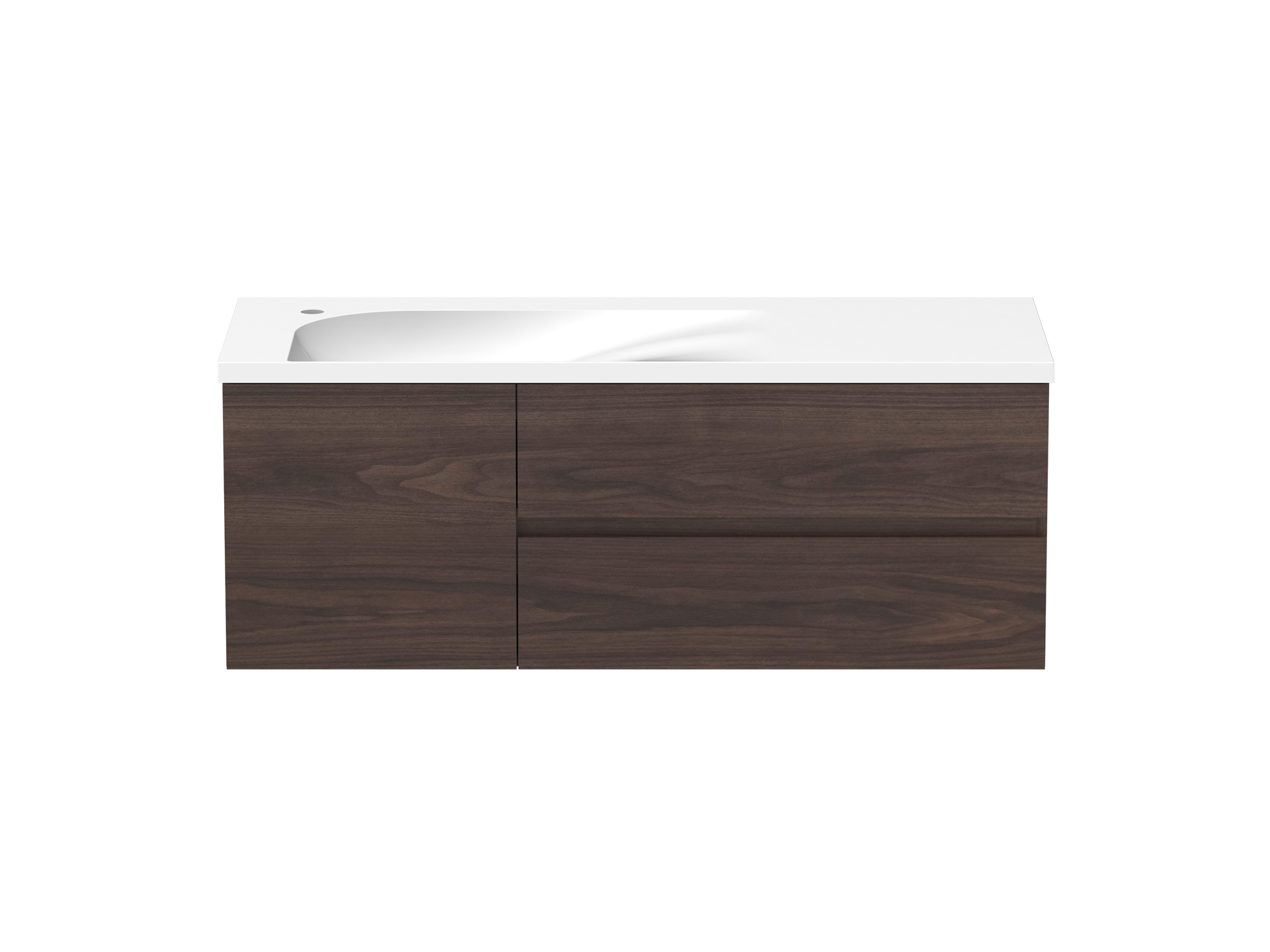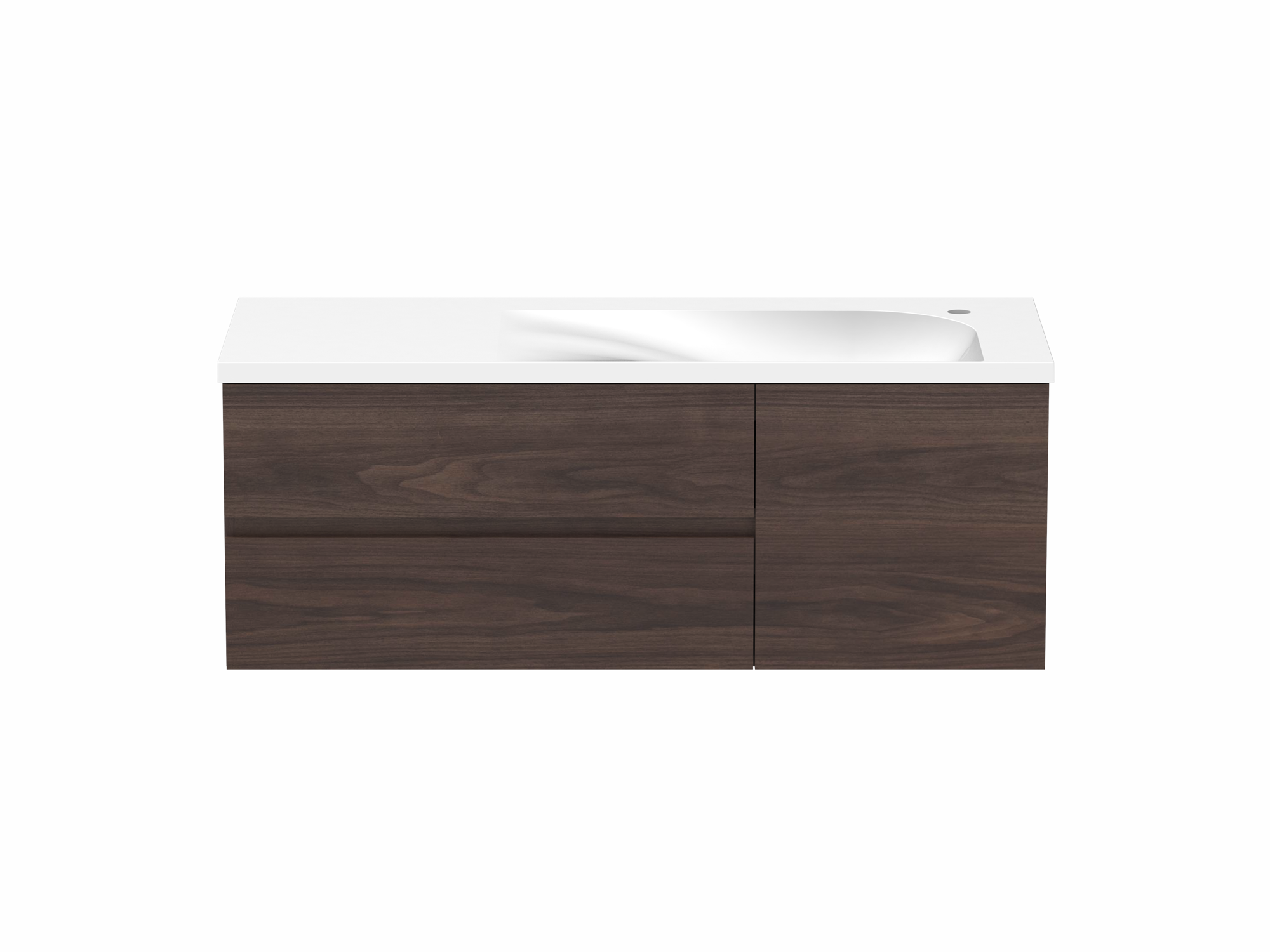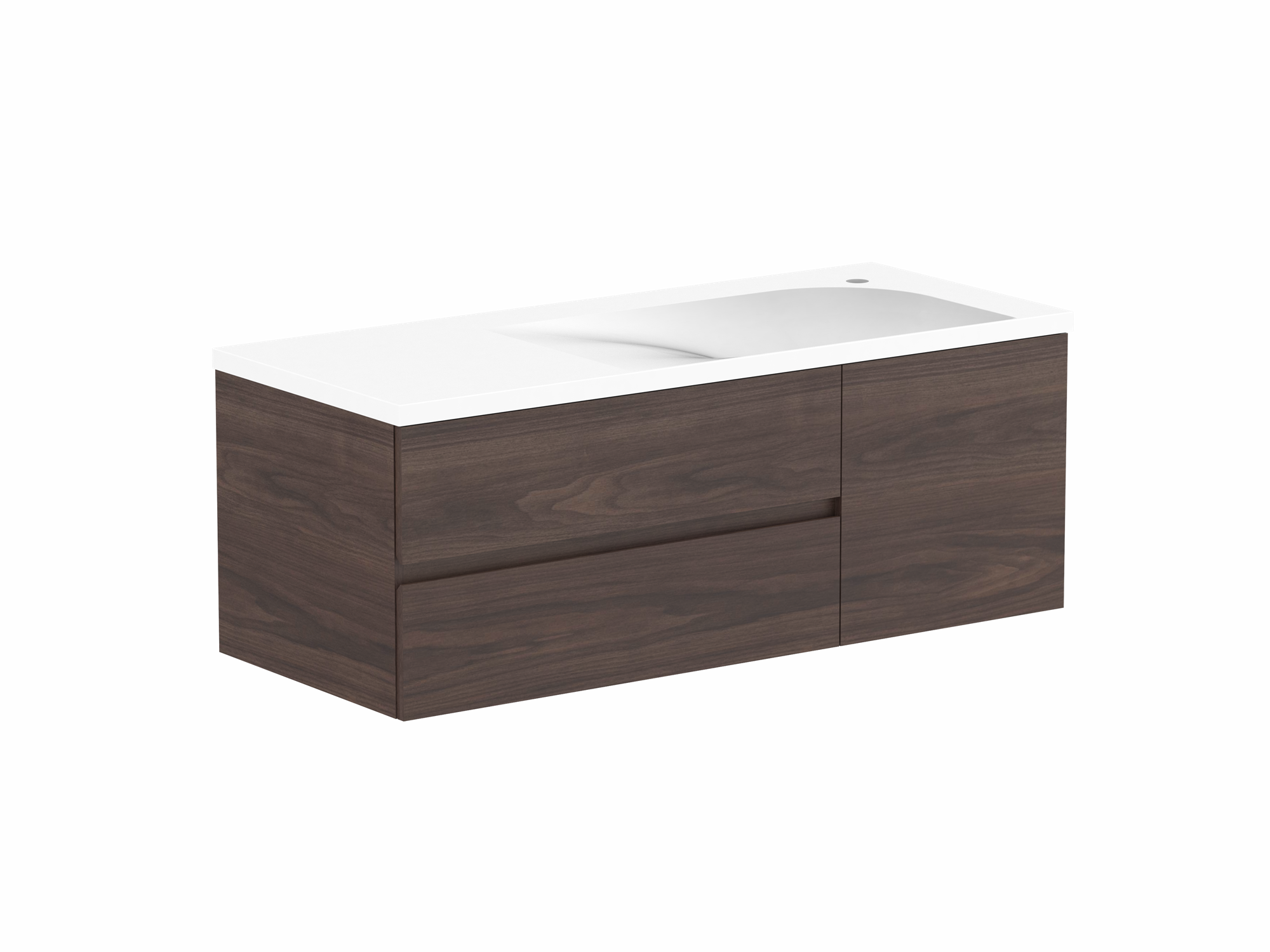 Solid surface top in matte white, with left or right hand bowl (0 or 1 tap hole).