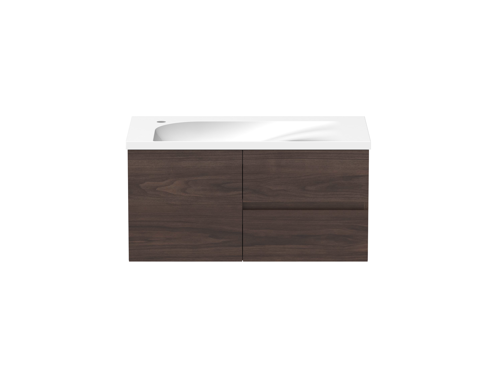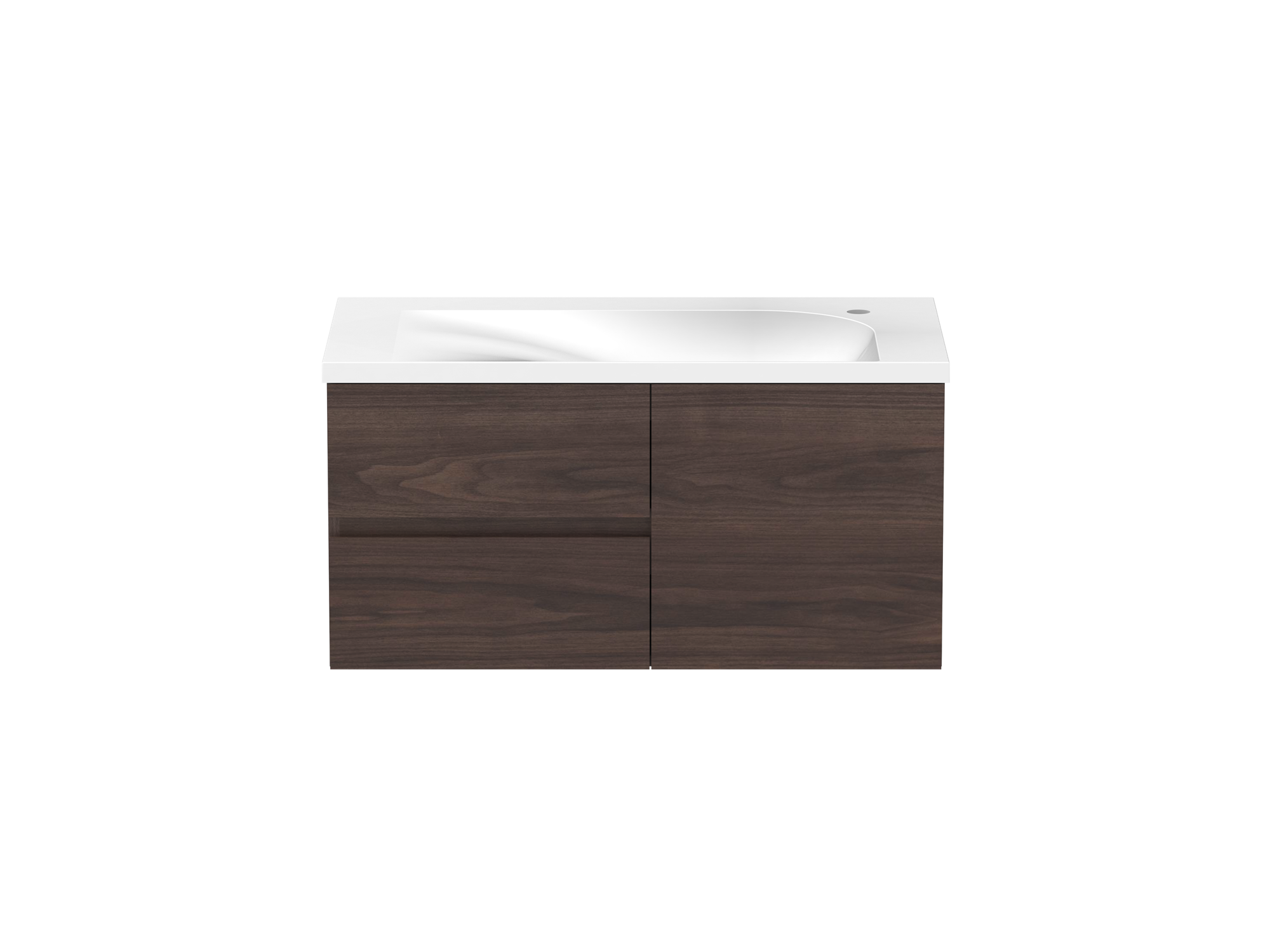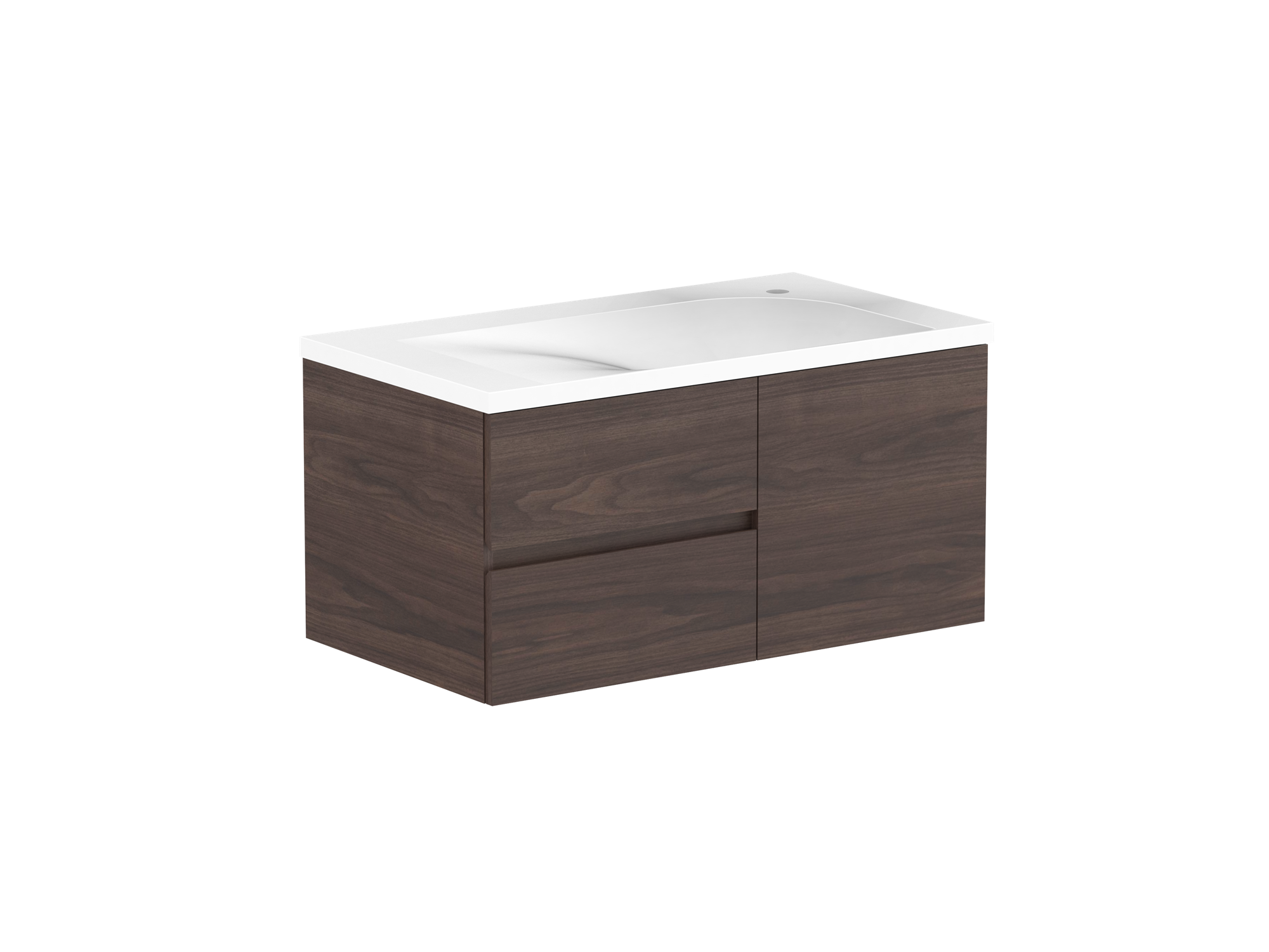Solid surface top in matte white, with left or right hand bowl (0 or 1 tap hole).