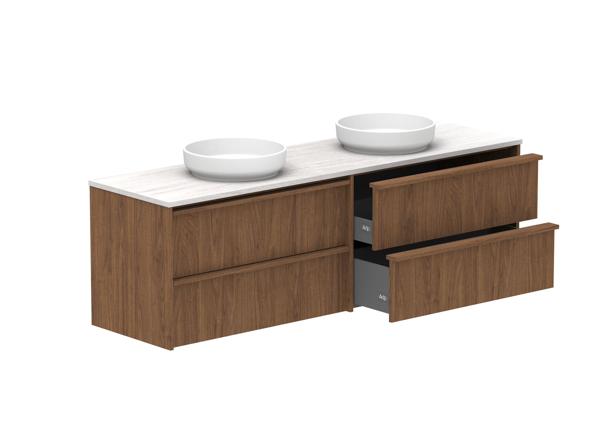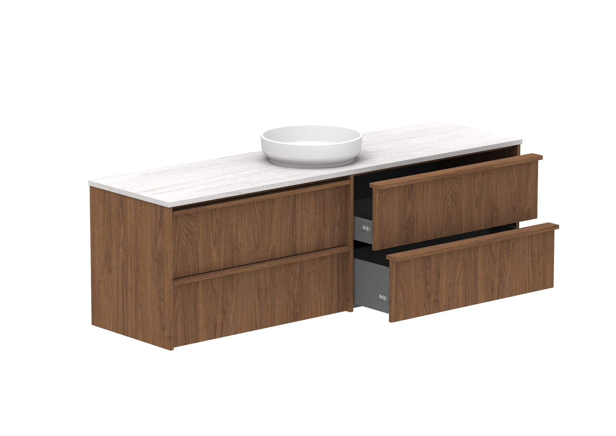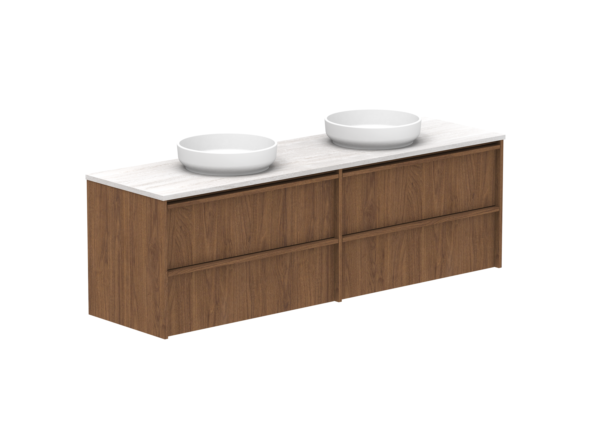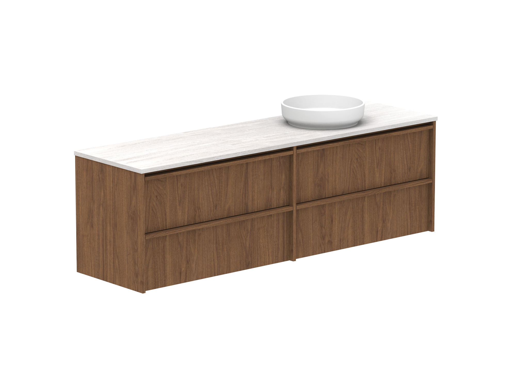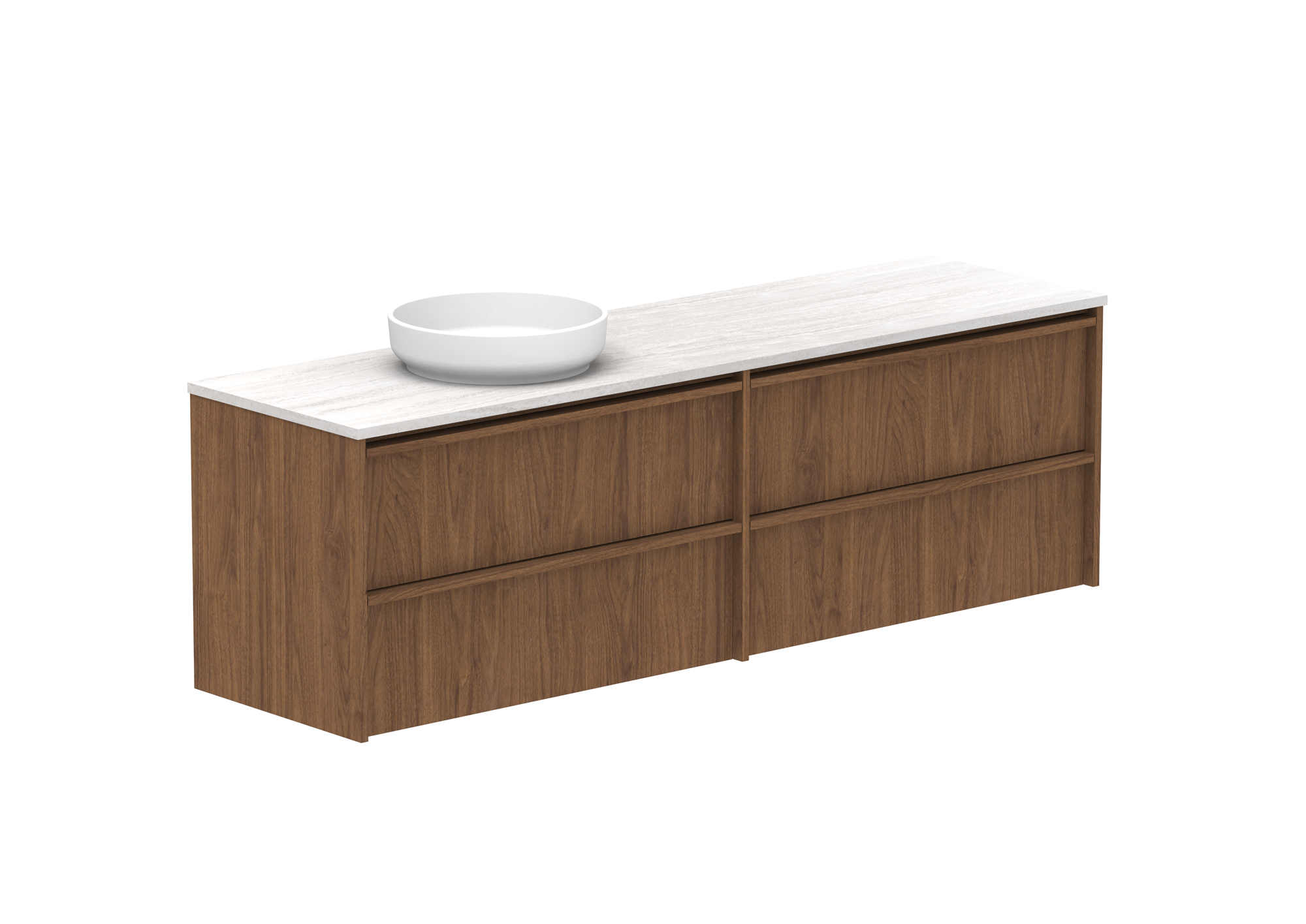 Choose from all benchtop options: 12mm Durasein, 20mm Cherry Pie & 20mm Caesarstone. Upgrade to Statement or Royale benchtop available, surcharge applies.