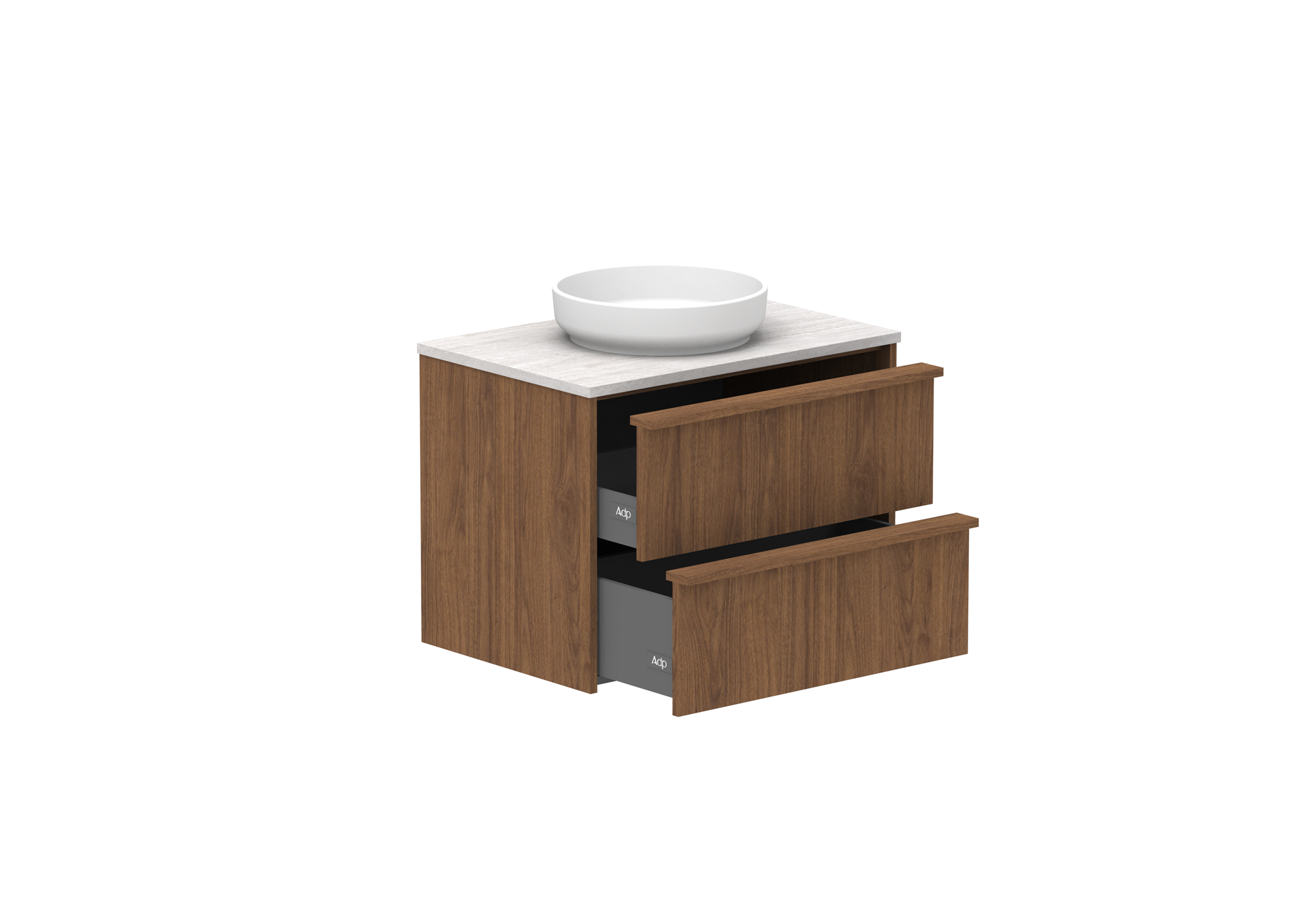 Choose from all benchtop options: 12mm Durasein, 20mm Cherry Pie & 20mm Caesarstone. Upgrade to Statement or Royale benchtop available, surcharge applies.