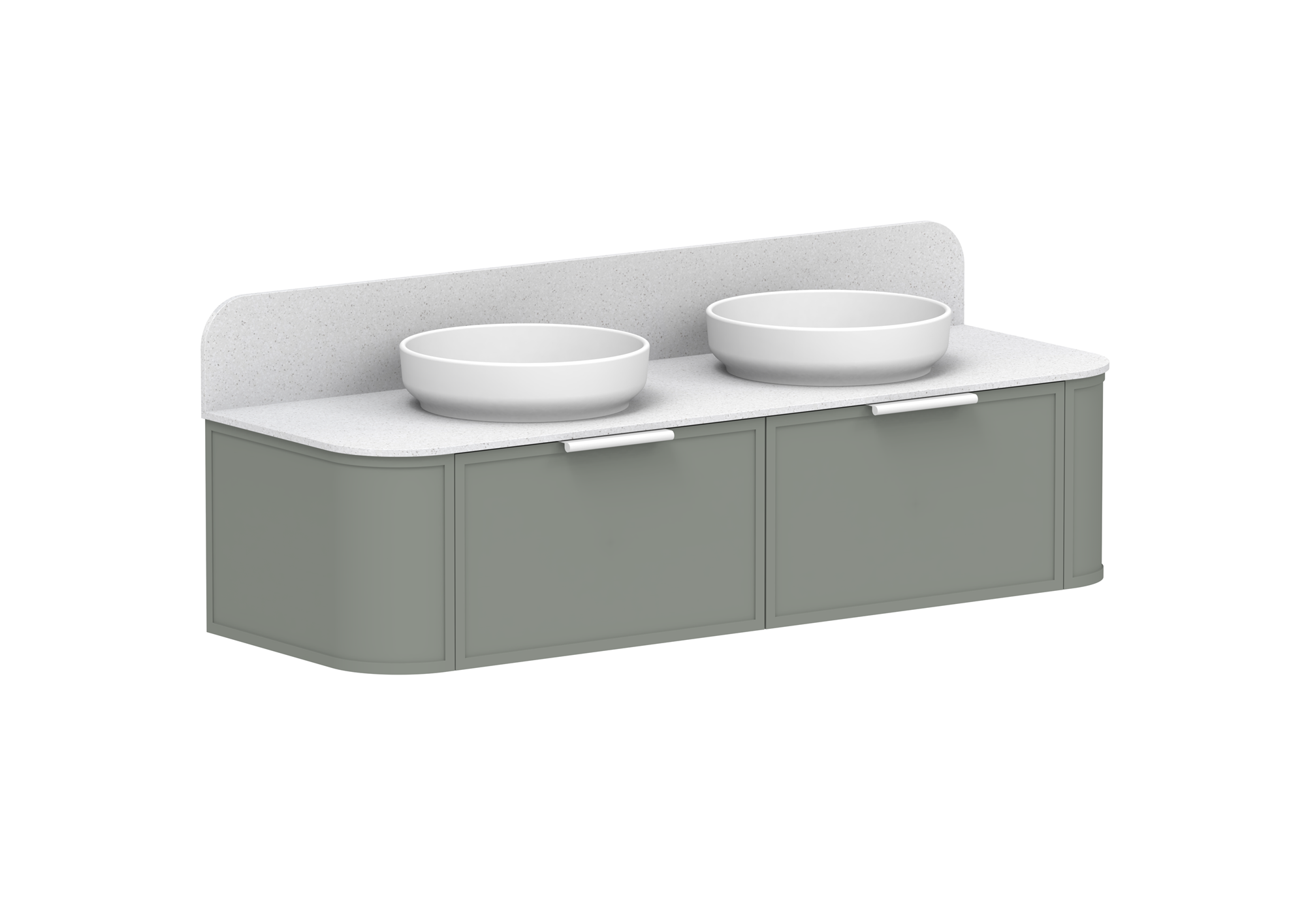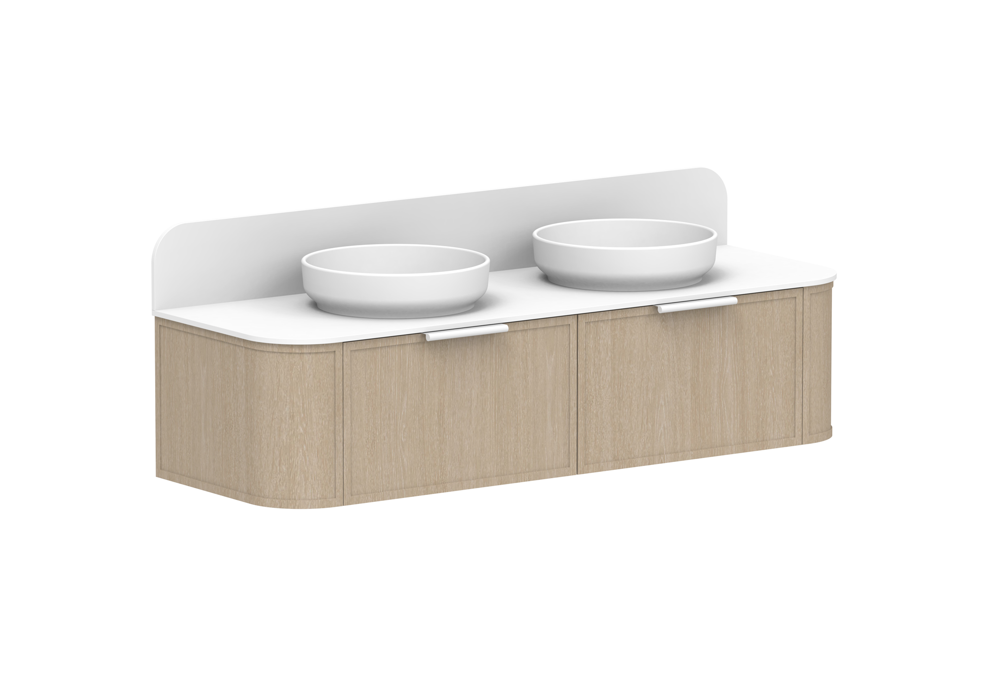 Complimentary 180mm Splashback with 80mm radius, in matching benchtop material.