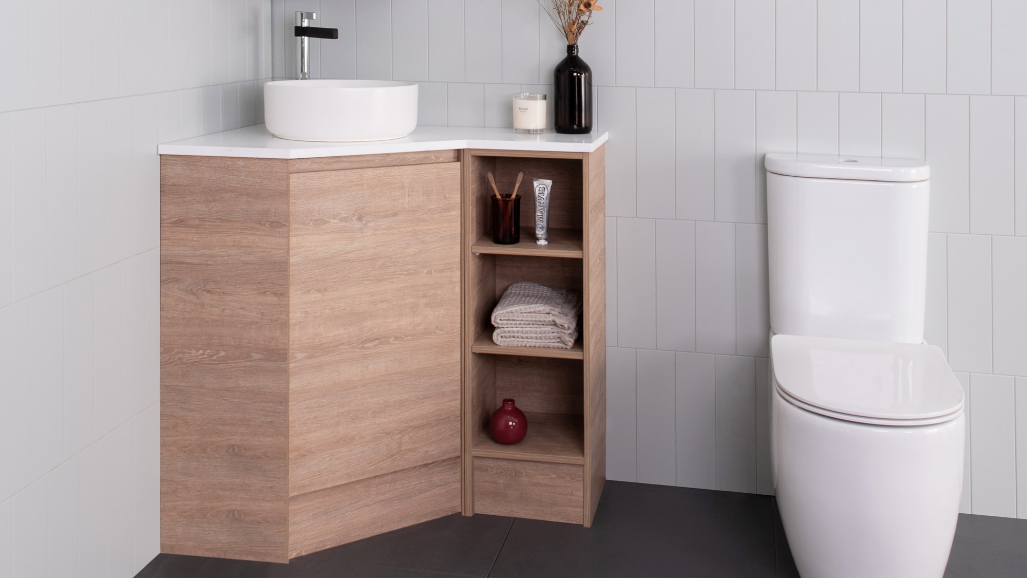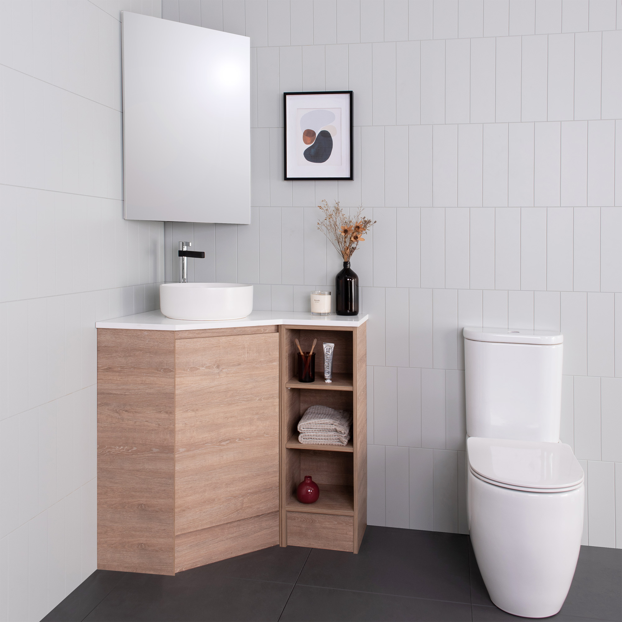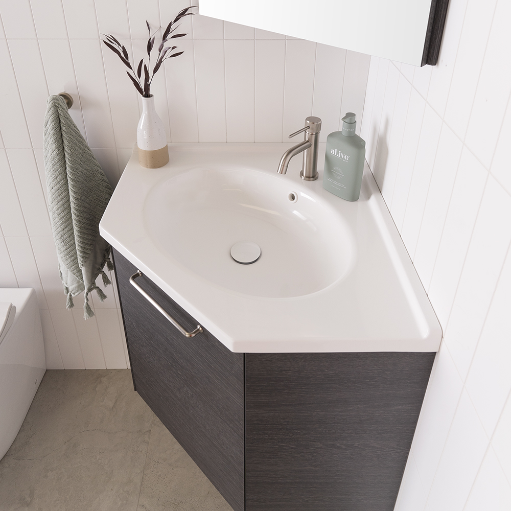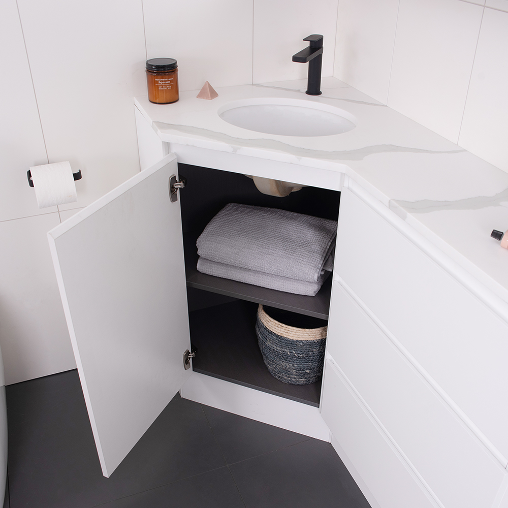 Choose from Cast Marble moulded top (1 tap hole only) or Benchtop options: 20mm Cherry Pie Solid Surface or 12mm Durasein Solid Surface.