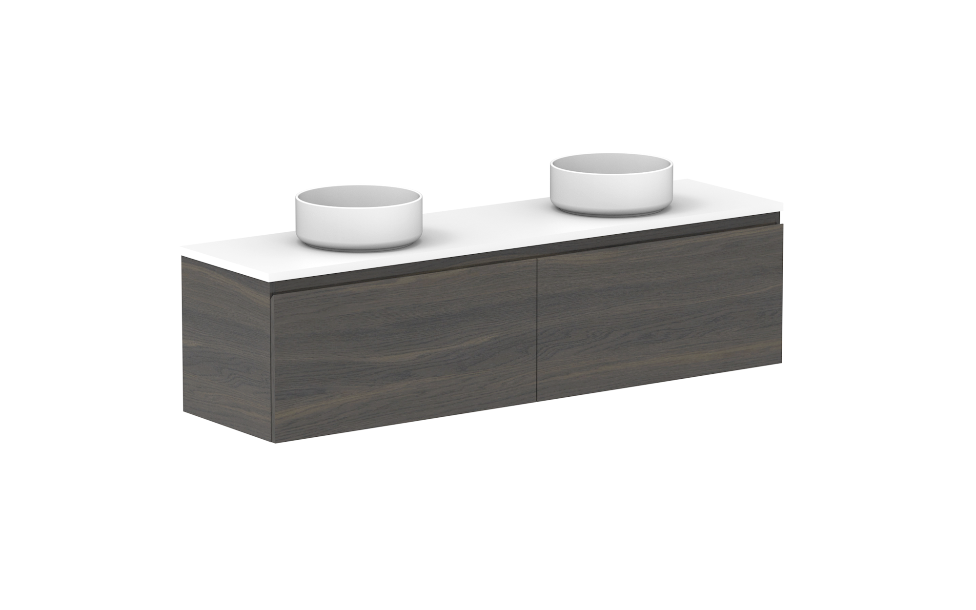Glacier Ensuite, All-Drawer 1500 Slim WH, Benchtop Double Bowl