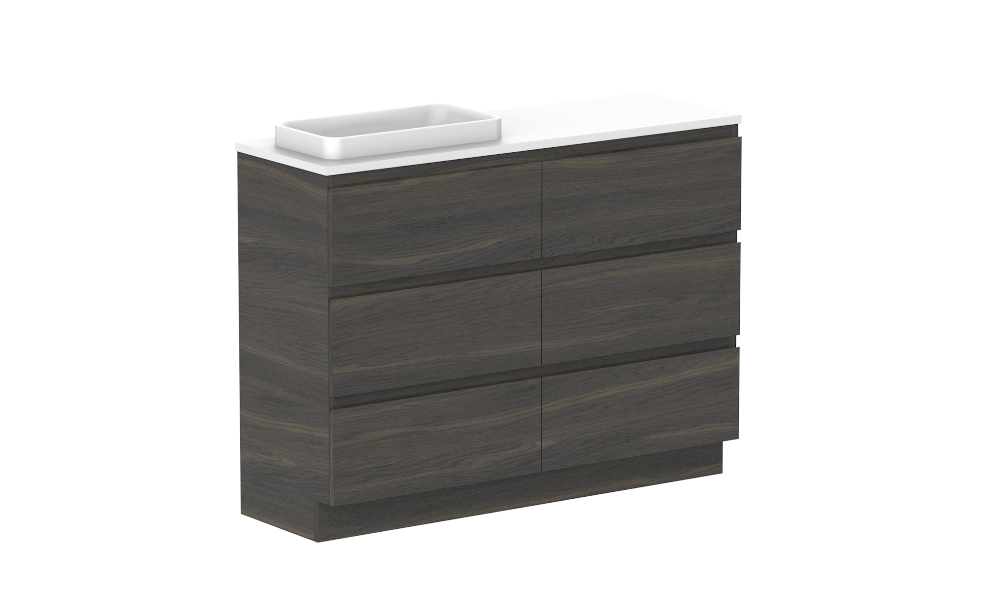 Choose from Ceramic or Cast Marble moulded tops (0, 1 or 3 tap hole available) or benchtop options (no extra charge for basin & tap hole cut-out).