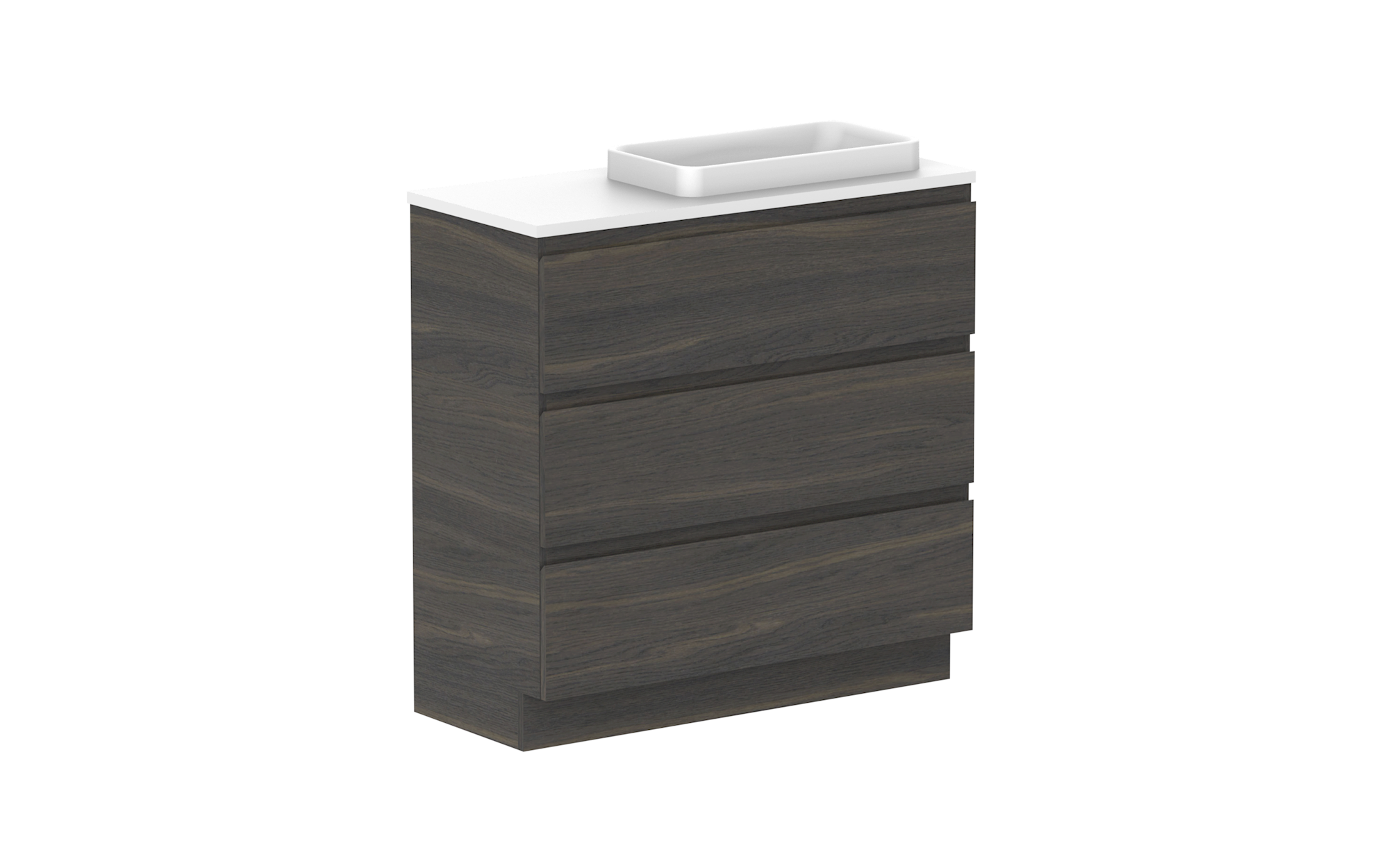 Glacier Ensuite, All-Drawer 900 Trio FM, Benchtop Offset Bowl