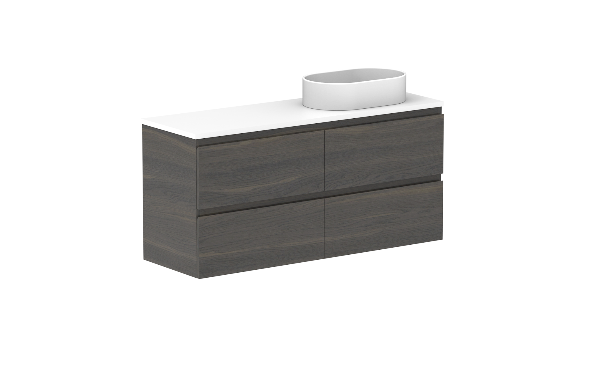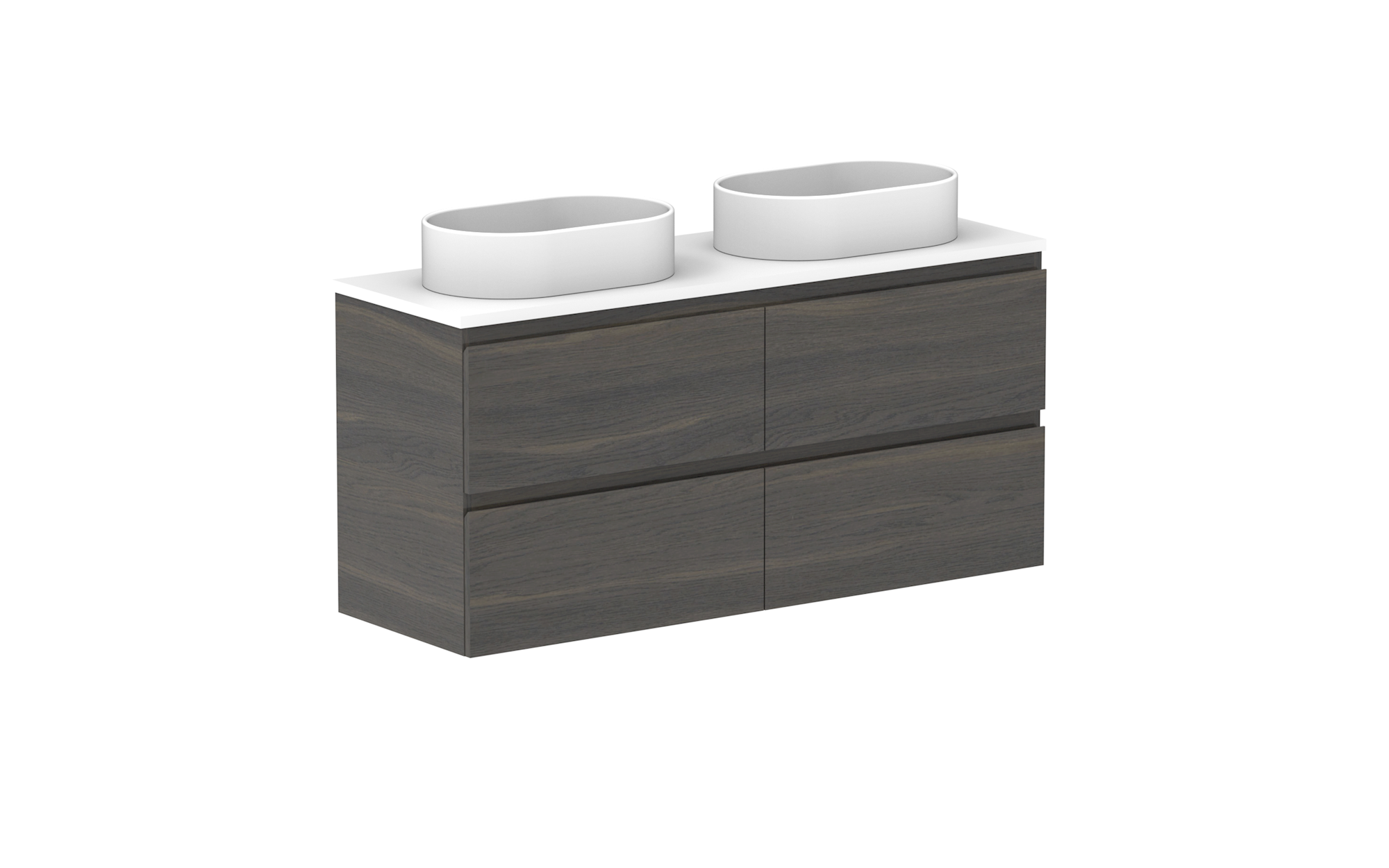 Glacier Ensuite, All-Drawer 1200 Twin WH, Benchtop Offset Bowl