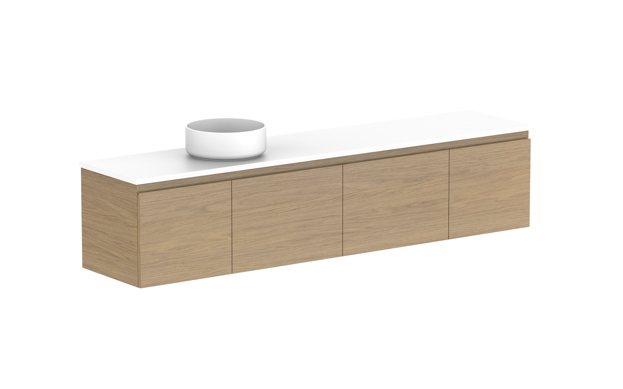 Glacier Ensuite, Door & Drawer 1800 Slim WH, Benchtop Offset Bowl