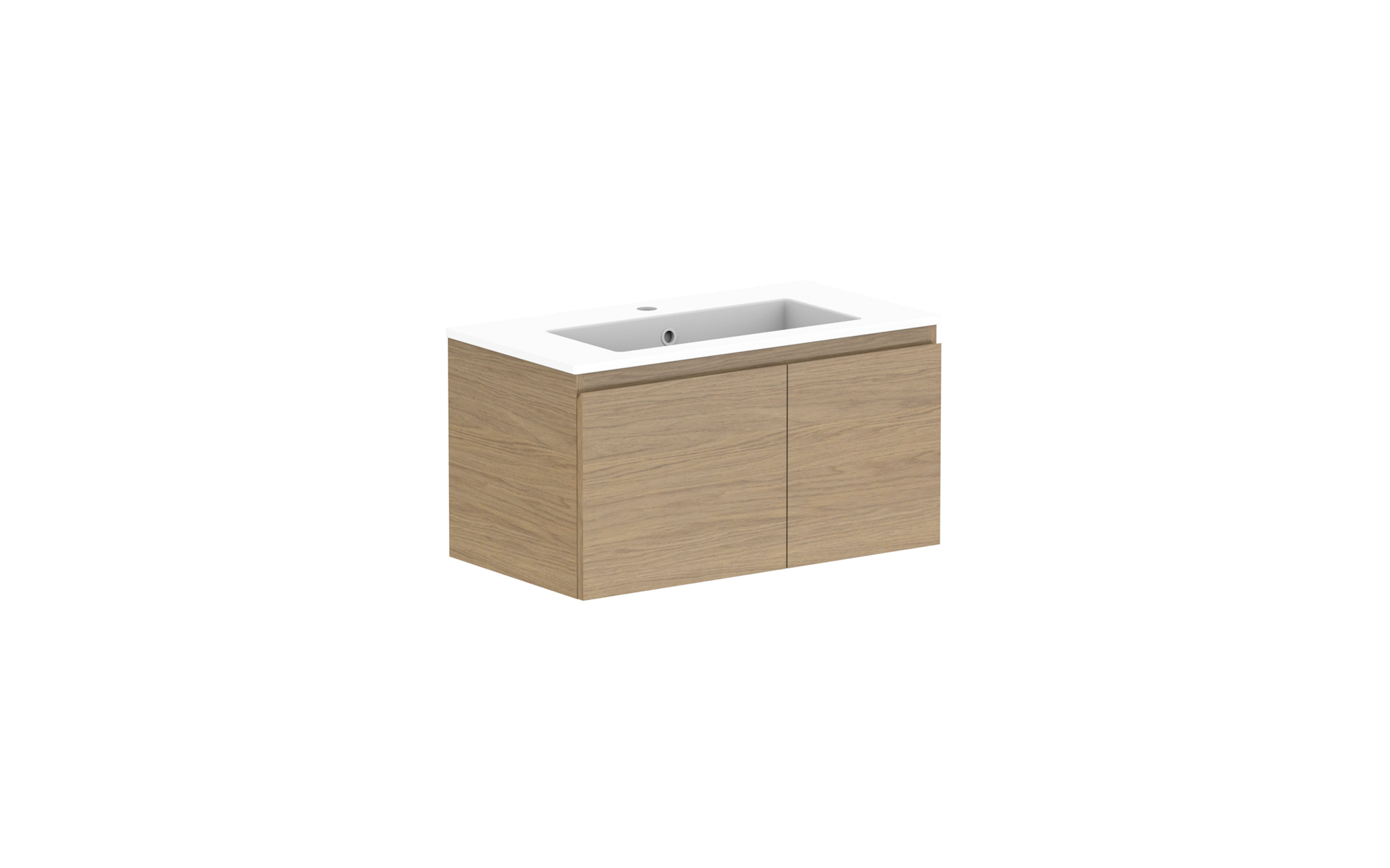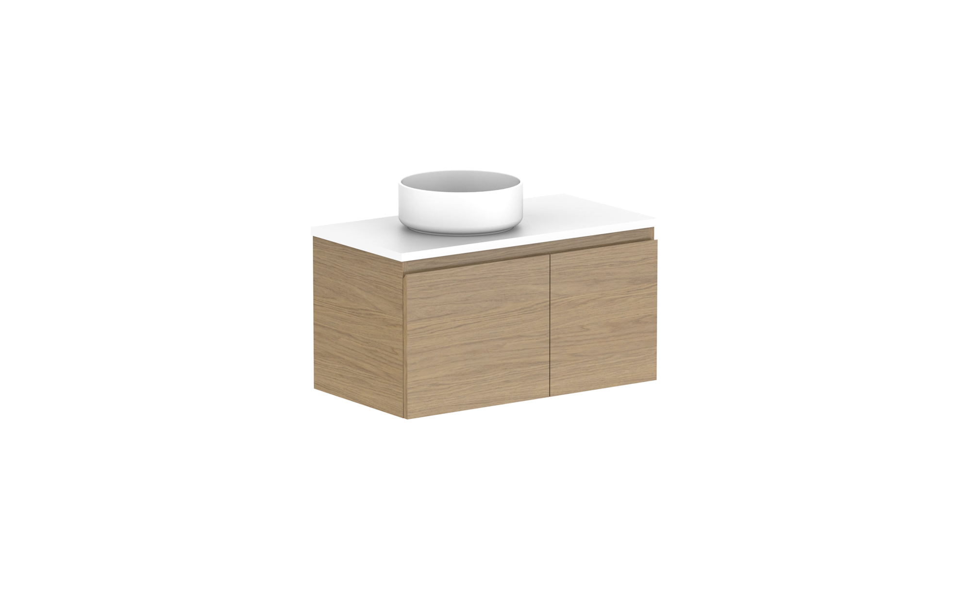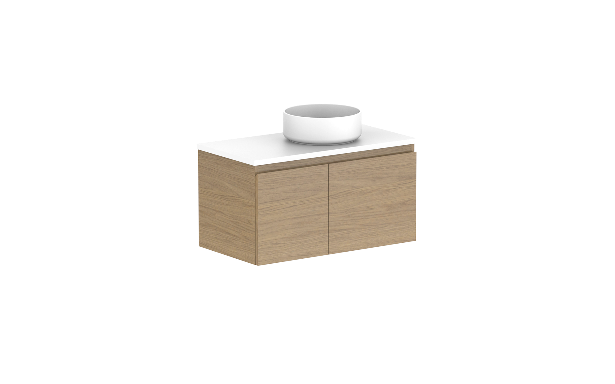 Glacier Ensuite, Door & Drawer 750 Slim WH, Benchtop Offset Bowl