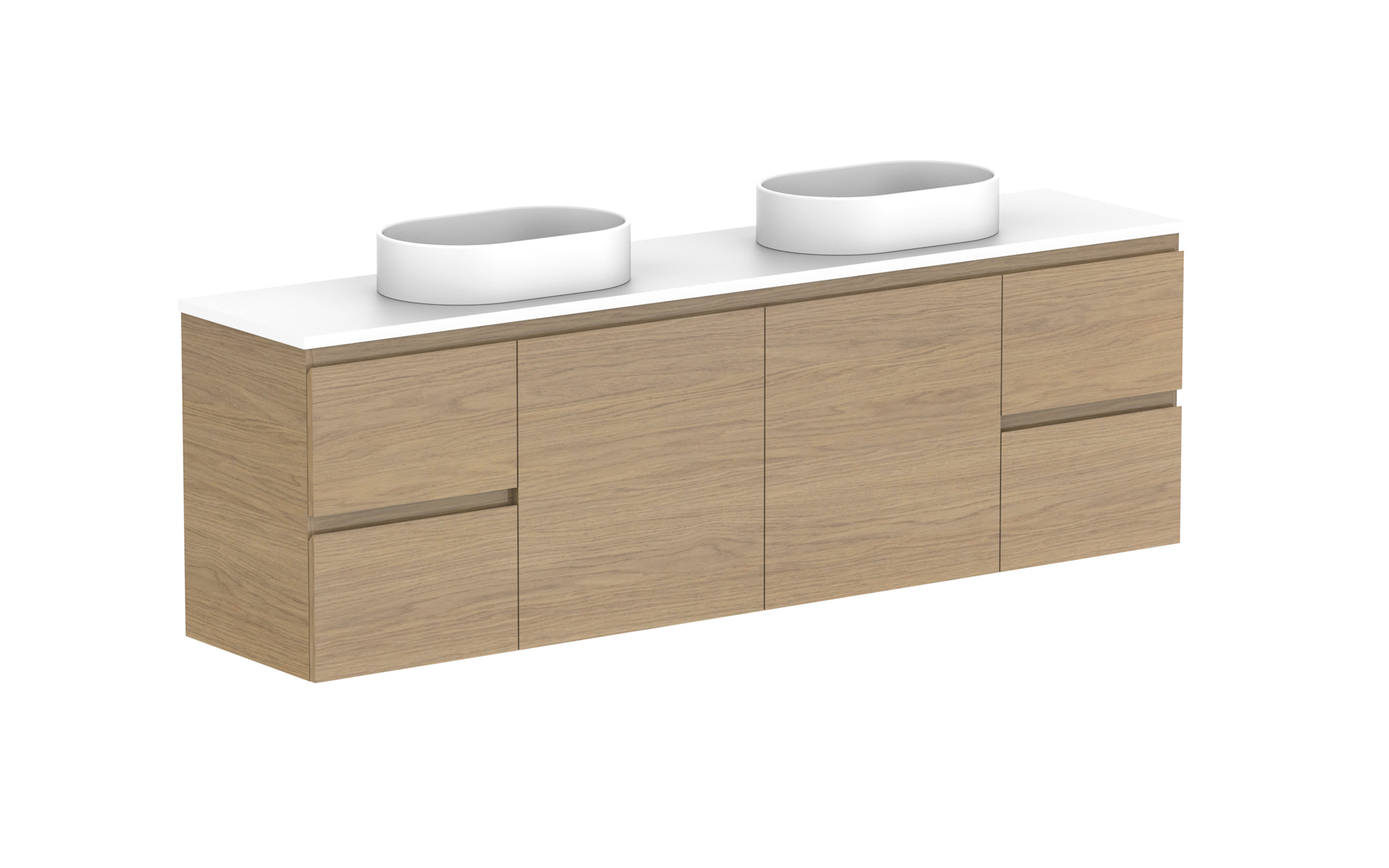 Glacier Ensuite, Door & Drawer 1800 Twin WH, Benchtop Double Bowl