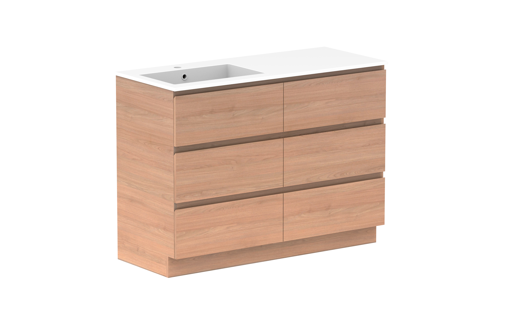 Choose from Ceramic or Cast Marble moulded tops (0, 1 or 3 tap hole available) or benchtop options (no extra charge for basin & tap hole cut-out).