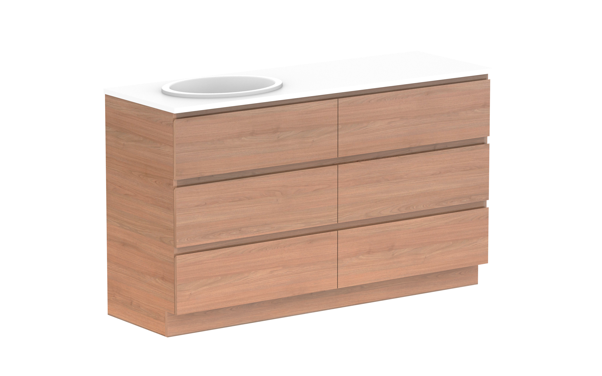 Choose from Ceramic or Cast Marble moulded tops (0, 1 or 3 tap hole available) or benchtop options (no extra charge for basin & tap hole cut-out).