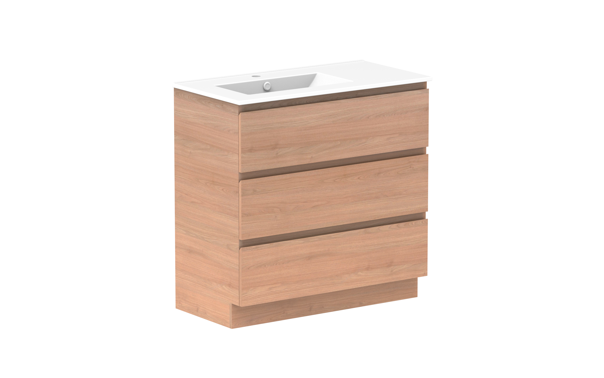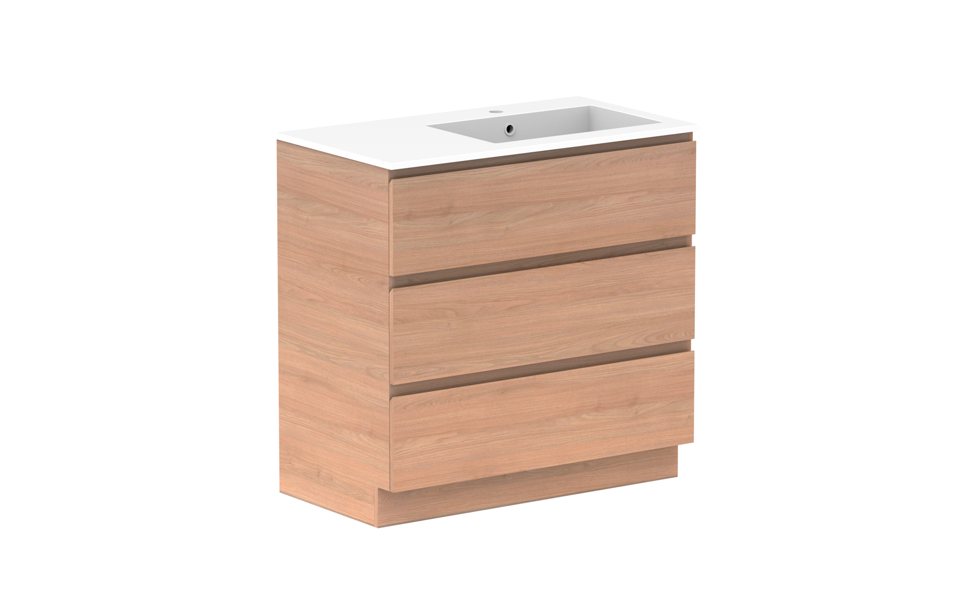 Choose from Ceramic or Cast Marble moulded tops (0, 1 or 3 tap hole available) or benchtop options (no extra charge for basin & tap hole cut-out).