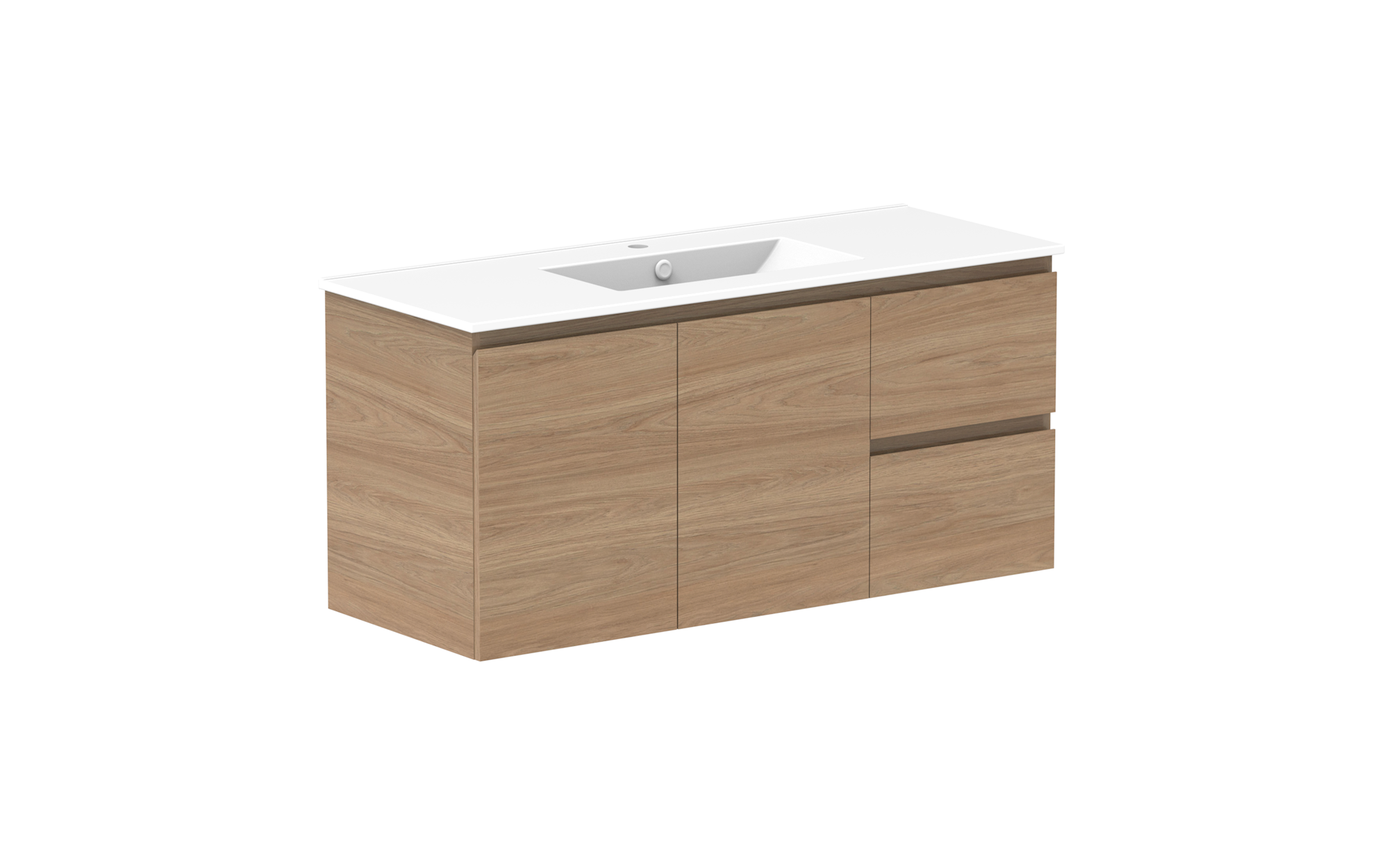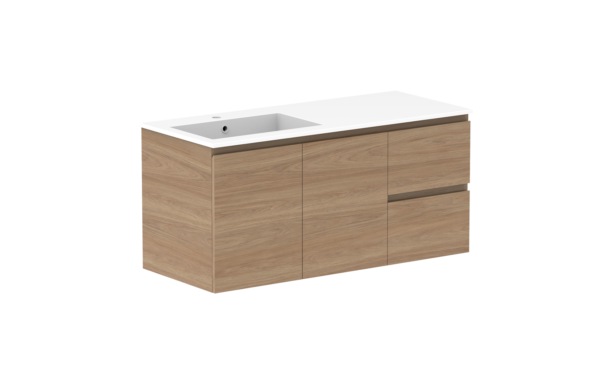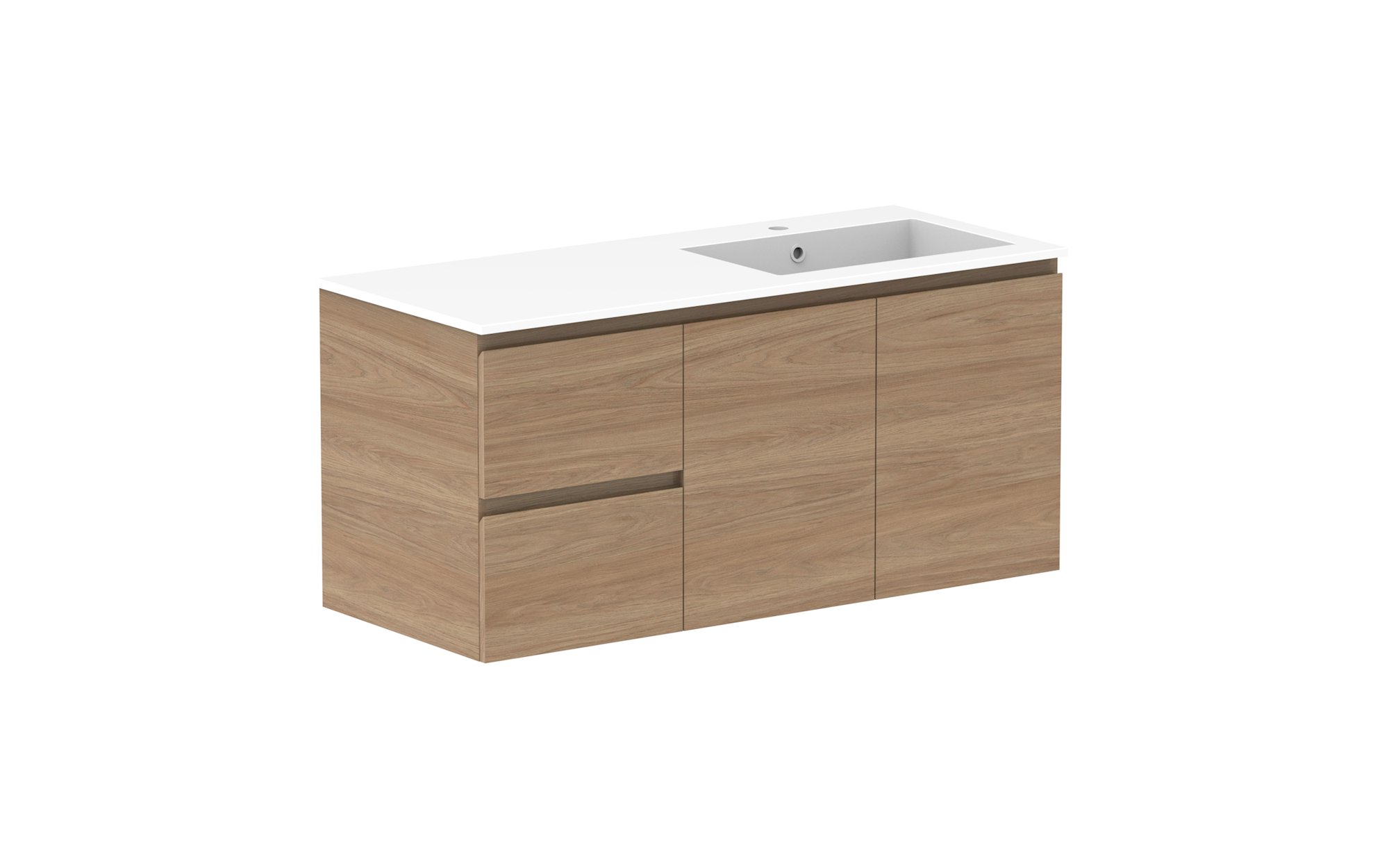 Choose from Ceramic or Cast Marble moulded tops (0, 1 or 3 tap hole available) or benchtop options (no extra charge for basin & tap hole cut-out).