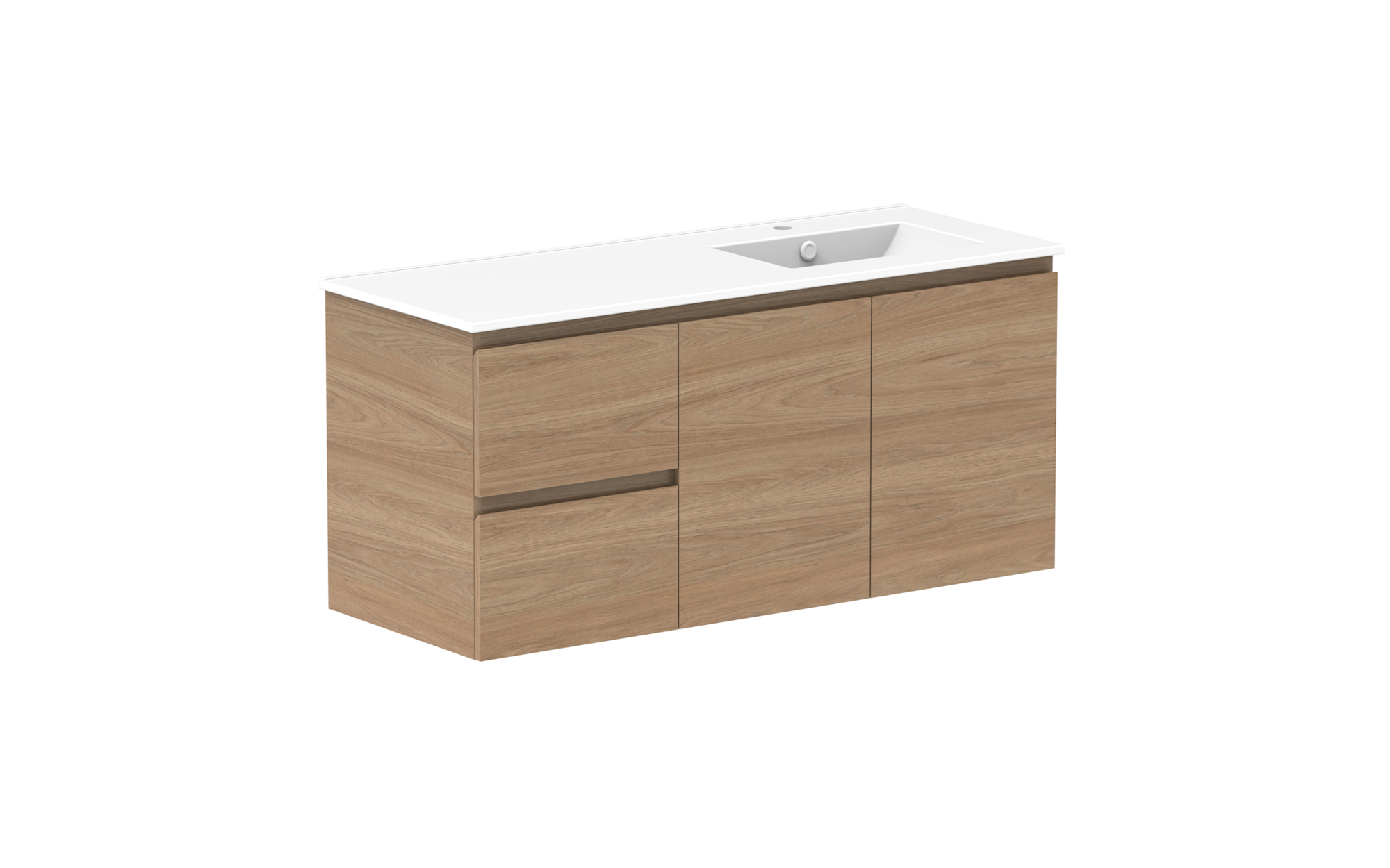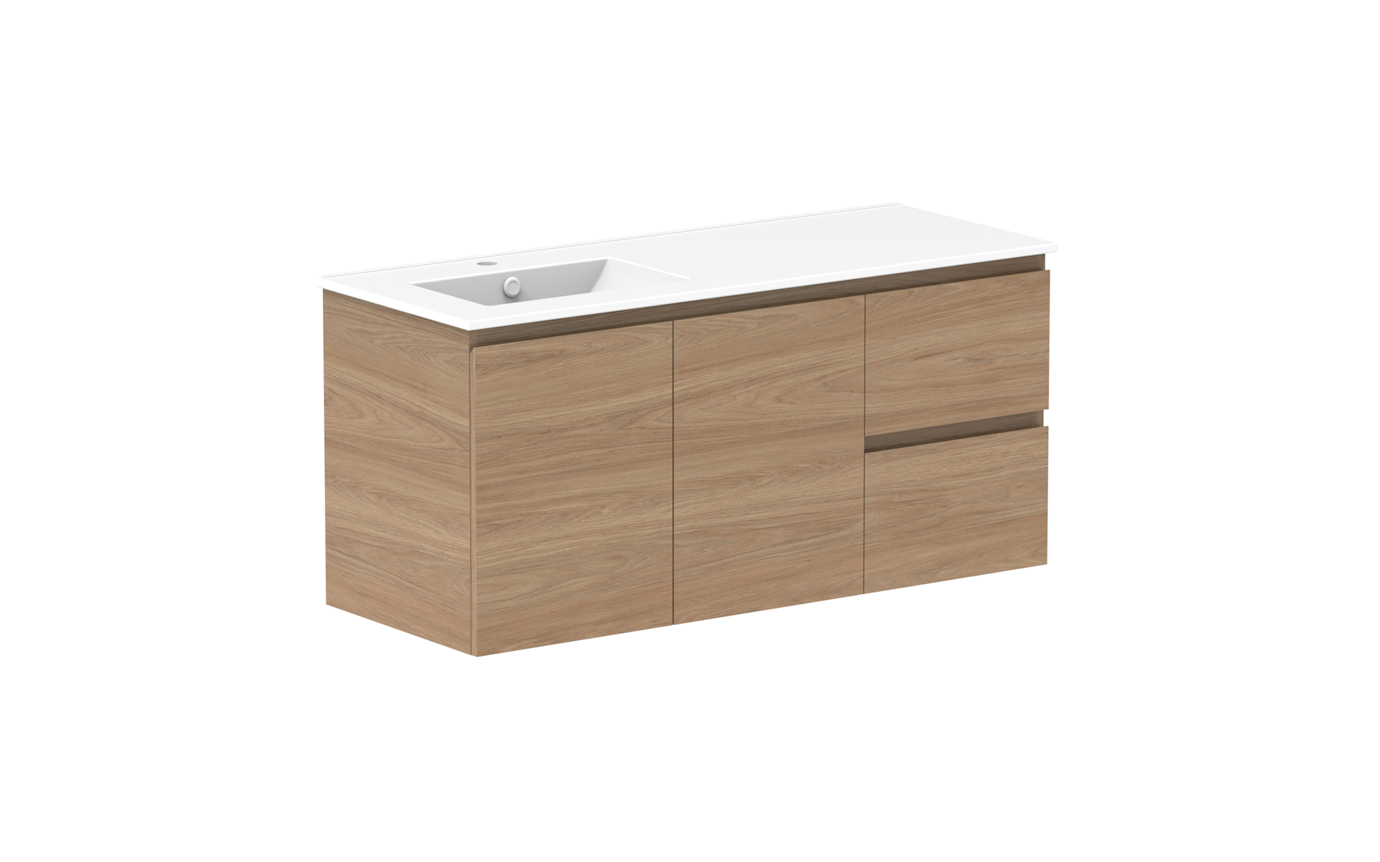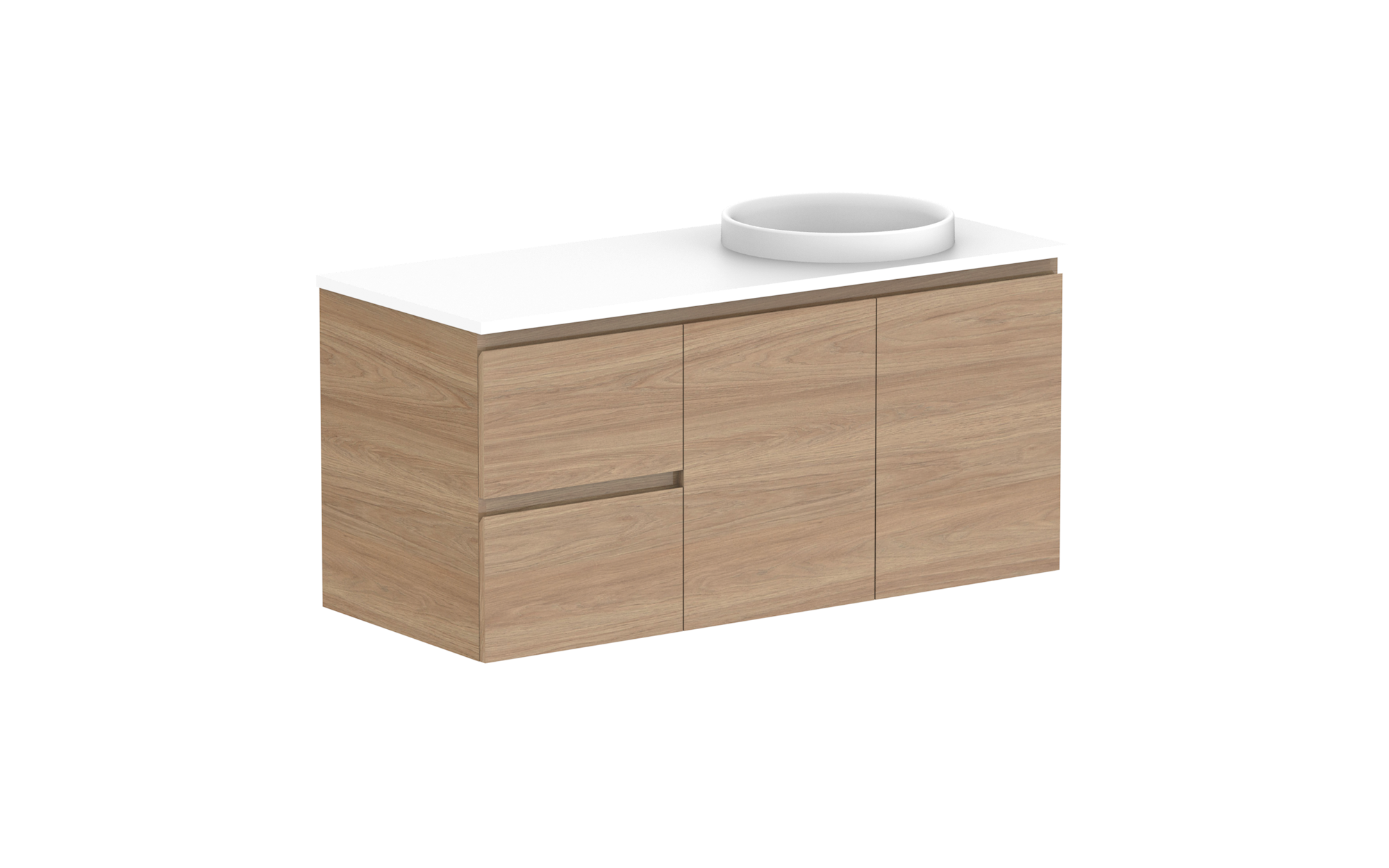 Choose from Ceramic or Cast Marble moulded tops (0, 1 or 3 tap hole available) or benchtop options (no extra charge for basin & tap hole cut-out).