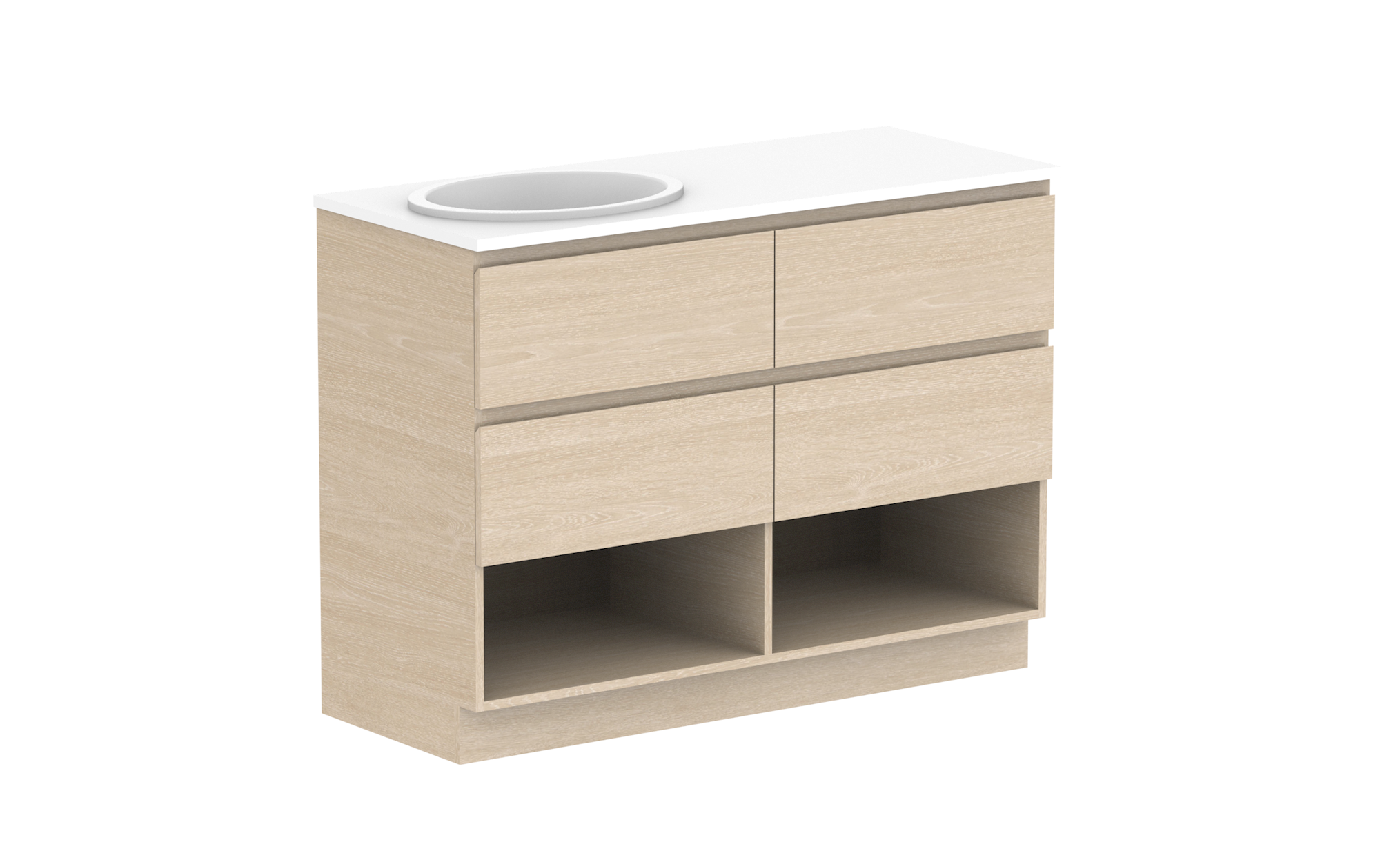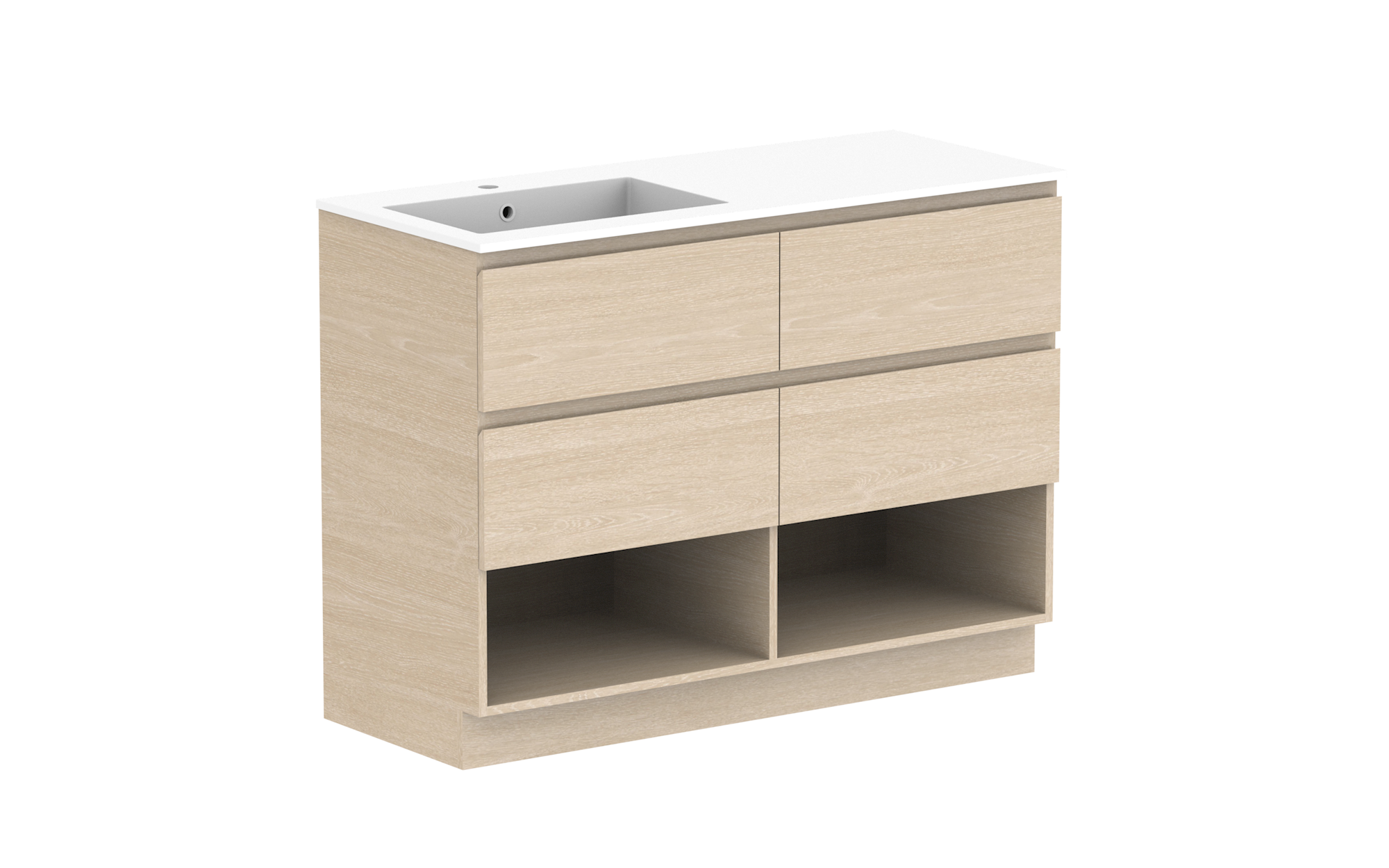Choose from Ceramic or Cast Marble moulded tops (0, 1 or 3 tap hole available) or benchtop options (no extra charge for basin & tap hole cut-out).