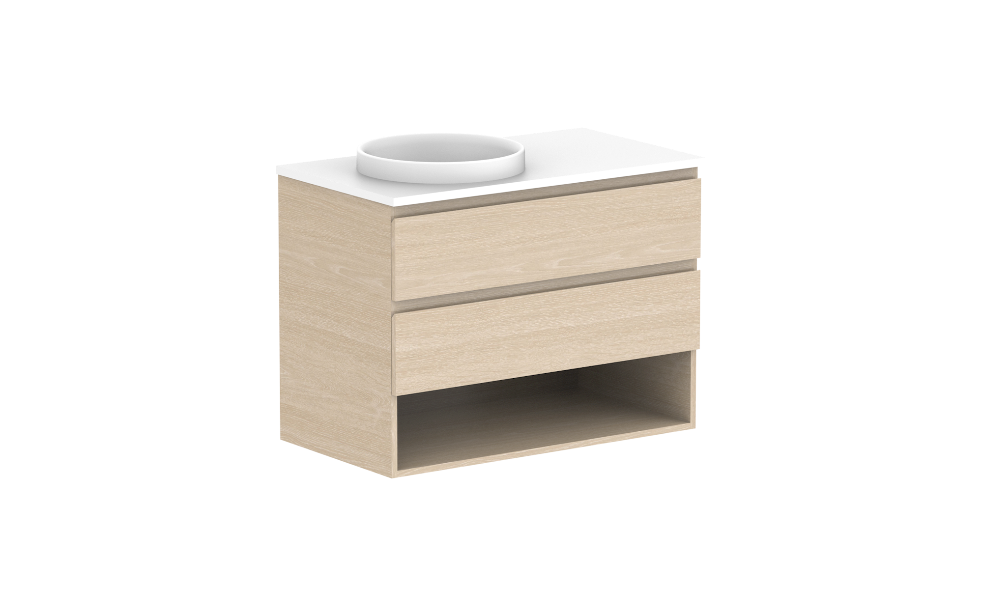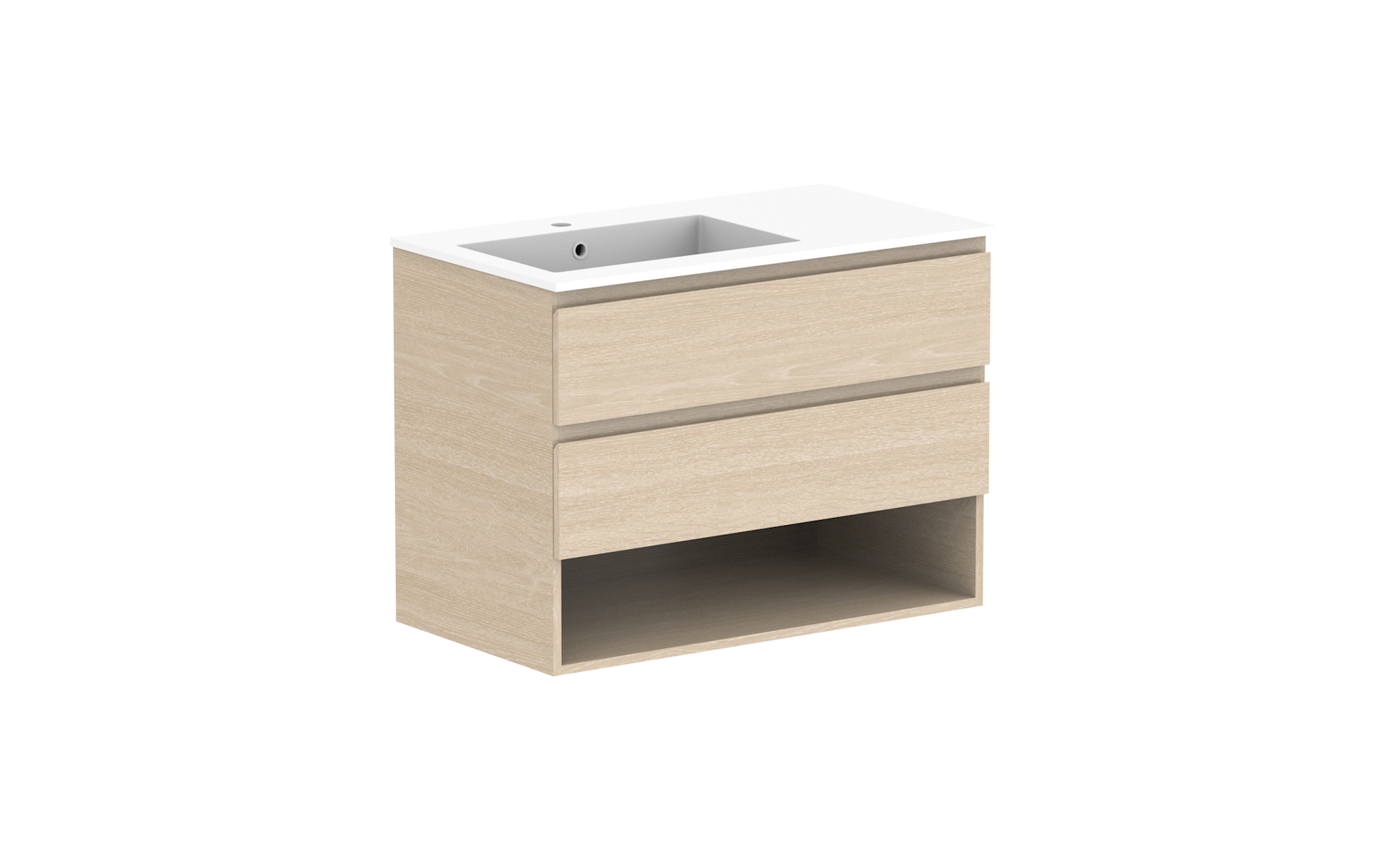 Choose from Ceramic or Cast Marble moulded tops (0, 1 or 3 tap hole available) or benchtop options (no extra charge for basin & tap hole cut-out).