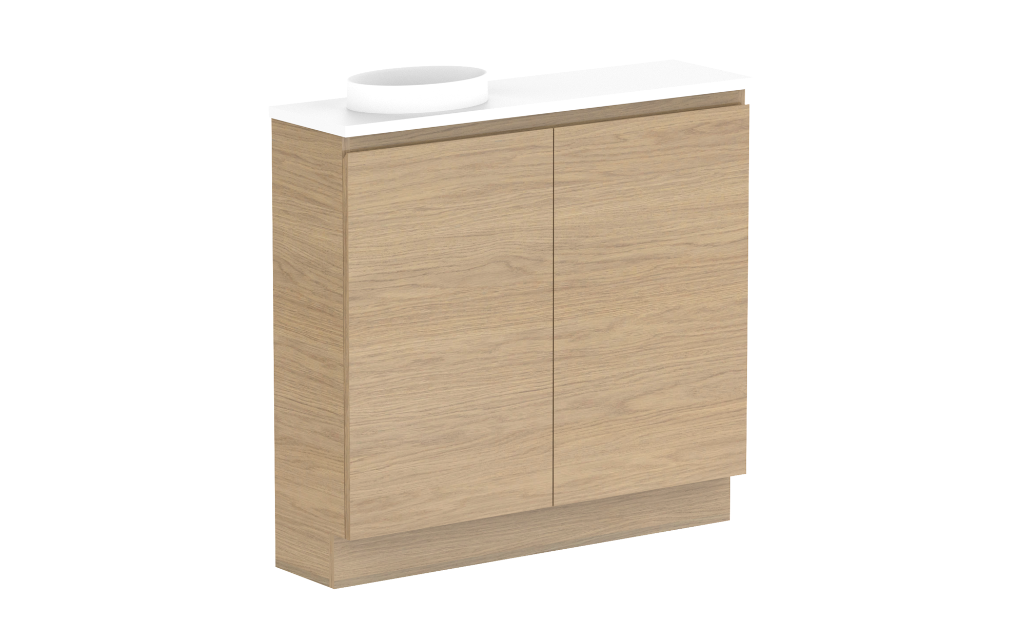 Bevel-grip finger pull (side bevel for Ceramic and Cast Marble Tops, top bevel for benchtop options) or choice of handle options.