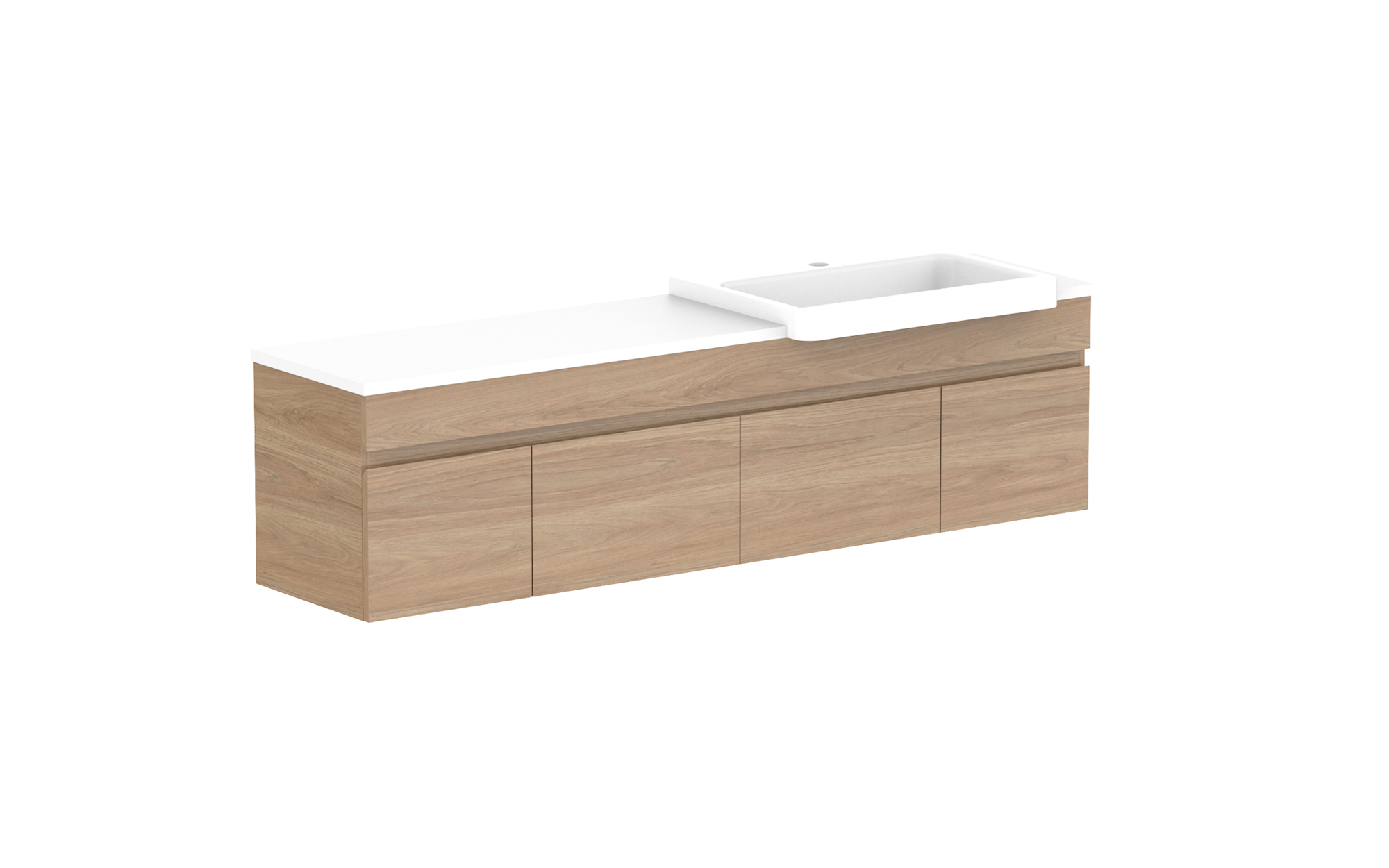 Glacier Semi-Recessed, Door & Drawer 1500 Slim WH, Benchtop Offset Bowl