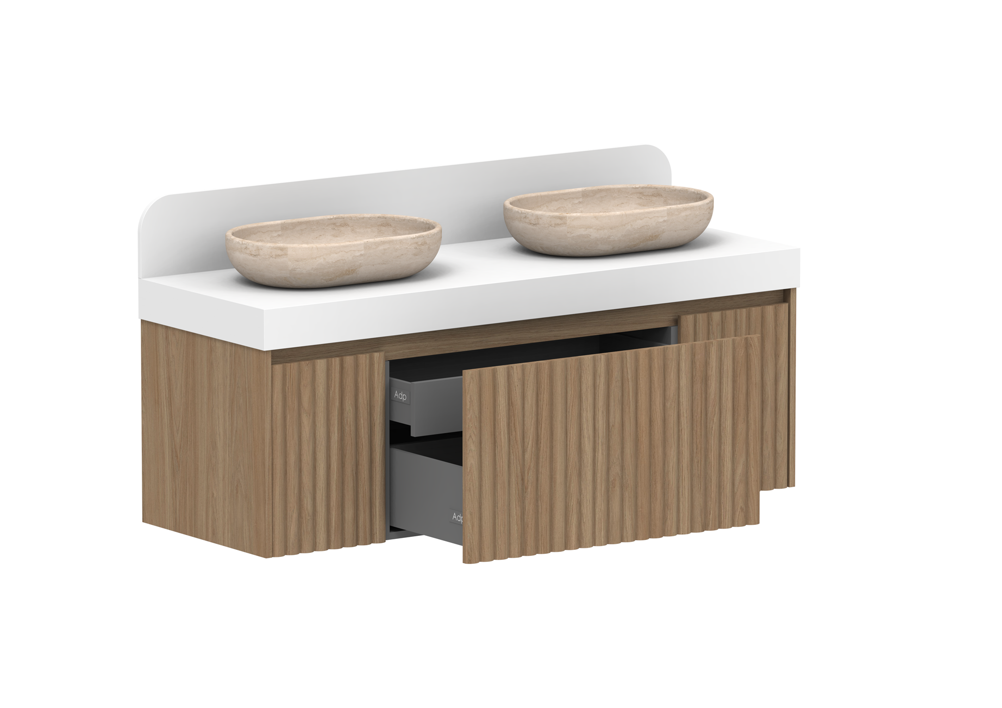 Complimentary 180mm Splashback with 80mm radius, in matching benchtop material.