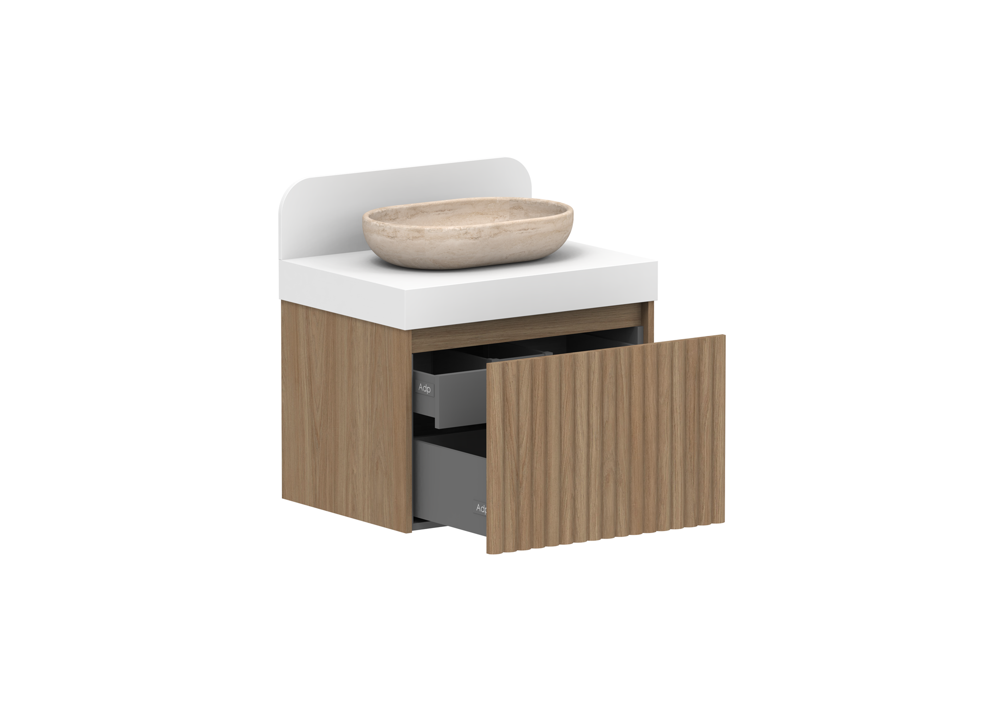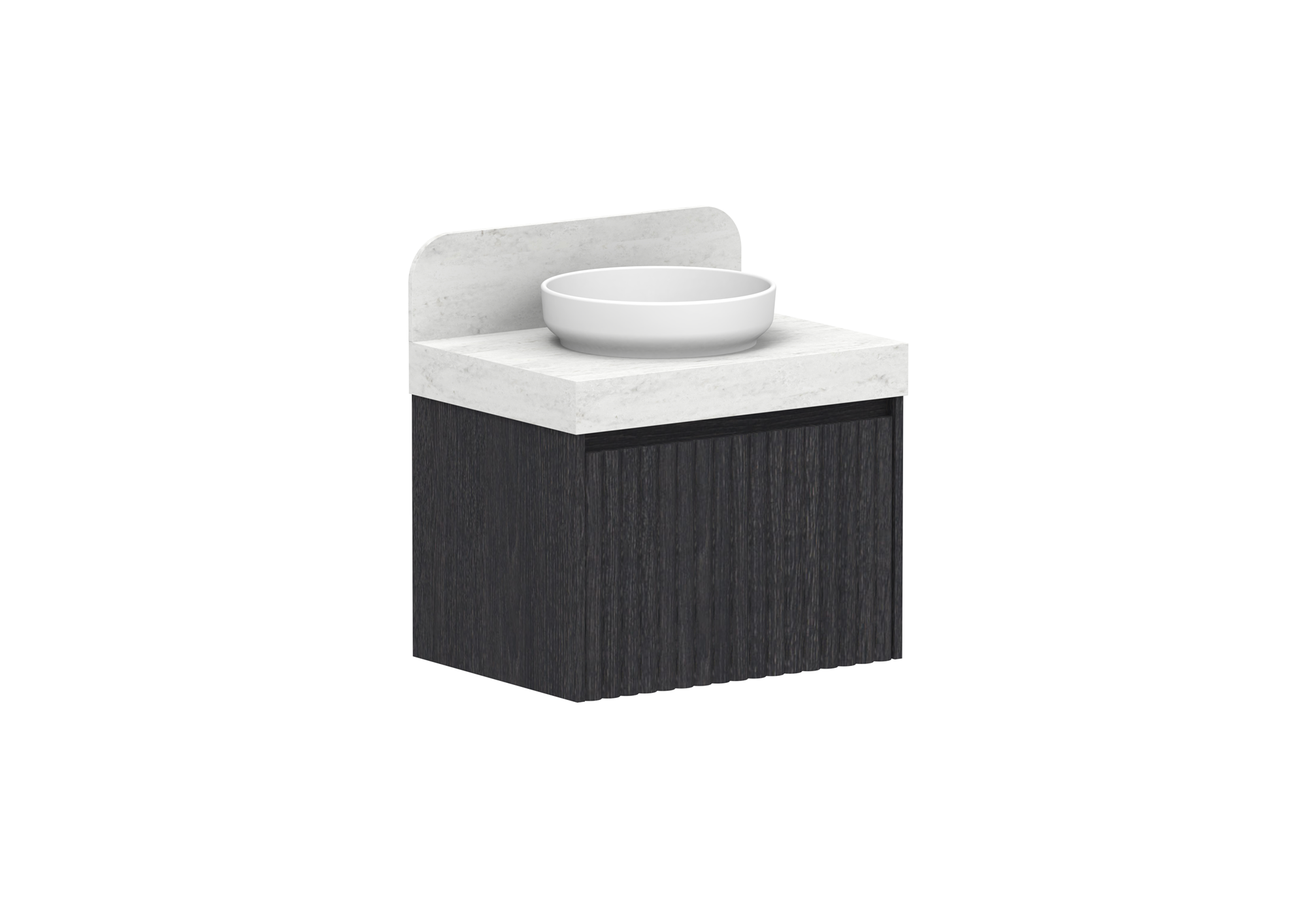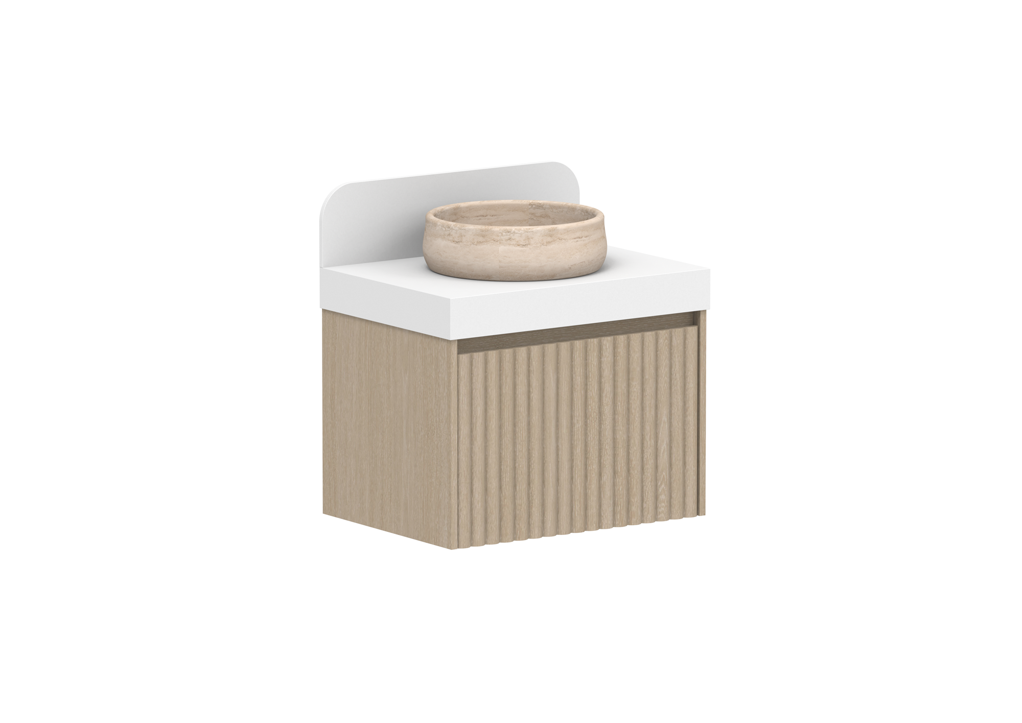 Complimentary 180mm Splashback with 80mm radius, in matching benchtop material.
