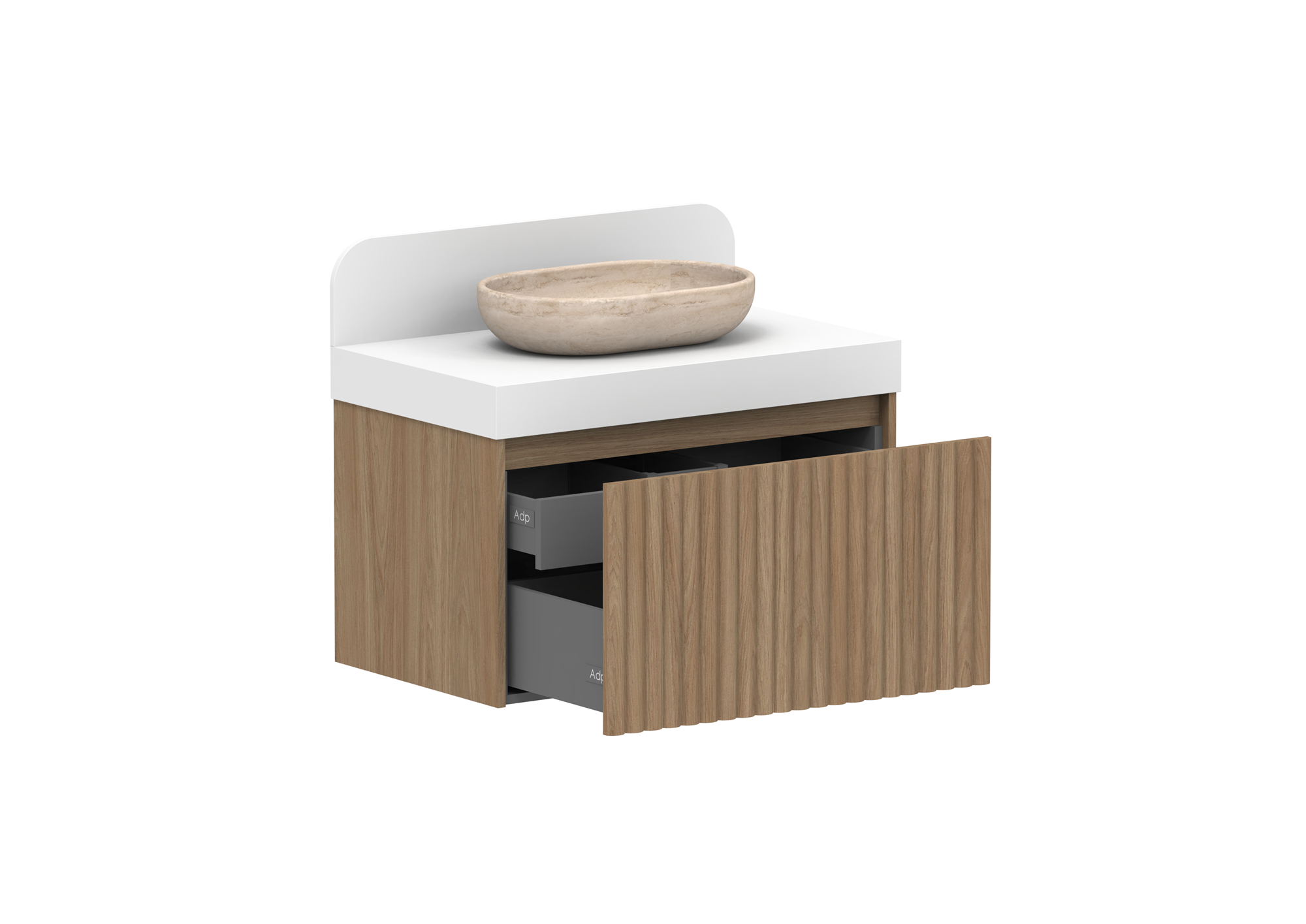 ADP Deluxe soft-close drawers with finger pull and premium graphite interior.