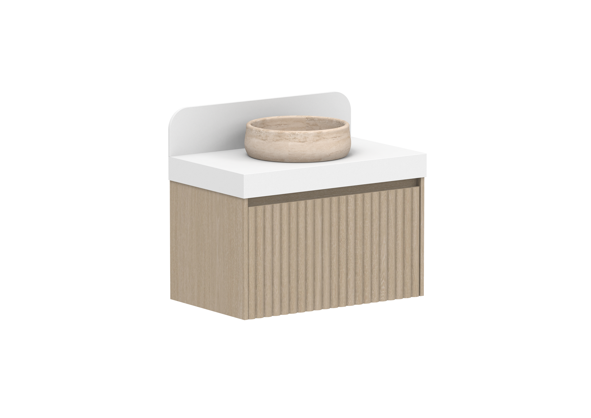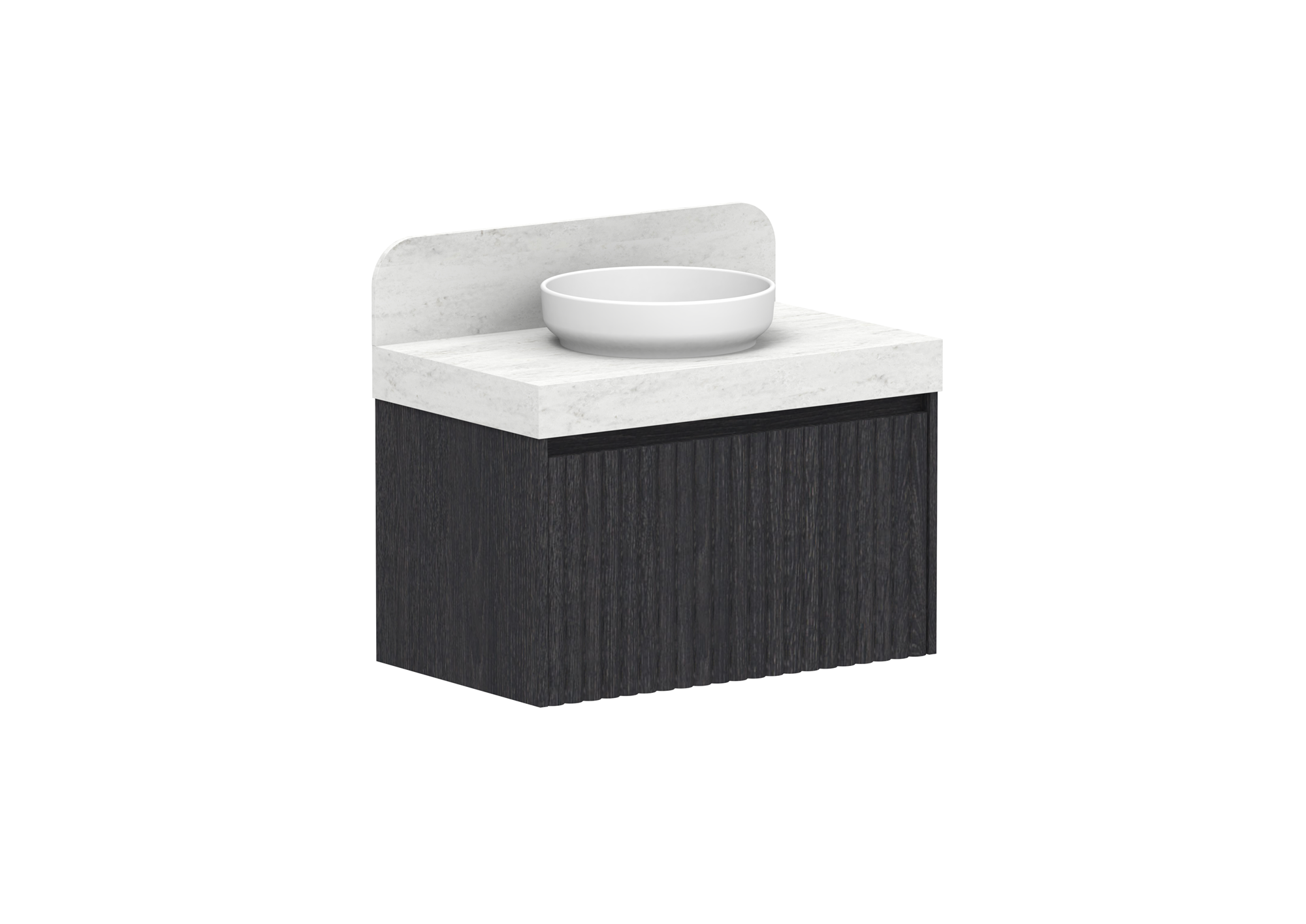 Complimentary 180mm Splashback with 80mm radius, in matching benchtop material.