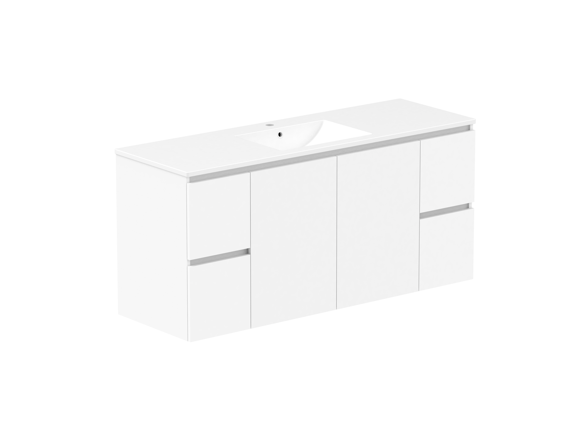 Jane Express - Next day despatch Polar White Silk (Gloss) with right hand drawers only. Moulded Cast Marble Top available as 1 tap hole only.