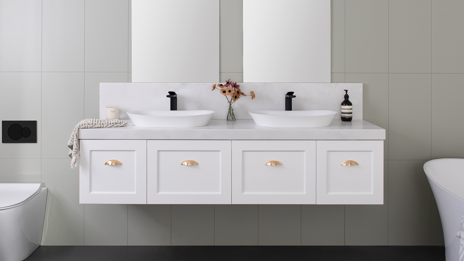 Deep Shaker 60 style cabinet fronts, available in Matte White, Feather Grey or Matte Black polyurethane finish only.