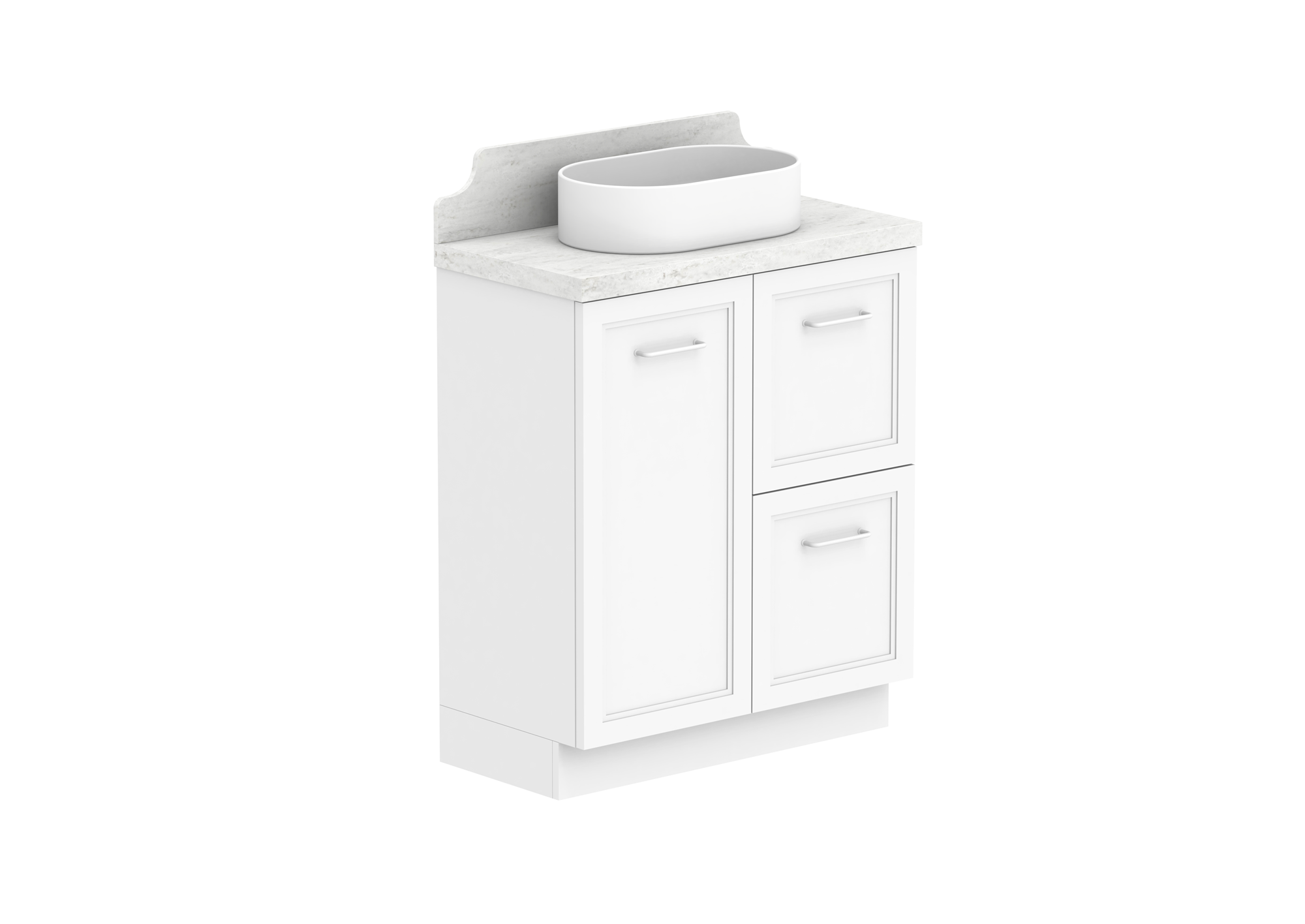 Comes standard with 40mm thick benchtop included. Choose from all benchtop options: Durasein, Cherry Pie & Caesarstone. Upgrade to 60 or 90mm Statement or 60mm Royale benchtop available, surcharge applies.