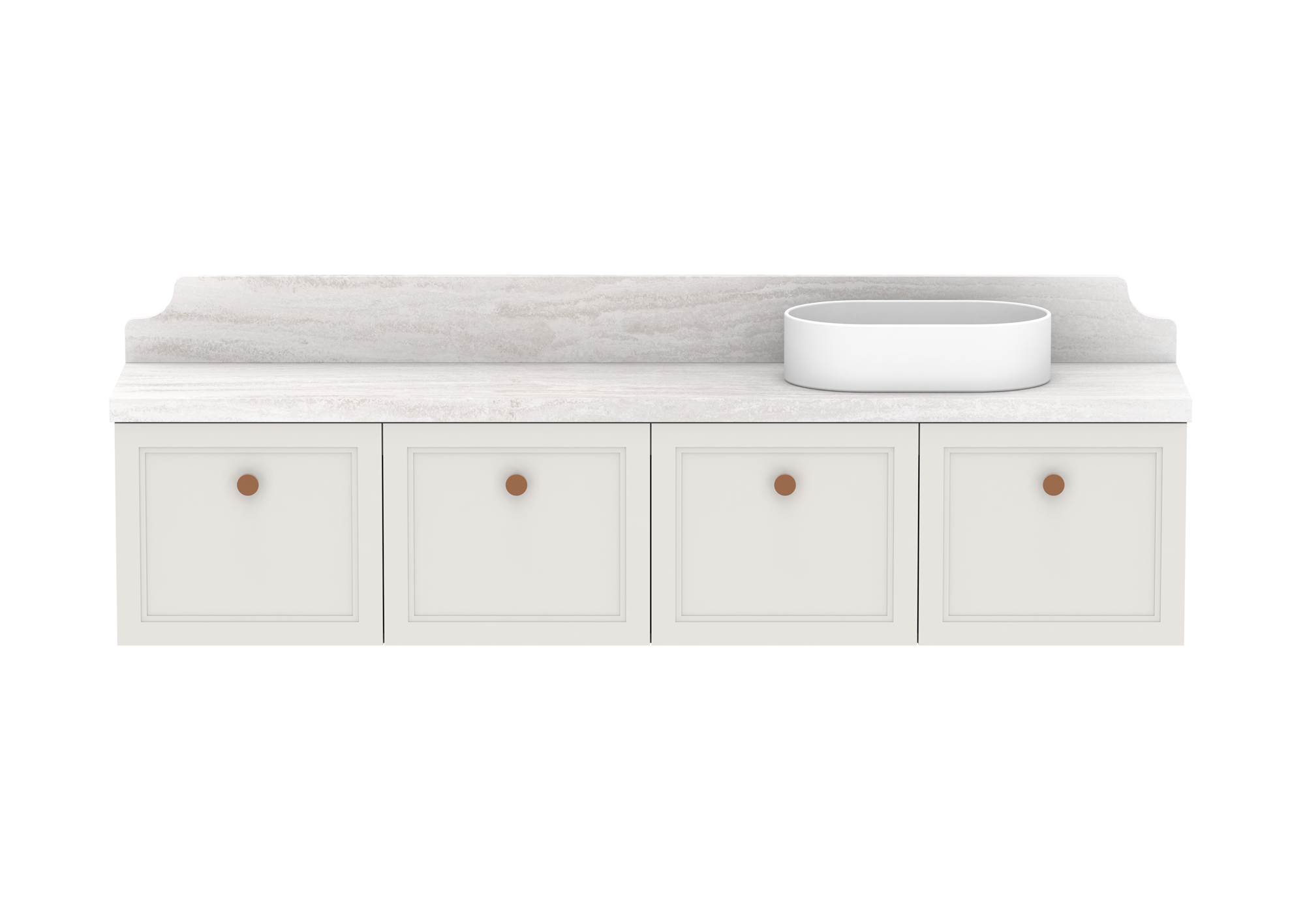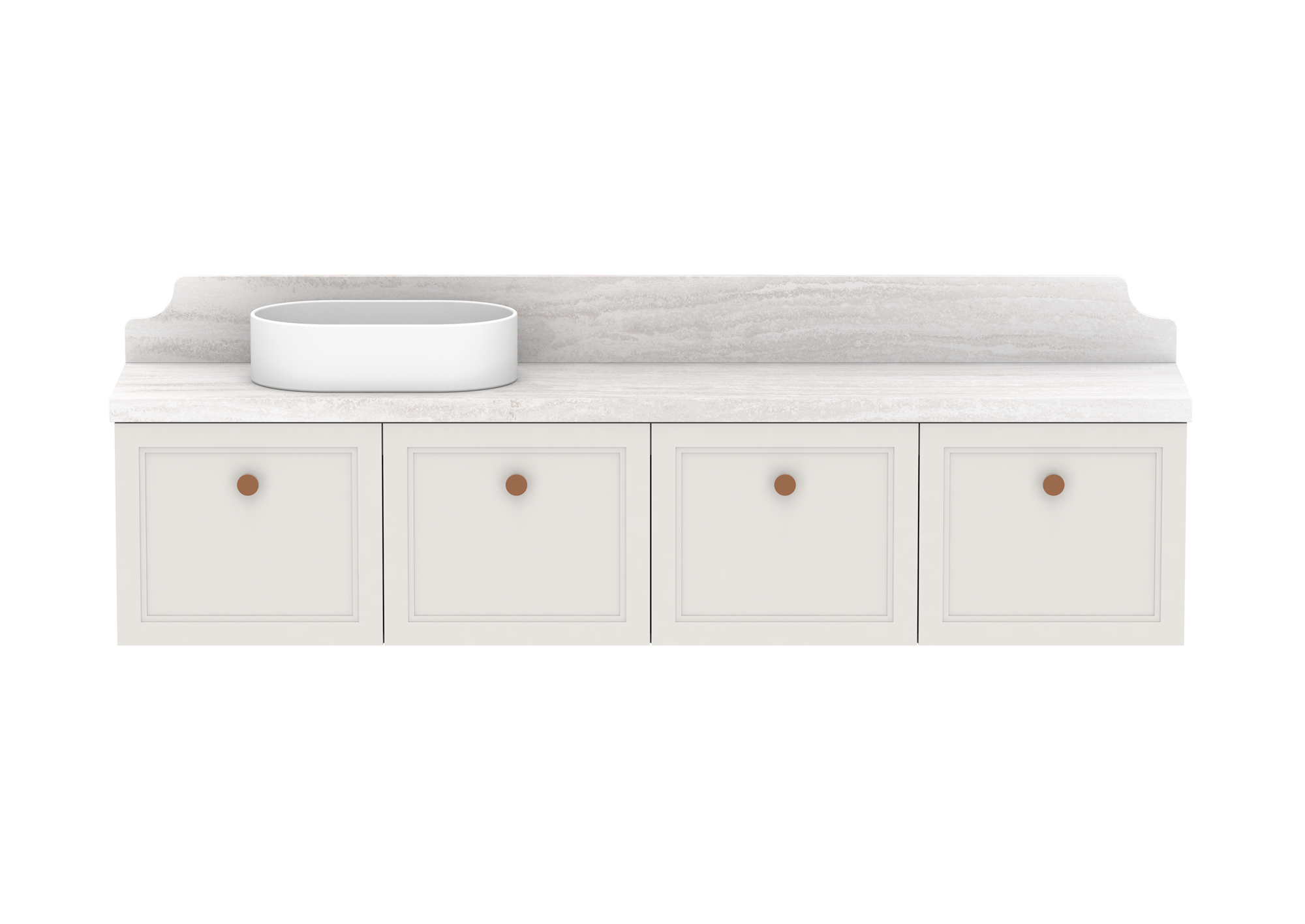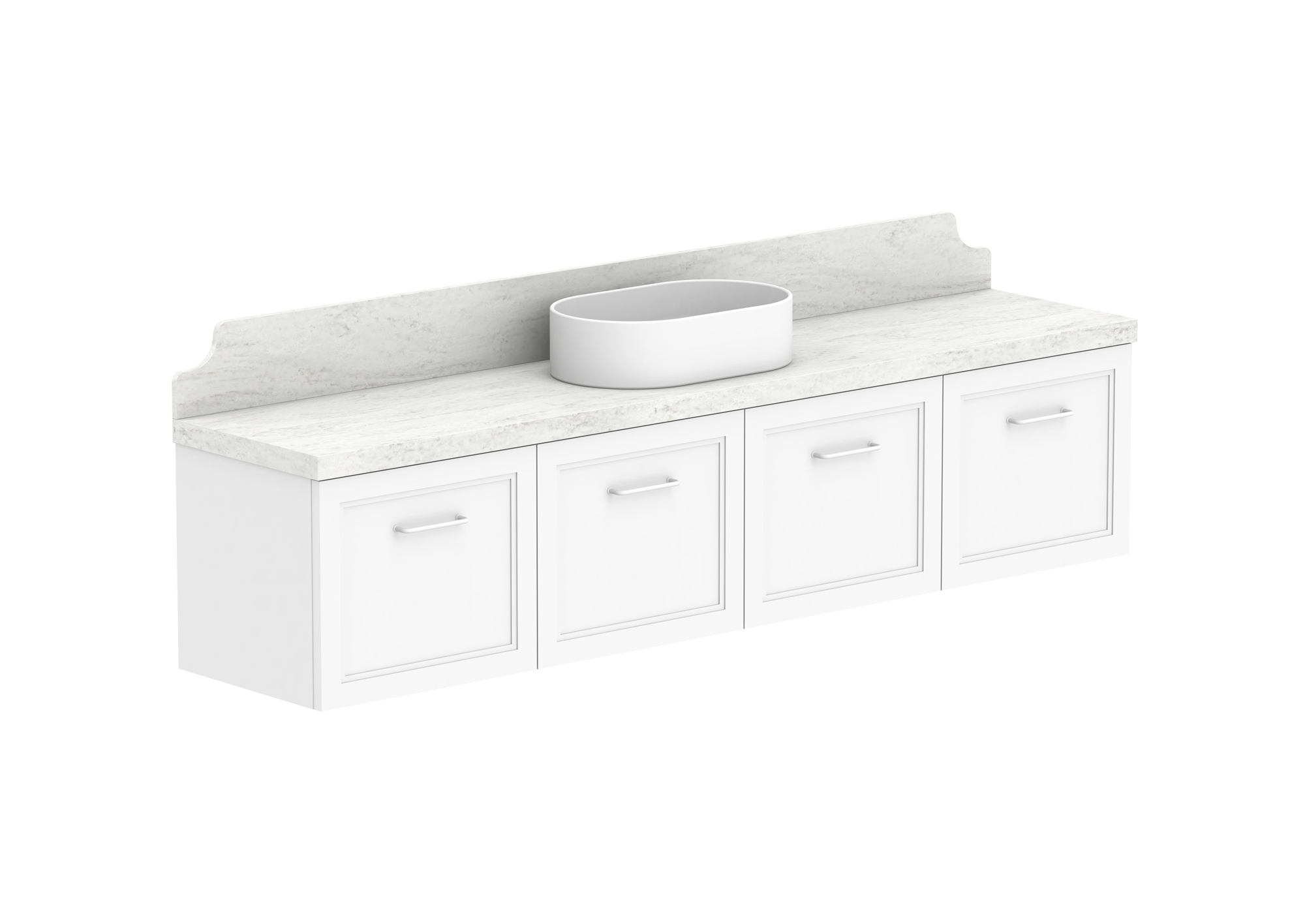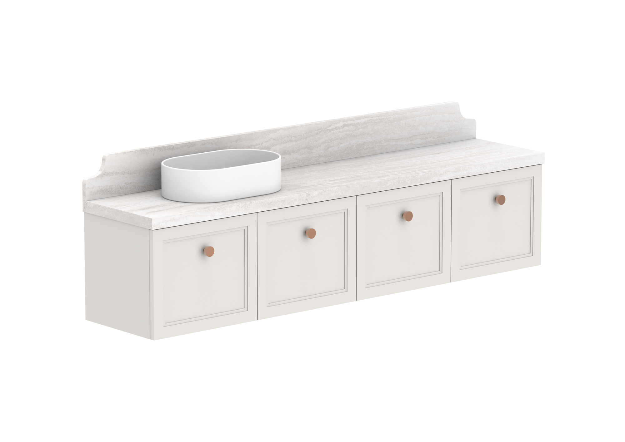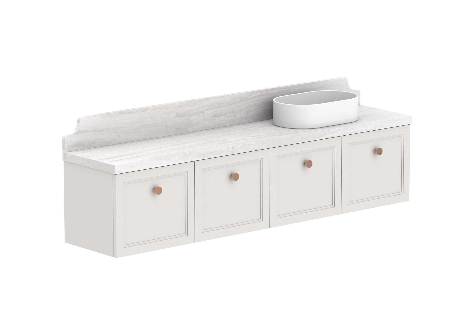 Comes standard with 40mm thick benchtop included. Choose from all benchtop options: Durasein, Cherry Pie & Caesarstone. Upgrade to 60 or 90mm Statement or 60mm Royale benchtop available, surcharge applies.