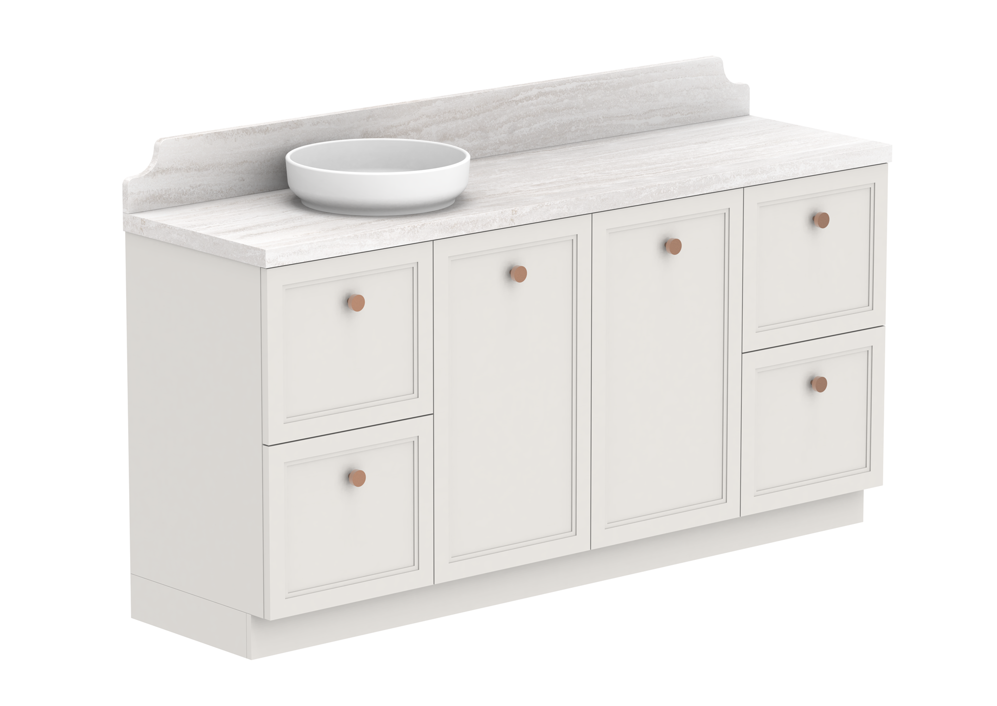 Comes standard with 40mm thick benchtop included. Choose from all benchtop options: Durasein, Cherry Pie & Caesarstone. Upgrade to 60 or 90mm Statement or 60mm Royale benchtop available, surcharge applies.