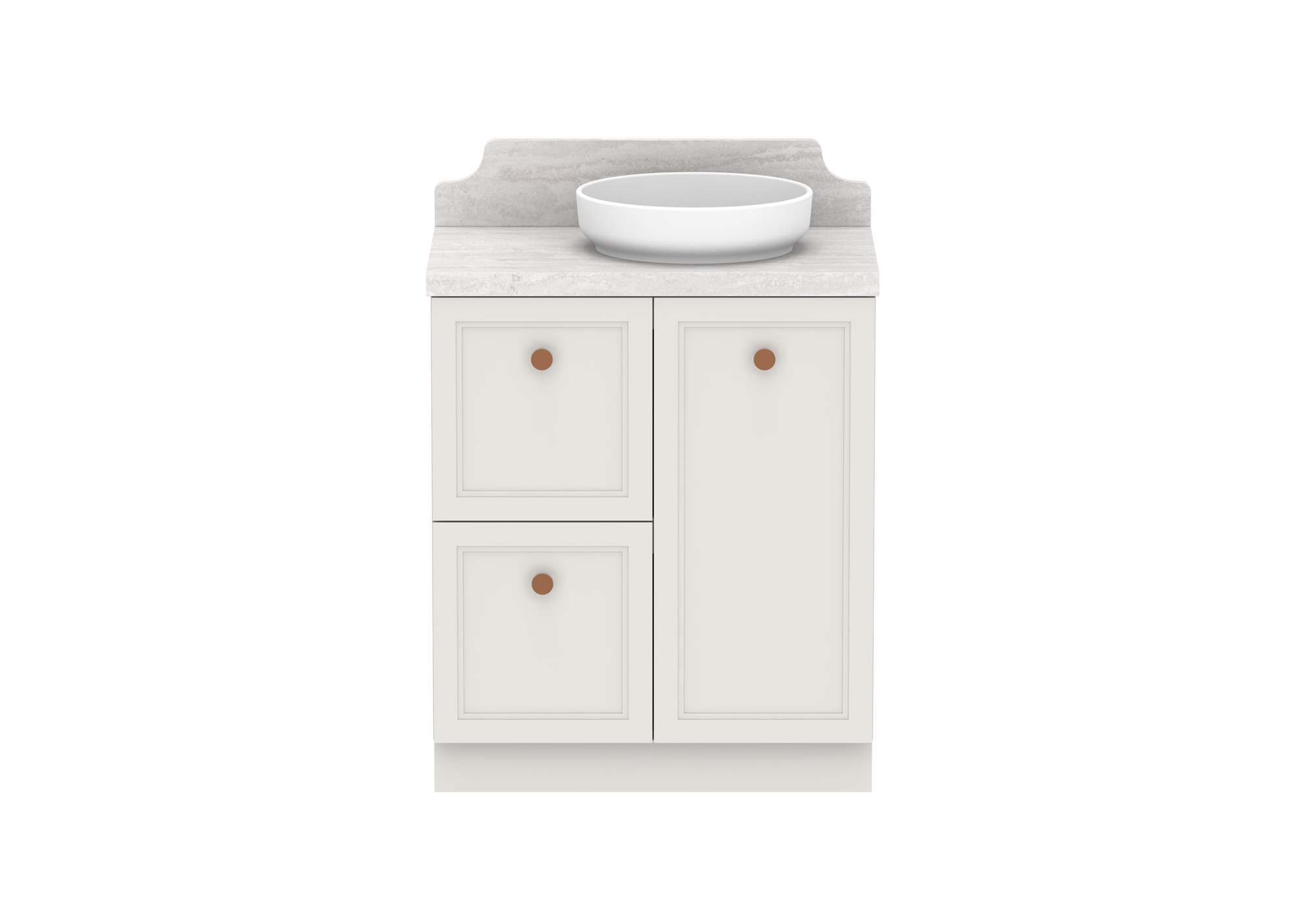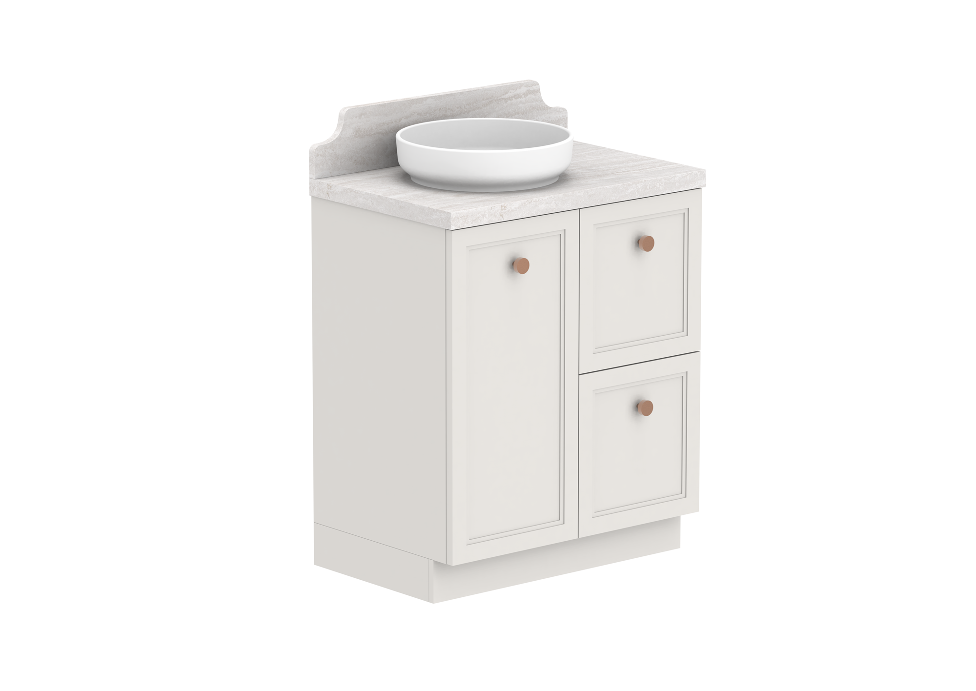 Comes standard with 40mm thick benchtop included. Choose from all benchtop options: Durasein, Cherry Pie & Caesarstone. Upgrade to 60 or 90mm Statement or 60mm Royale benchtop available, surcharge applies.