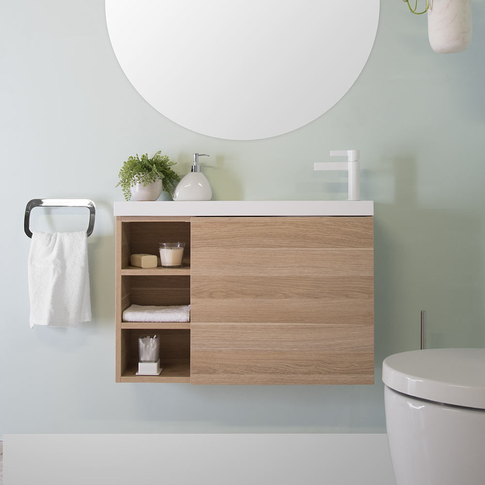 Available left or right hand bowl, shelves opposite bowl.