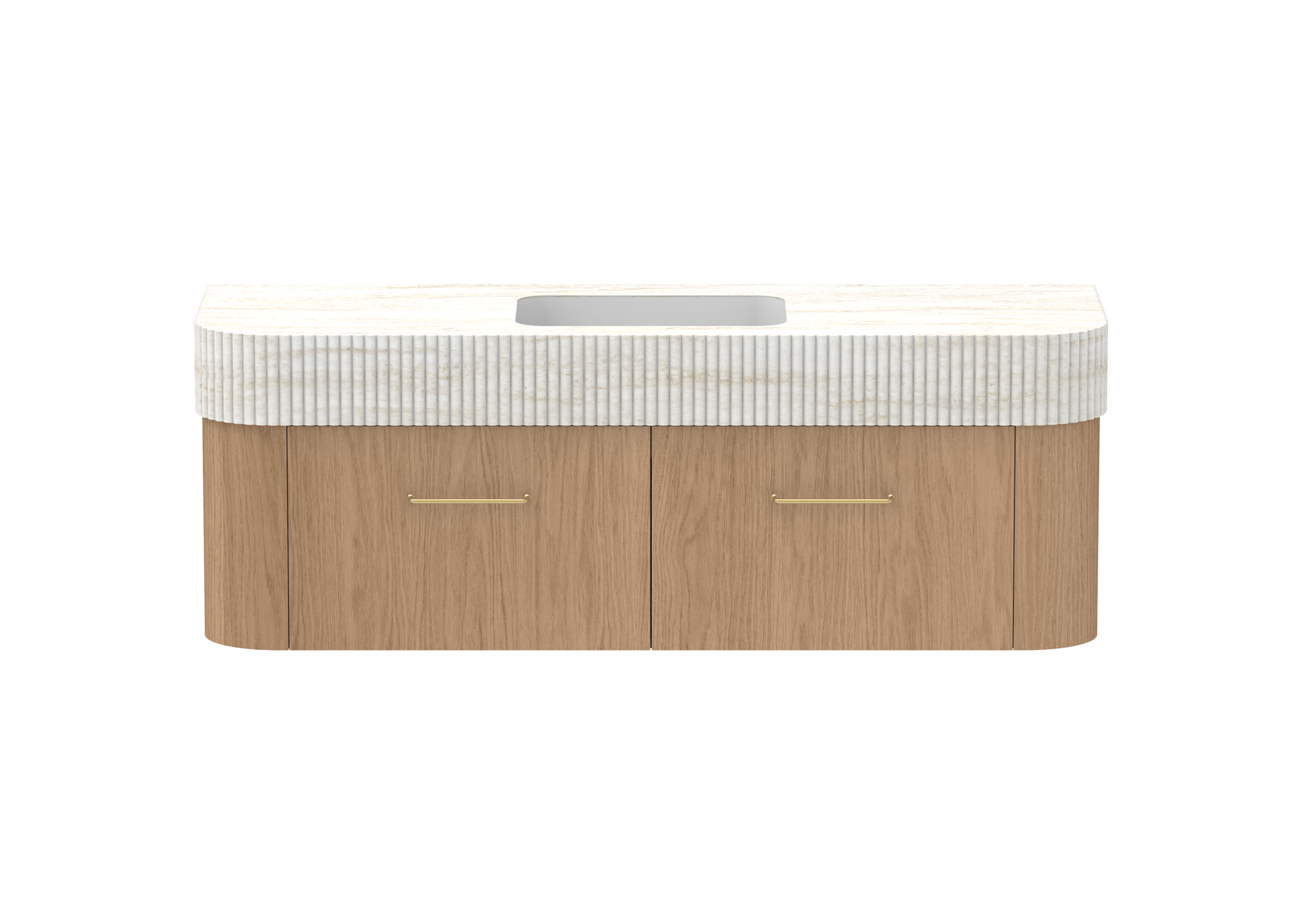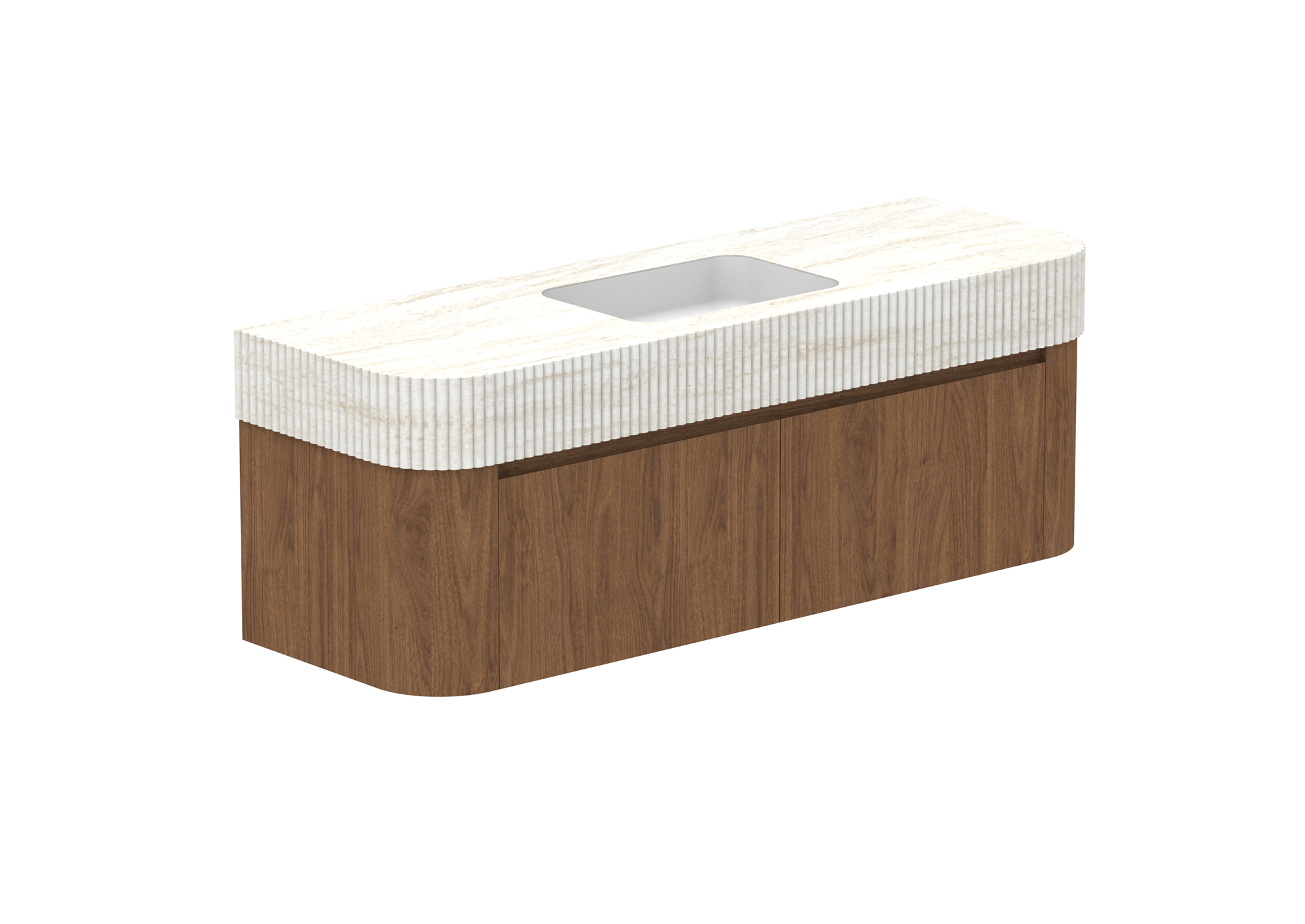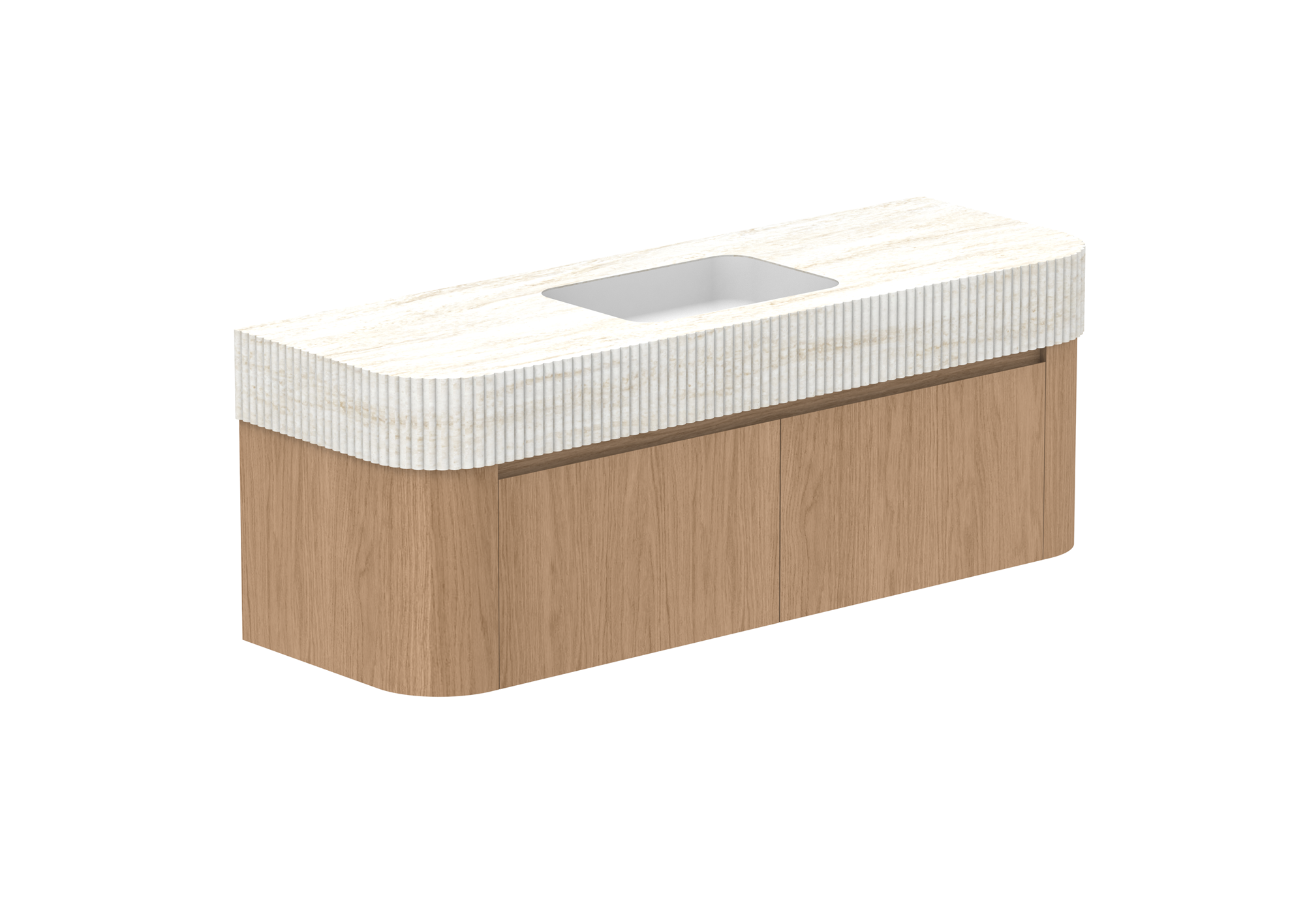 Imperial: Moulded top with fluted edge detailing, fabricated from Durasein Solid Surface. Integrated matte white basin with overflow. 0 tap hole only, can be drilled onsite. Available in Blossoming & Sakal Durasein only.