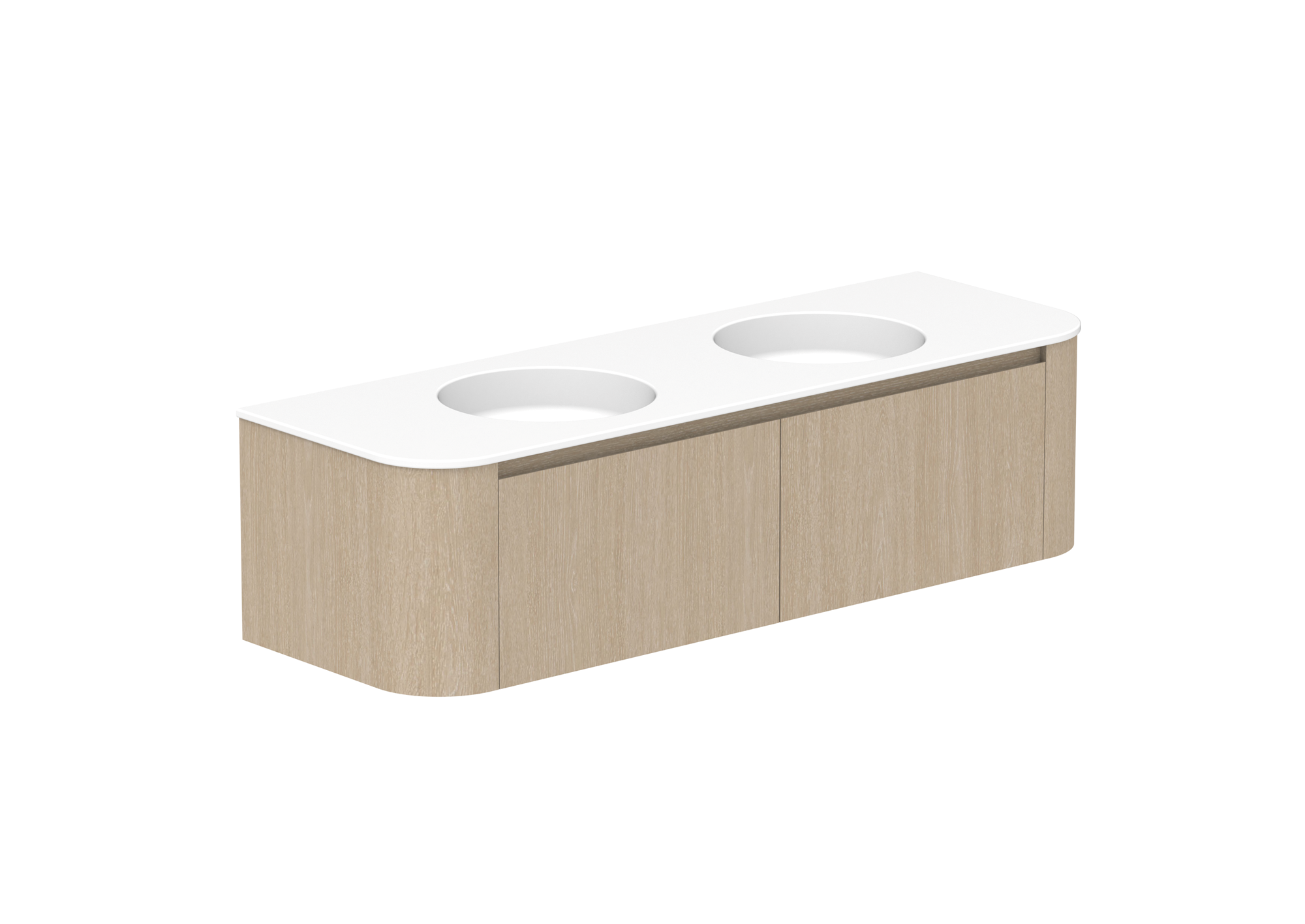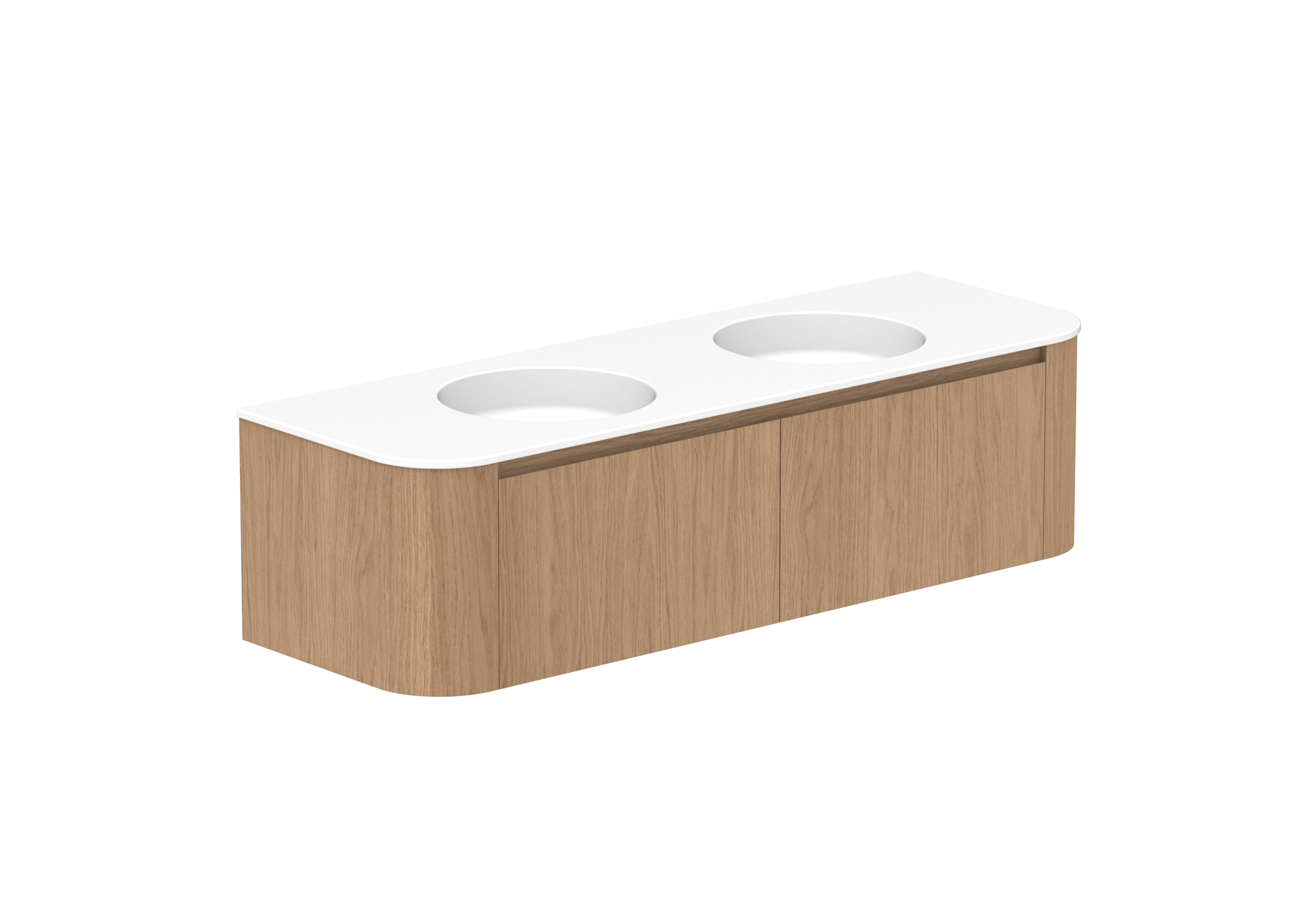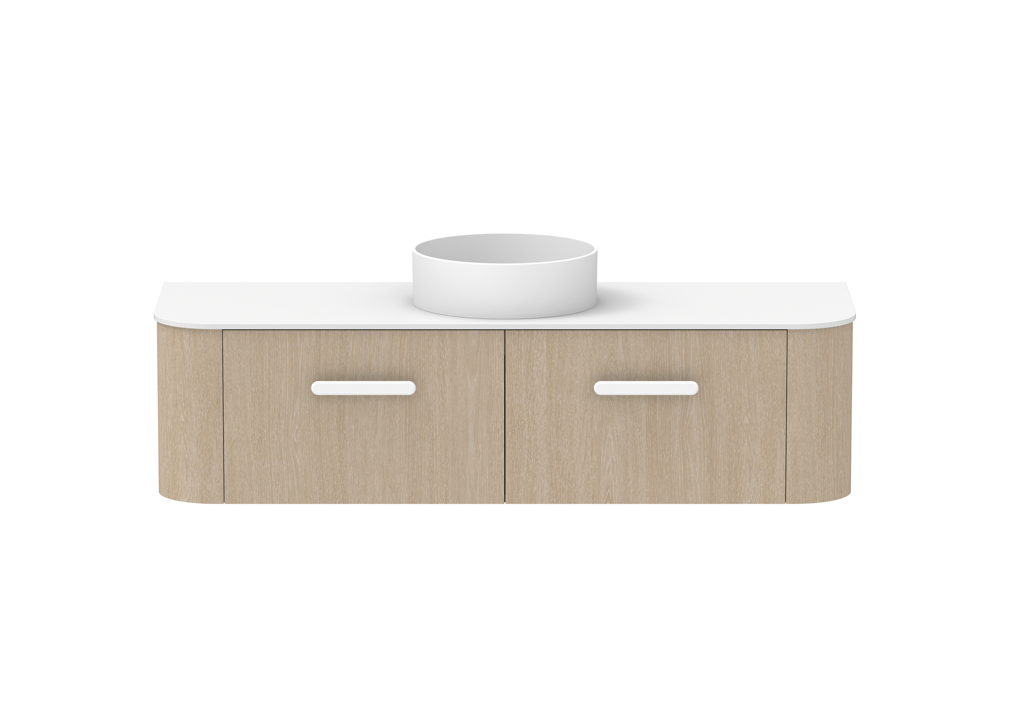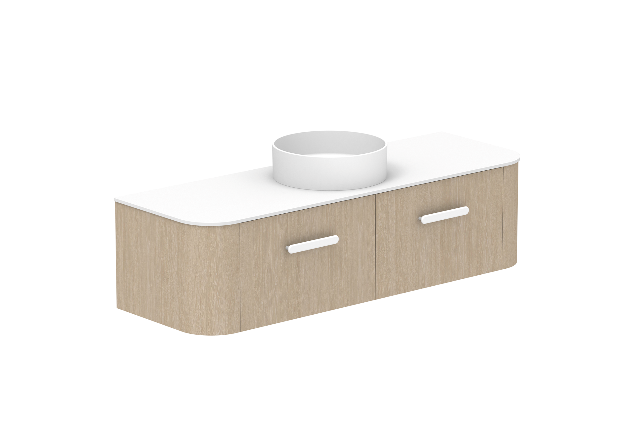 Matte Ceramic: Curved ceramic moulded top in matte finish, featuring an integrated overflow positioned in the front of the bowl. Tap hole available as 10 or 2 o’clock position or 0 tap hole (for wall taps).