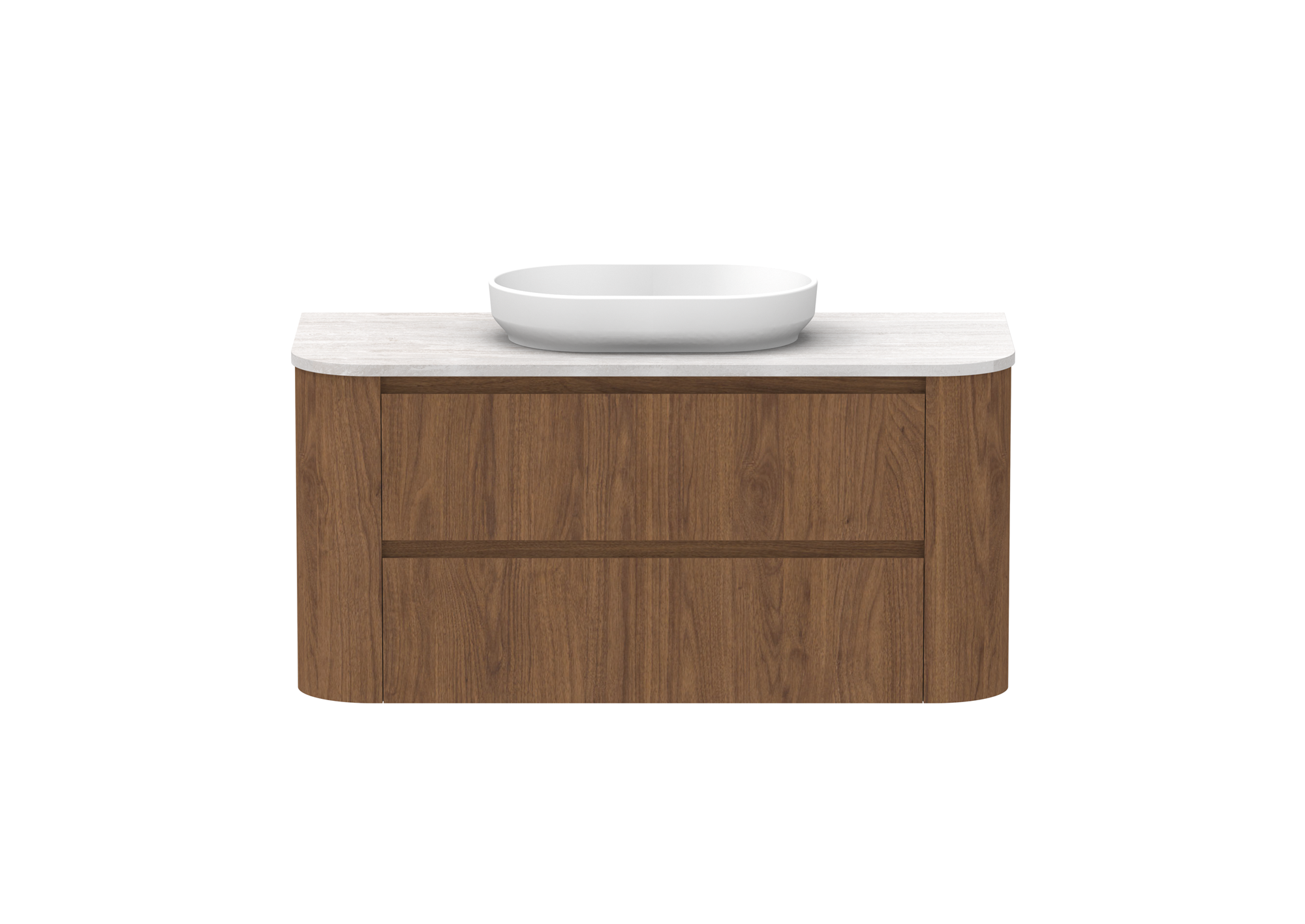 Benchtop: Choose from all benchtop options: 20mm Cherry Pie, 12mm Durasein or 20mm Caesarstone (surcharge applies). Upgrade to a Statement benchtop, 40/60/90mm (Durasein only), or a Royale benchtop, 60mm, featuring bullnose detailing (Durasein only), surcharge applies.