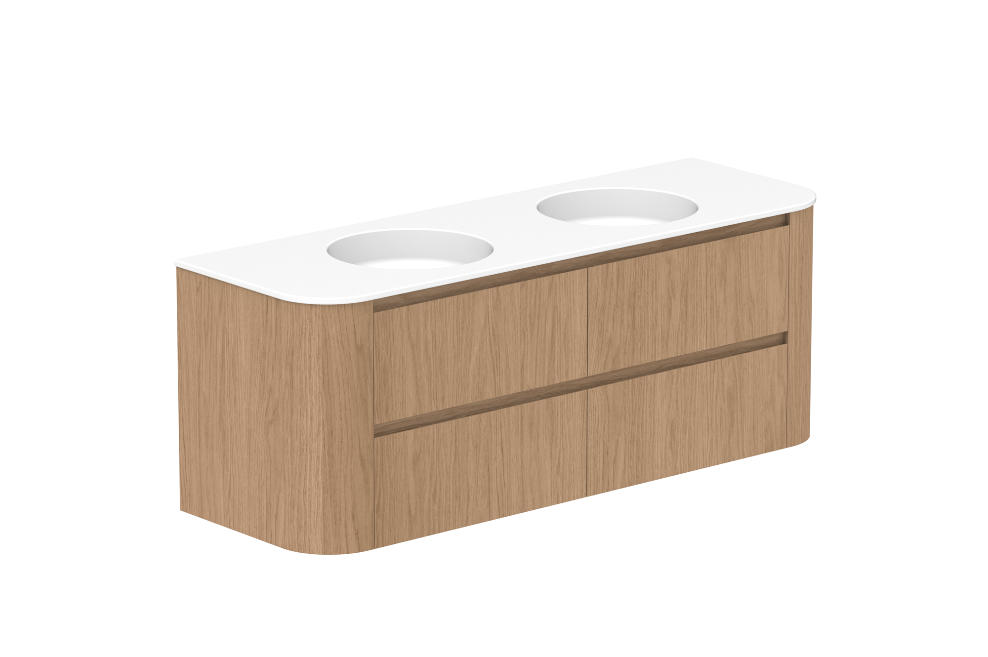 Matte Ceramic: Curved ceramic moulded top in matte finish, featuring an integrated overflow positioned in the front of the bowl. Tap hole available as 10 or 2 o’clock position or 0 tap hole (for wall taps).