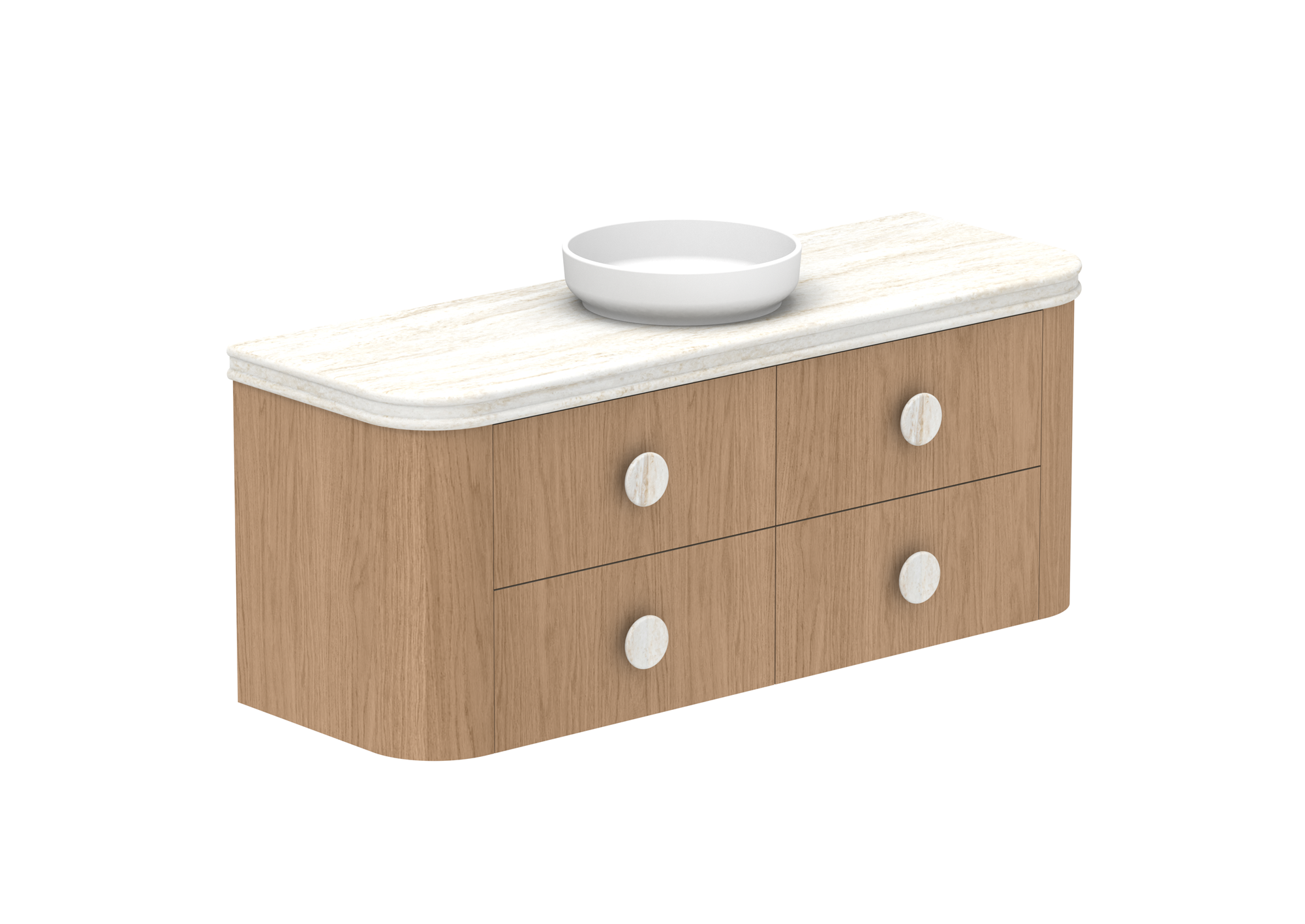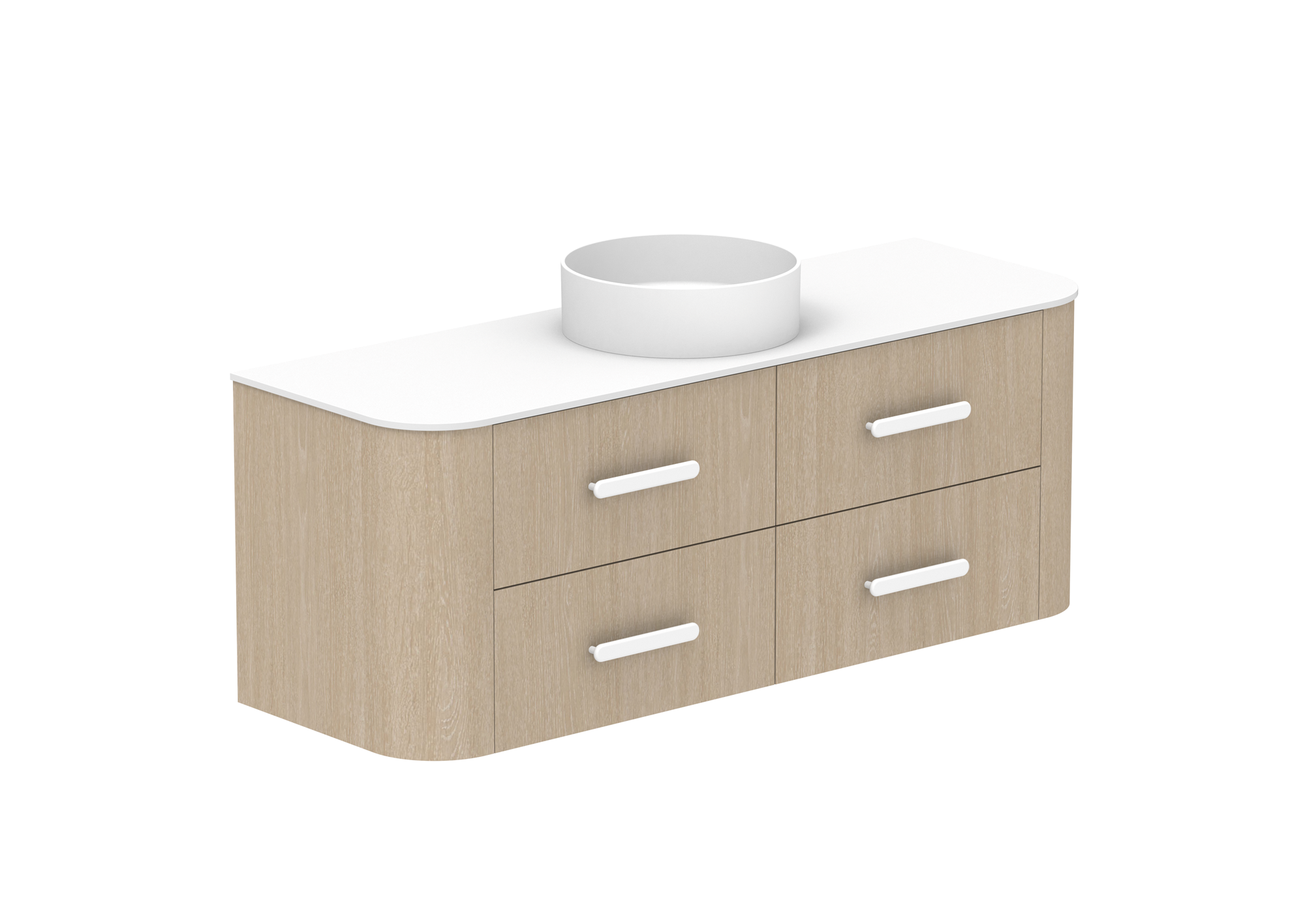 Benchtop: Choose from all benchtop options: 20mm Cherry Pie, 12mm Durasein or 20mm Caesarstone (surcharge applies). Upgrade to a Statement benchtop, 40/60/90mm (Durasein only), or a Royale benchtop, 60mm, featuring bullnose detailing (Durasein only), surcharge applies.
