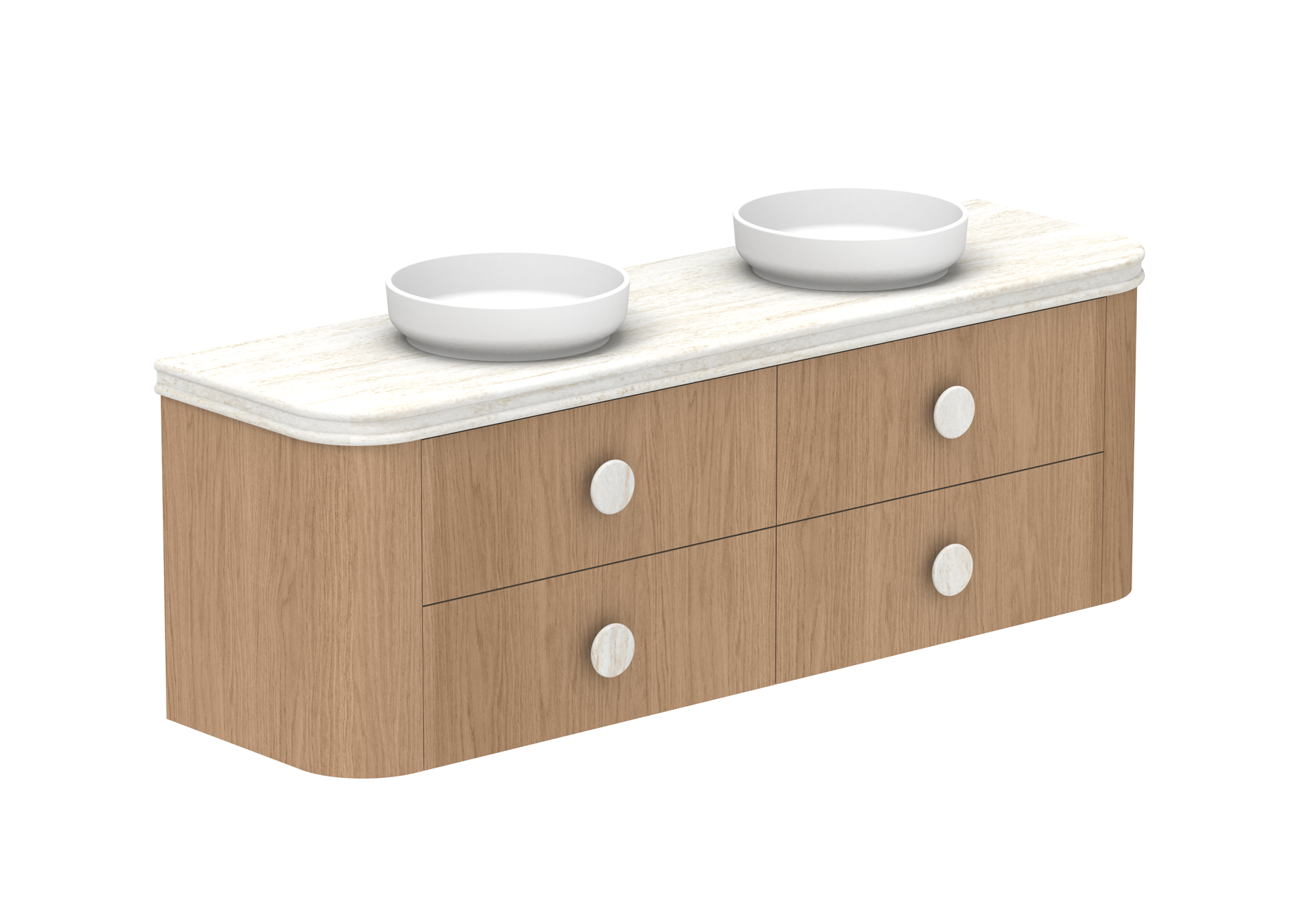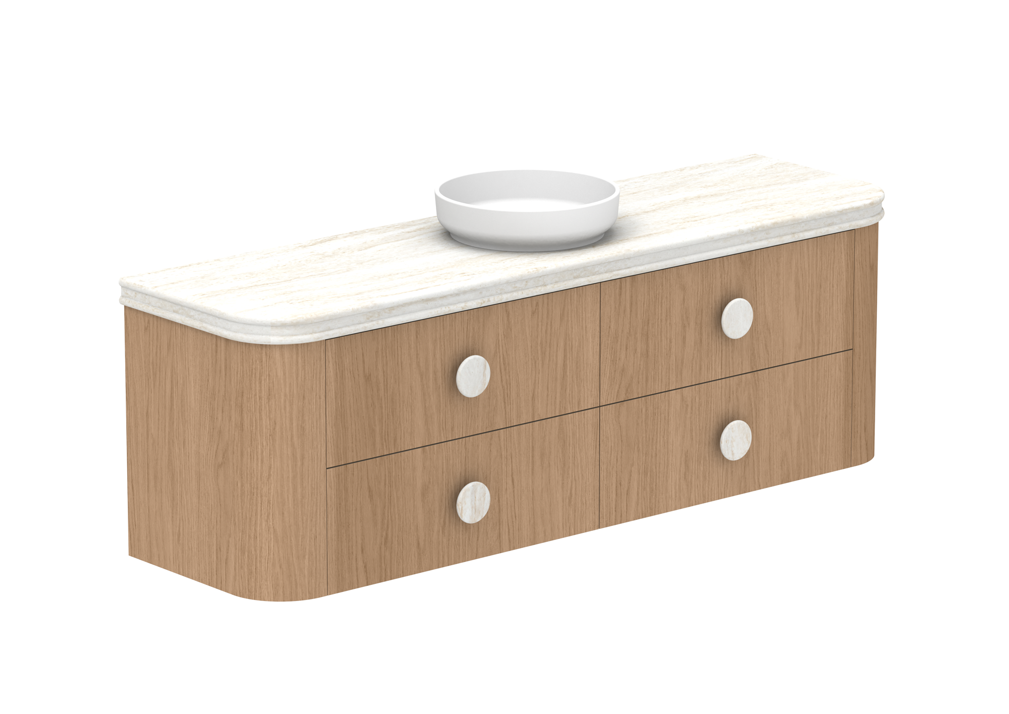 Benchtop: Choose from all benchtop options: 20mm Cherry Pie, 12mm Durasein or 20mm Caesarstone (surcharge applies). Upgrade to a Statement benchtop, 40/60/90mm (Durasein only), or a Royale benchtop, 60mm, featuring bullnose detailing (Durasein only), surcharge applies.